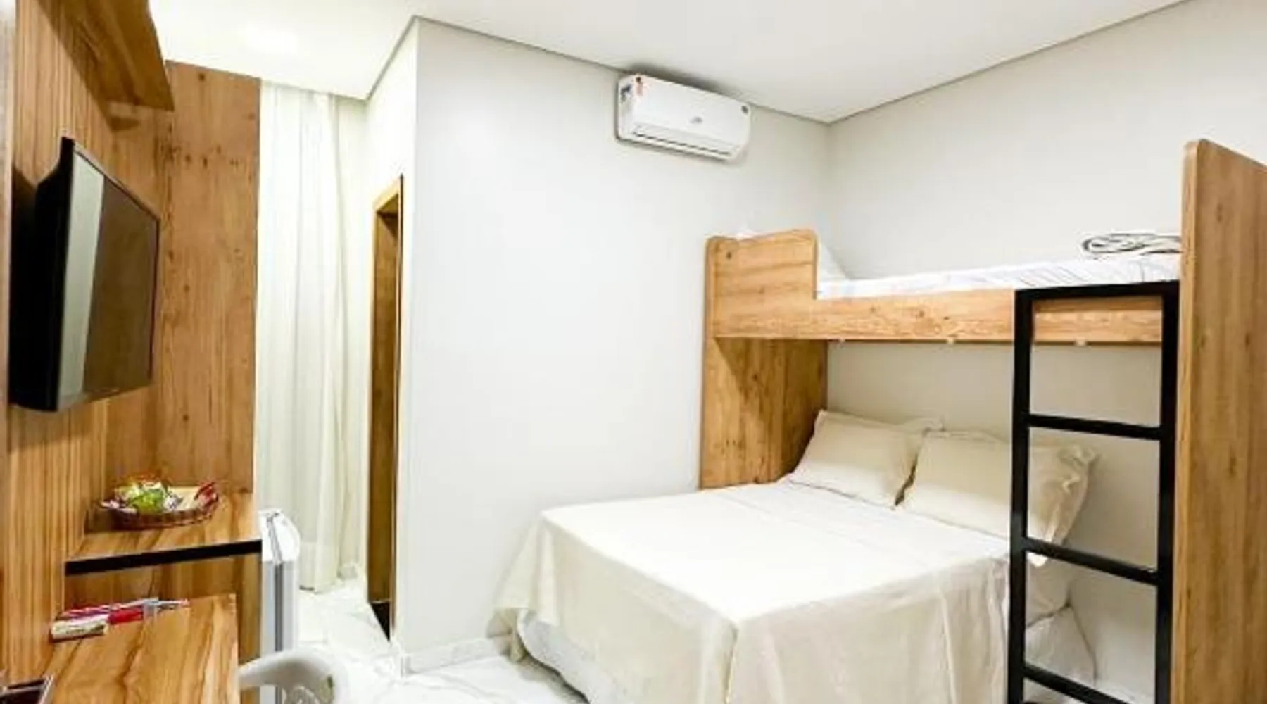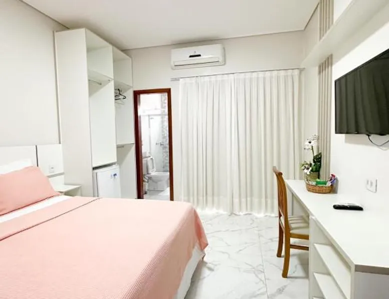 Elegant Accommodations: Hotel Barruada in Boa Vista offers a 5-star experience with free WiFi, private check-in and check-out, a lounge, and a 24-hour front desk. Guests enjoy a child-friendly buffet, family rooms, and a business area. Comfortable Amenities: Rooms feature air-conditioning, balconies, spa baths, private bathrooms, and modern amenities such as free toiletries, TVs, and work desks. Additional services include a minimarket, housekeeping, room service, and a tour desk. Delicious Breakfast: A buffet breakfast is served with local specialties, juice, pancakes, cheese, and fruits, highly praised by guests for its quality and variety. Prime Location: Located 3.1 mi from Boa Vista International Airport, the hotel is near attractions like Anauá Park and Matriz de Nossa Senhora do Carmo, each 3.7 mi away. Free on-site private parking is available. This air-conditioned double room is consisted of of a flat-screen TV with cable channels and a private bathroom. The unit has 1 bed.