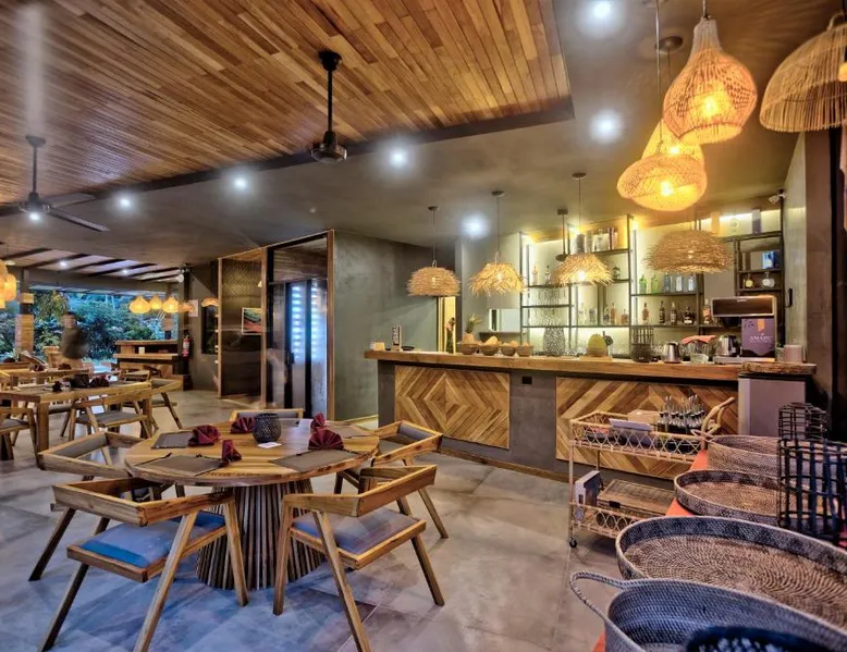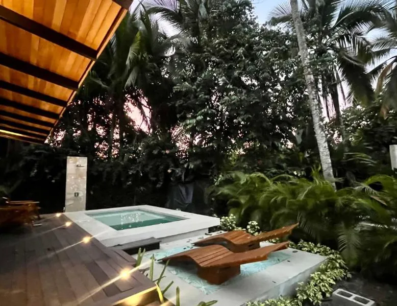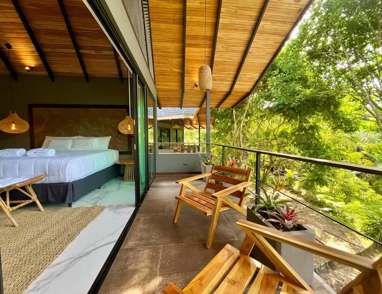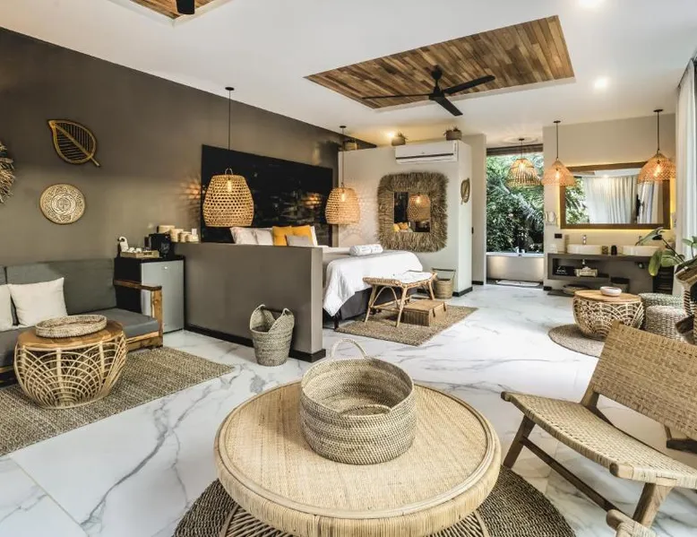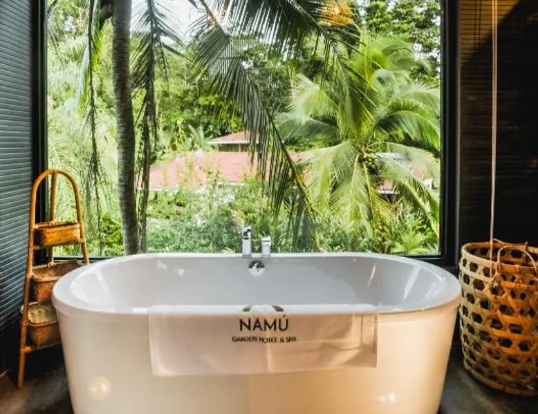Elegant Accommodations: Namu Garden Hotel & Spa in Puerto Viejo offers a 5-star experience with adults-only access. Guests enjoy a spa and wellness center, swimming pool with a view, sun terrace, and lush garden. Comfortable Amenities: The hotel features private check-in and check-out, a 24-hour front desk, concierge service, and free WiFi. Additional facilities include a steam room, solarium, and bicycle parking. Dining Experience: A modern and romantic restaurant serves Mediterranean cuisine with vegetarian, vegan, and gluten-free options. Breakfast is available in-room or at the pool bar. Prime Location: Located a 3-minute walk from Negra Beach and 2.8 mi from the Jaguar Rescue Center. Guests appreciate the attentive staff, beautiful garden, and delicious breakfast. This spacious suite consists of 1 living room, 1 separate bedroom and 1 bathroom with a bath and free toiletries. The air-conditioned suite provides a flat-screen TV with streaming services, a private entrance, a mini-bar, a tea and coffee maker as well as garden views. The unit offers 1 bed.