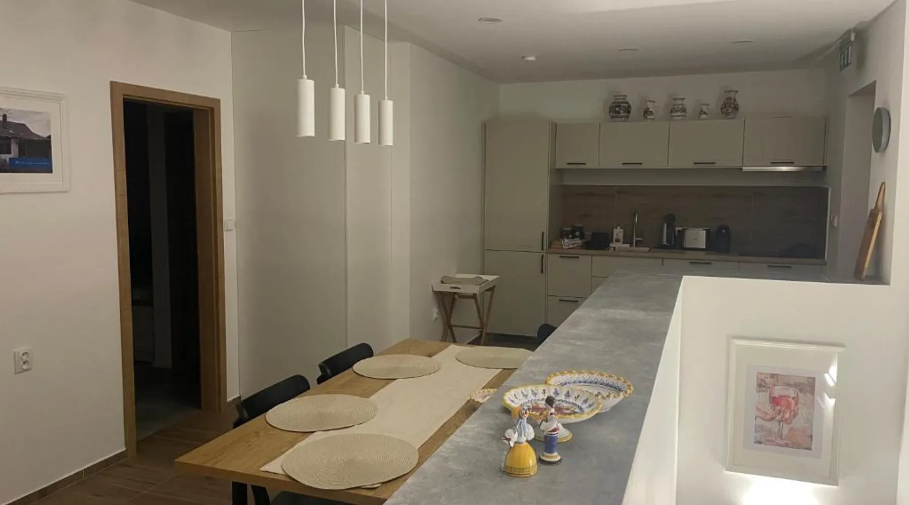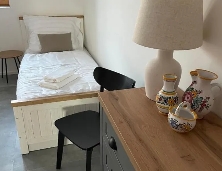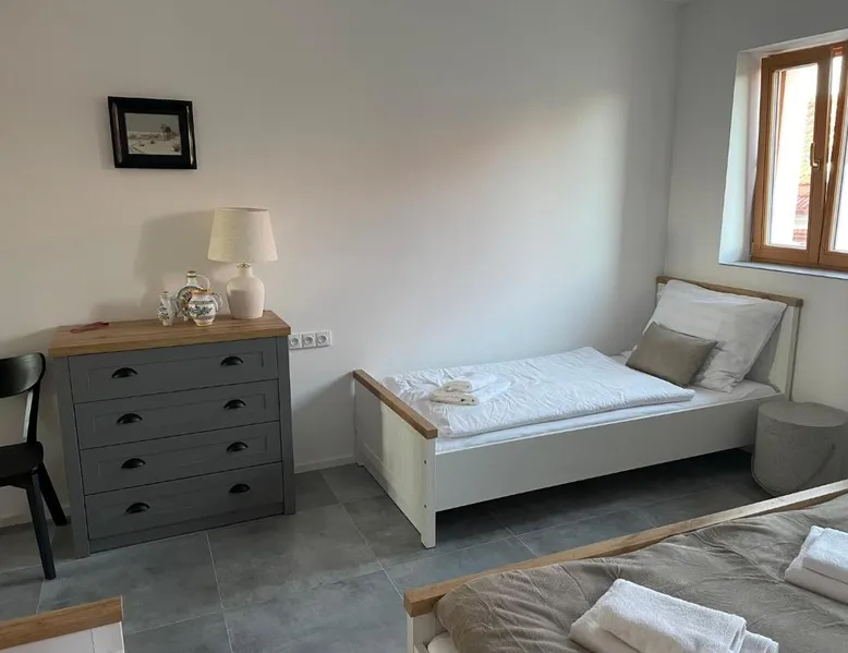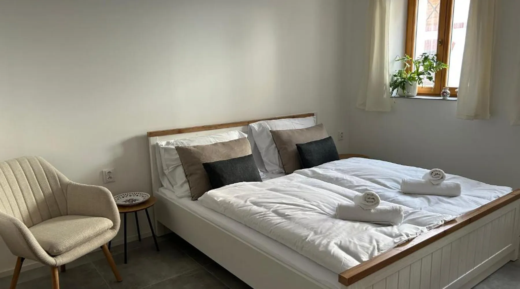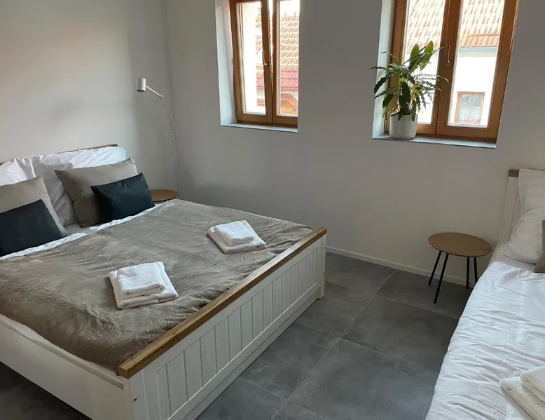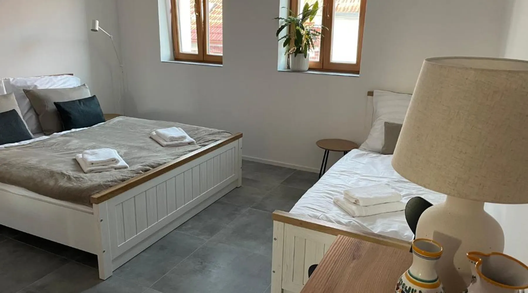 Modern Comforts: Penzion U Blechy a Švába in Mikulčice offers a recently renovated apartment with air-conditioning, a terrace, and a garden. Guests enjoy free WiFi, a lounge, and a shared kitchen equipped with a kitchenette. Outdoor Spaces: The property features a sun terrace, outdoor seating area, and picnic spots. Additional amenities include a barbecue, dining table, and outdoor furniture, providing ample space for relaxation and leisure. Convenient Facilities: Private check-in and check-out services, bicycle parking, and a tour desk enhance the stay. Free on-site parking is available, and the Brno–Turany Airport is 40 mi away. Local Attractions: Nearby points of interest include The Valtice Palace and Lednice Chateau, each 16 mi away, and Minaret and Chateau Jan, each 16 mi distant. Guests can also enjoy cycling and visit local golf resorts. Guests will find a stovetop, a refrigerator, a dishwasher and kitchenware in the well-equipped kitchenette. The quadruple room also has a barbecue. The quadruple room offers air conditioning, a tea and coffee maker, a terrace with garden views as well as a private bathroom featuring a shower. The unit offers 3 beds.