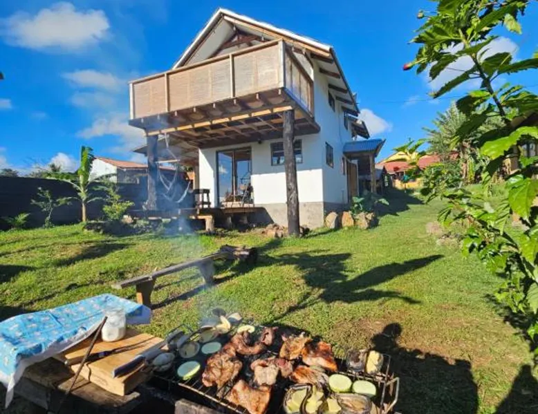 Comfortable Accommodations: Te Rano Lodge in Hanga Roa offers a holiday home with three bedrooms and one bathroom. The property features a sun terrace, garden, and free WiFi, ensuring a relaxing stay. Convenient Facilities: Guests benefit from a free airport shuttle service, a lounge, and a 24-hour front desk. Additional amenities include a tour desk, paid shuttle service, and free on-site private parking. Local Attractions: Located 3281 feet from Mataveri International Airport, the lodge is close to attractions such as Ahu Tongariki (11 mi) and Rano Kau (4.3 mi). Scuba diving opportunities are available in the surrounding area. Boasting a private entrance, this holiday home also features 3 bedrooms, a seating area and 1 bathroom with a shower and a hairdryer. Guests will find a refrigerator, a dishwasher, kitchenware and an oven in the kitchen. The holiday home also comes with a barbecue. Featuring a terrace with garden views, this holiday home also features a washing machine and a flat-screen TV with streaming services. The unit has 4 beds.