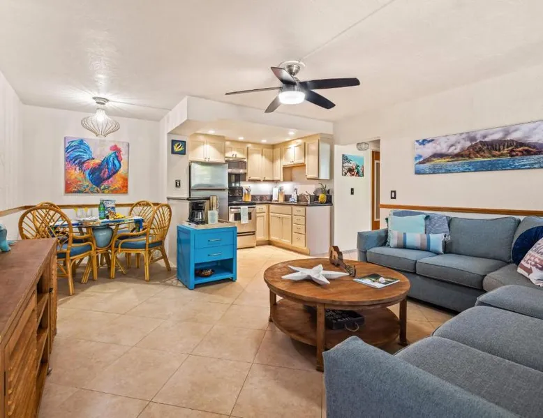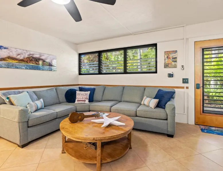 Spacious Holiday Home in Koloa: Prince Kuhio 110 offers a spacious setting in Koloa, United States. Guests enjoy sea views and a relaxing outdoor swimming pool. Free WiFi is available throughout the property. Comfortable Living Spaces: The holiday home features one bedroom and one bathroom. The living room includes a sofa bed and a dining area with a table. Air-conditioning ensures a comfortable stay. Modern Amenities: The property provides a fully equipped kitchen with a refrigerator, microwave, oven, stovetop, and toaster. Additional amenities include a washing machine, TV, and free tea and coffee maker. Nearby Attractions: Baby Beach is a 2-minute walk away. Other points of interest include Spouting Horn (1.4 mi), Wailua Falls (17 mi), and Waimea Canyon (29 mi). Lihue Airport is 14 mi from the property. Highly rated by guests. This spacious apartment is consisted of of 1 living room, 1 separate bedroom and 1 bathroom with a hairdryer. The well-equipped kitchen features a stovetop, a refrigerator, kitchenware and an oven. The air-conditioned apartment offers a TV with cable channels, a washing machine, a tea and coffee maker, a dining area as well as sea views. The unit offers 2 beds.
