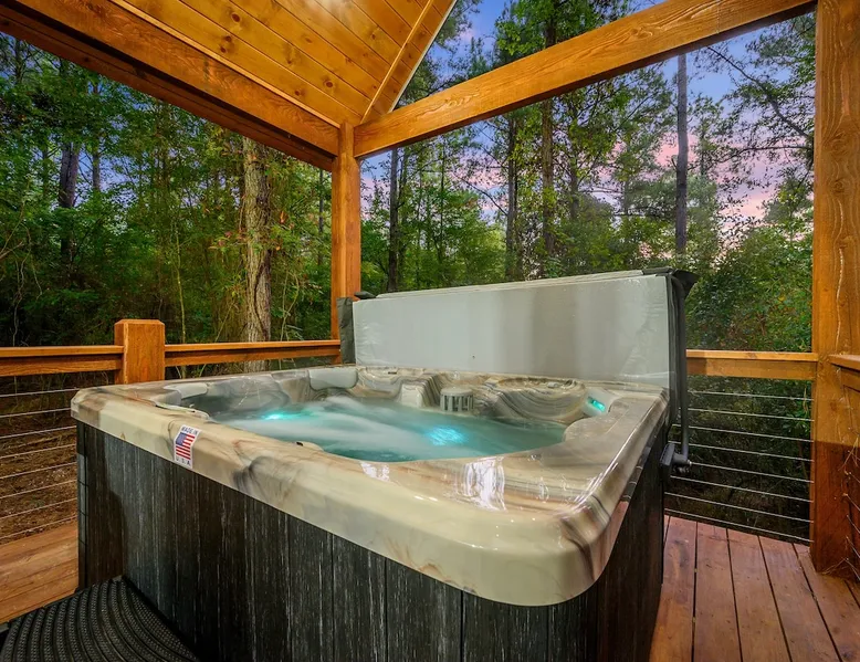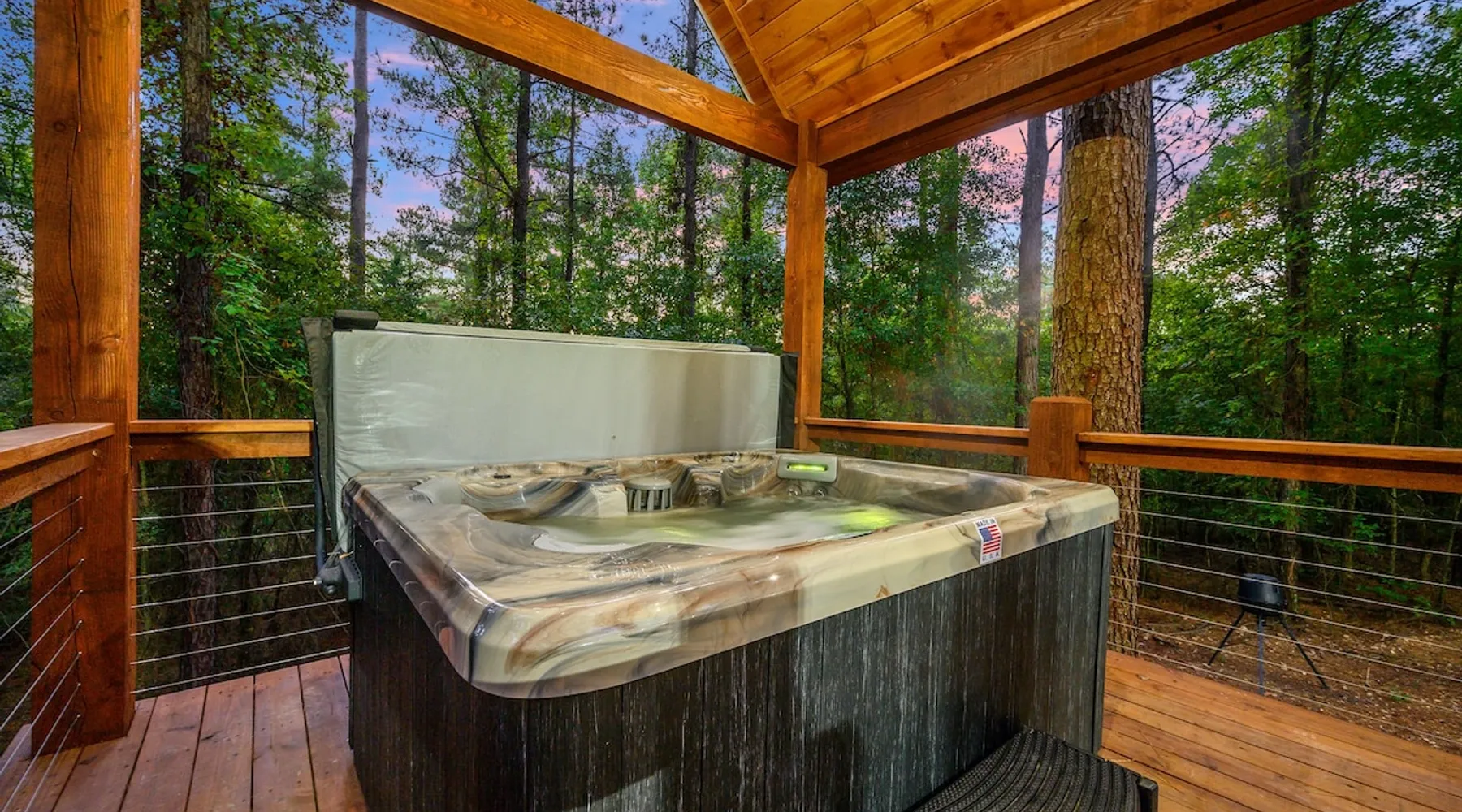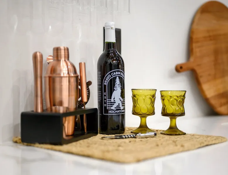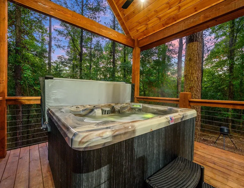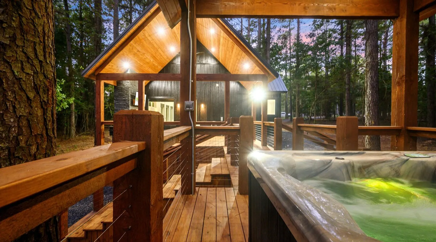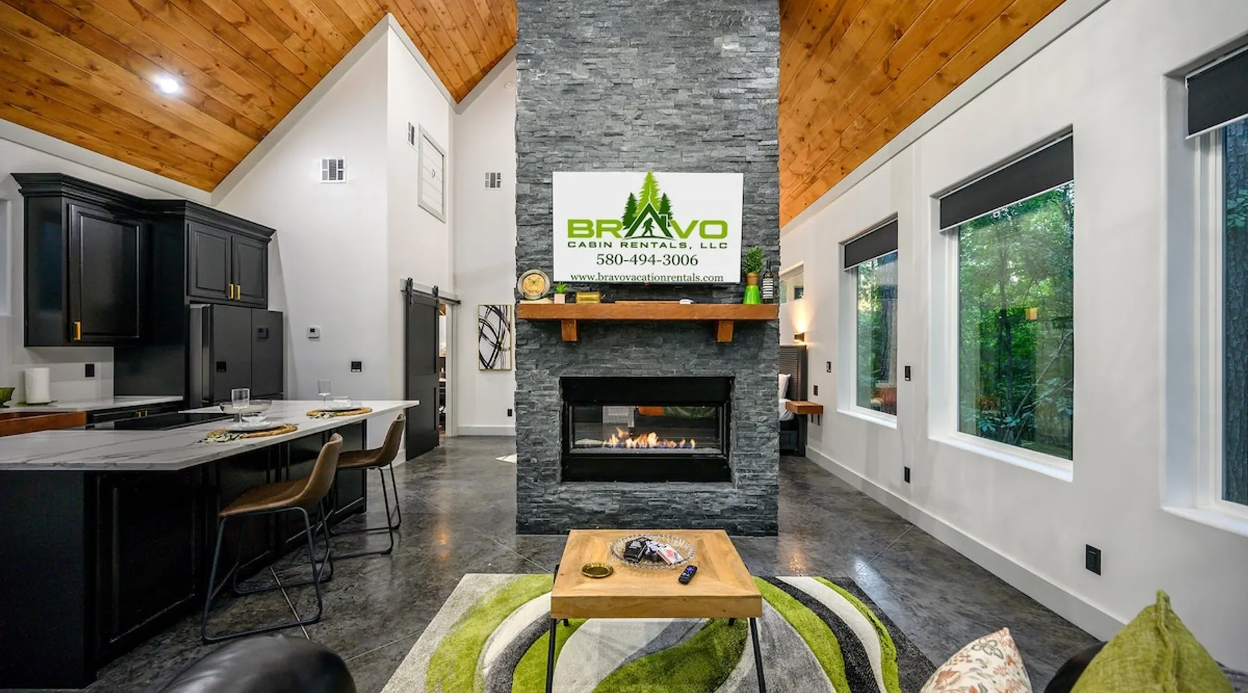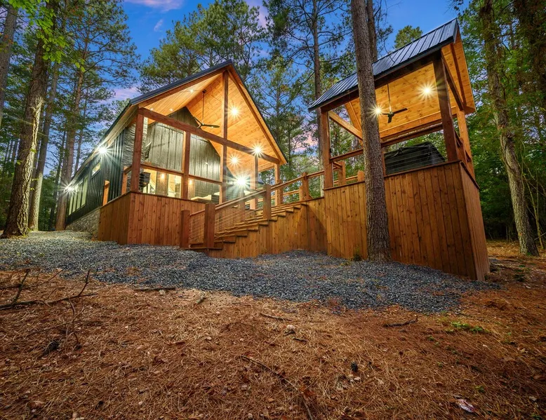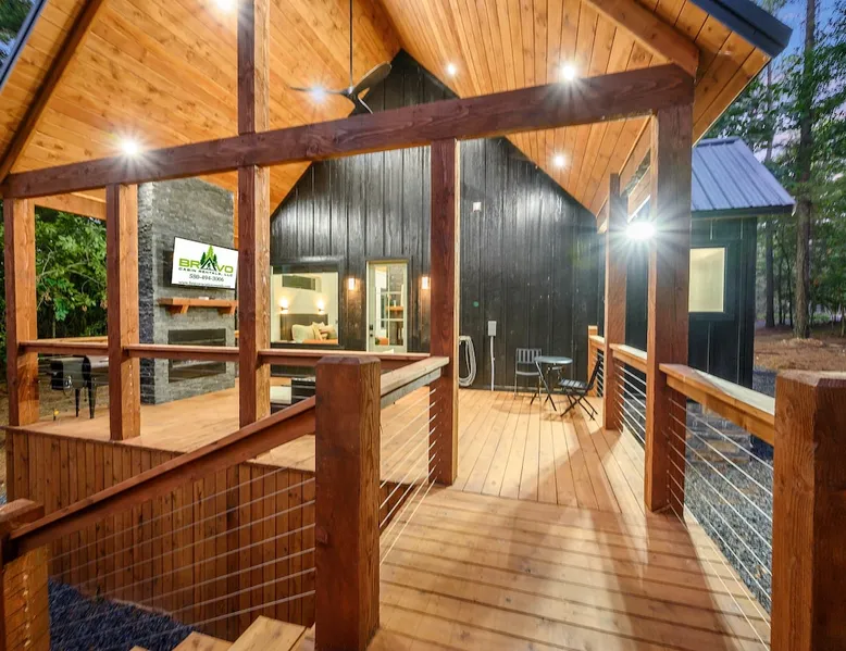 Wonderful Tonight – Hosted by Bravo Cabin Rentals This beautifully designed retreat offers an ideal escape for couples seeking tranquility and connection. Unwind in the luxurious hot tub under a starlit sky, or gather around the cozy firepit to share stories and create lasting memories. The cabin is equipped with an EV plug for electric vehicle charging, ensuring that your eco-friendly travel needs are met, although please note that a charger is not provided. The space **PET FRIENDLY** - 1 dog under 60lbs - $125 non-refundable pet fee - Fee is not included in your total and will be collected separately The epitome of comfort and style is this beautifully designed living space, featuring a luxurious leather pull-out sofa that effortlessly accommodates guests, complemented by a big-screen TV for your entertainment needs. The inviting coffee table serves as a perfect centerpiece, while the double-sided gas firepit adds a touch of warmth and ambiance, making it an ideal setting for both relaxation and social gatherings. The open-concept kitchen is a culinary enthusiast's dream, fully stocked with all the essential tools and appliances required for cooking and entertaining. The kitchen island provides a cozy dining area for two, allowing for intimate meals or casual breakfasts, all within a bright and airy space that encourages creativity and connection. Retreat to the serene bedroom, where a king-size bed promises restful nights and rejuvenating sleep. The room is thoughtfully furnished with nightstands and lamps for convenience, along with another big-screen TV, ensuring that you can unwind in comfort. The bathroom is a sanctuary of relaxation, featuring a large walk-in shower alongside a luxurious soaker tub, perfect for unwinding after a long day. All linens, as well as quality shampoo, conditioner, and body wash, are provided, ensuring that your stay is as comfortable and convenient as possible. Imagine cozy evenings gathered around the gas fireplace, providing warmth and ambiance as you enjoy the company of friends or family on the comfortable seating for three. For those who love to watch the big game or a movie under the stars, the large screen TV is perfectly positioned for optimal viewing. A charming small table for two invites intimate dining experiences, while the Pellet Grill (pellets not included) allows you to unleash your inner chef and savor delicious grilled meals. After a delightful dinner, unwind in the inviting hot tub, where you can soak away the stresses of the day. As the night deepens, gather around the firepit with seating for two, sharing stories and laughter under the twinkling night sky. This outdoor living ensemble is not just a space; it's an experience waiting to be enjoyed! General Information – A full-size washer and dryer are available in the laundry closet. Gas fireplaces are seasonally available (October – May 15th). Please also note that this property uses exterior surveillance cameras facing away from and monitoring activity approaching the cabin’s entrances. The only cameras being monitored during your stay are the front-facing cameras to ensure guests do not go over max occupancy at check-in. Wi-Fi can be spotty if you are in a rural area. An EV plug is provided, but a charger will be needed. For any cancellation processed in which a refund is due to the guest, there will be a $50 processing fee. Maximum occupancy for this cabin is 4 guests, with NO EXCEPTIONS. Guest access Guest has access to entire cabin Other things to note It is located near all the best restaurants, activities, and park amenities. It is just a short drive to Broken Bow Lake, Beavers Bend State Park, popular hiking trails, restaurants, breweries, wineries, and downtown Hochatown, and access to all the outdoors activities you want – boating, hiking, fly-fishing, kayaking, zip-lining, ATV trails, horseback riding, Cedar Creek Golf Course, Choctaw Landing Casino, mini-golf, helicopter rides, mining for gold, train rides, go-carts, and a great petting zoo. Don’t forget these items when you come to visit: • Rain gear and light jackets (Our average rainfall is 55″-60″ each year). • We have beautiful scenic trails; good hiking boots are a must. • Water shoes for our vast shorelines and streams. • Insect repellent, sunblock, and other first-aid supplies. • Coffee and filters – enjoy this while sitting on the deck in the early morning. • Condiments --A starter supply of coffee/filters, salt/pepper, paper towels, toilet paper, bath soap, dish soap, dishwasher tablets, trash bags, and laundry soap is provided. Still, guests may need to bring additional supplies. If we are missing something or you have a question we haven't answered, please feel free to reach out to us directly at Bravo Cabin Rentals and we will personally respond as soon as possible. We look forward to making your next vacation in Broken Bow/Hochatown one you won’t forget!