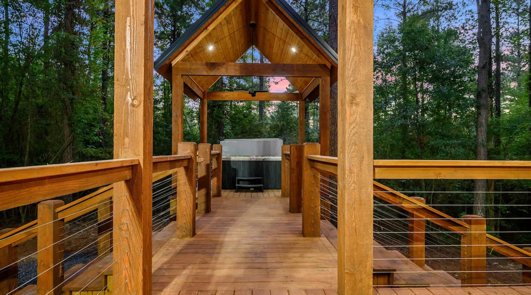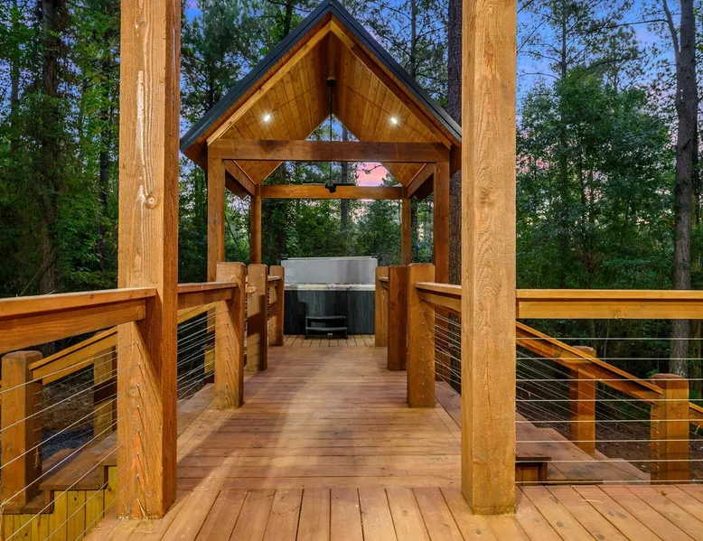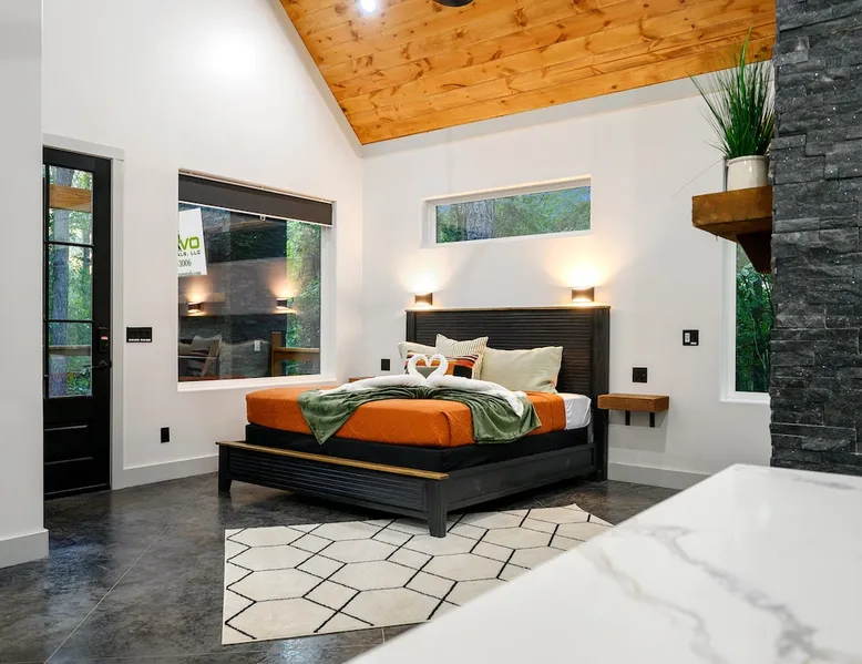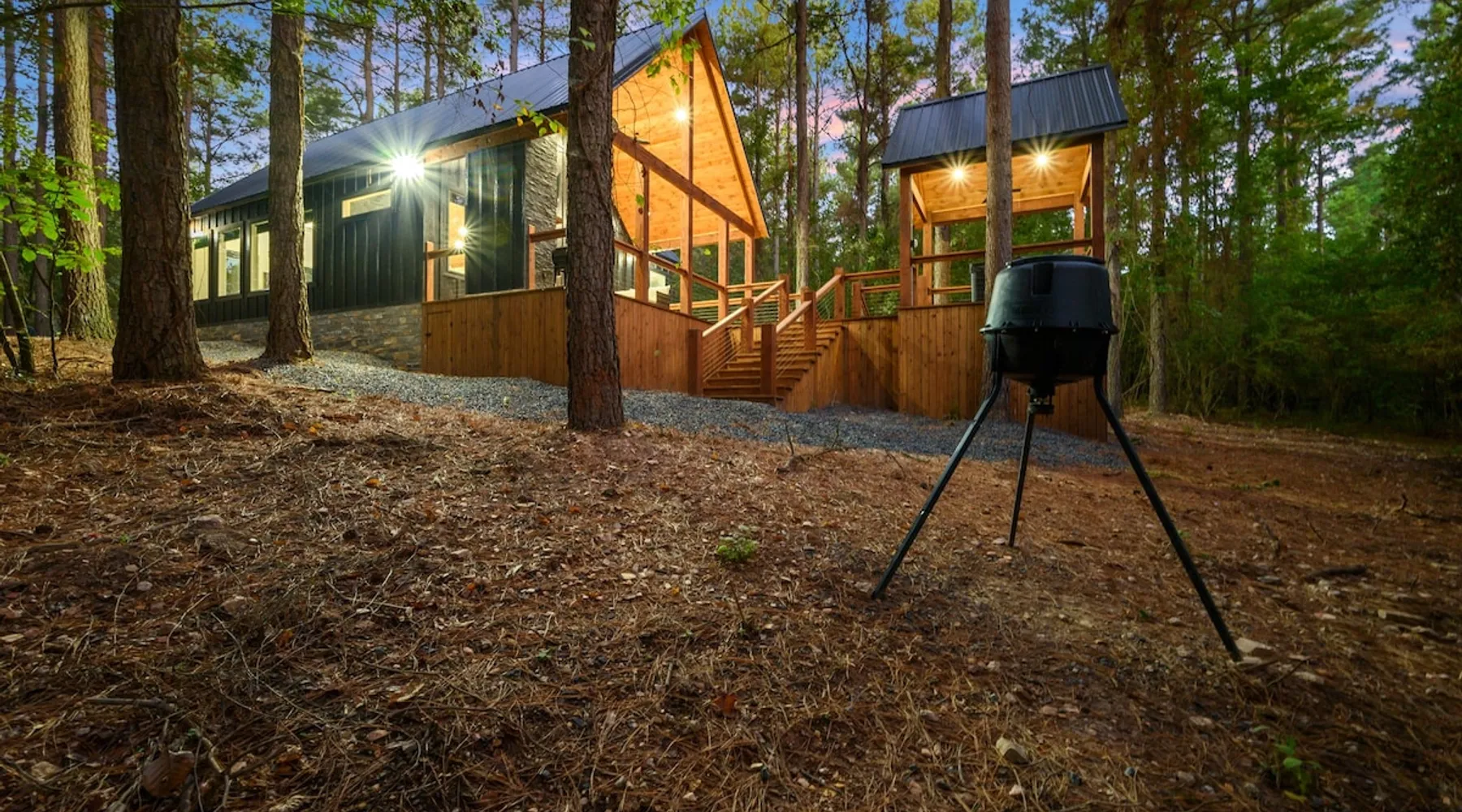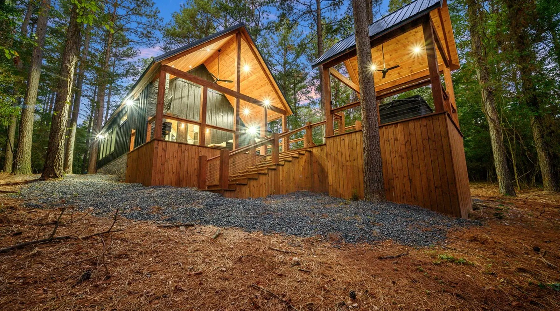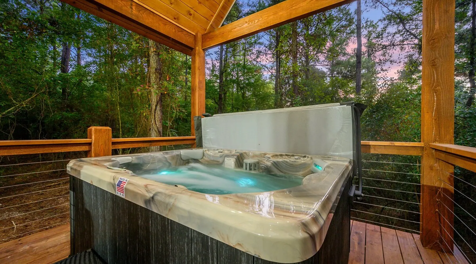 Wonderful Tonight – Hosted by Bravo Cabin Rentals This beautifully designed retreat offers an ideal escape for couples seeking tranquility and connection. Unwind in the luxurious hot tub under a starlit sky, or gather around the cozy firepit to share stories and create lasting memories. The cabin is equipped with an EV plug for electric vehicle charging, ensuring that your eco-friendly travel needs are met, although please note that a charger is not provided. The space **PET FRIENDLY** - 1 dog under 60lbs - $125 non-refundable pet fee - Fee is not included in your total and will be collected separately The epitome of comfort and style is this beautifully designed living space, featuring a luxurious leather pull-out sofa that effortlessly accommodates guests, complemented by a big-screen TV for your entertainment needs. The inviting coffee table serves as a perfect centerpiece, while the double-sided gas firepit adds a touch of warmth and ambiance, making it an ideal setting for both relaxation and social gatherings. The open-concept kitchen is a culinary enthusiast's dream, fully stocked with all the essential tools and appliances required for cooking and entertaining. The kitchen island provides a cozy dining area for two, allowing for intimate meals or casual breakfasts, all within a bright and airy space that encourages creativity and connection. Retreat to the serene bedroom, where a king-size bed promises restful nights and rejuvenating sleep. The room is thoughtfully furnished with nightstands and lamps for convenience, along with another big-screen TV, ensuring that you can unwind in comfort. The bathroom is a sanctuary of relaxation, featuring a large walk-in shower alongside a luxurious soaker tub, perfect for unwinding after a long day. All linens, as well as quality shampoo, conditioner, and body wash, are provided, ensuring that your stay is as comfortable and convenient as possible. Imagine cozy evenings gathered around the gas fireplace, providing warmth and ambiance as you enjoy the company of friends or family on the comfortable seating for three. For those who love to watch the big game or a movie under the stars, the large screen TV is perfectly positioned for optimal viewing. A charming small table for two invites intimate dining experiences, while the Pellet Grill (pellets not included) allows you to unleash your inner chef and savor delicious grilled meals. After a delightful dinner, unwind in the inviting hot tub, where you can soak away the stresses of the day. As the night deepens, gather around the firepit with seating for two, sharing stories and laughter under the twinkling night sky. This outdoor living ensemble is not just a space; it's an experience waiting to be enjoyed! General Information – A full-size washer and dryer are available in the laundry closet. Gas fireplaces are seasonally available (October – May 15th). Please also note that this property uses exterior surveillance cameras facing away from and monitoring activity approaching the cabin’s entrances. The only cameras being monitored during your stay are the front-facing cameras to ensure guests do not go over max occupancy at check-in. Wi-Fi can be spotty if you are in a rural area. An EV plug is provided, but a charger will be needed. For any cancellation processed in which a refund is due to the guest, there will be a $50 processing fee. Maximum occupancy for this cabin is 4 guests, with NO EXCEPTIONS. Guest access Guest has access to entire cabin Other things to note It is located near all the best restaurants, activities, and park amenities. It is just a short drive to Broken Bow Lake, Beavers Bend State Park, popular hiking trails, restaurants, breweries, wineries, and downtown Hochatown, and access to all the outdoors activities you want – boating, hiking, fly-fishing, kayaking, zip-lining, ATV trails, horseback riding, Cedar Creek Golf Course, Choctaw Landing Casino, mini-golf, helicopter rides, mining for gold, train rides, go-carts, and a great petting zoo. Don’t forget these items when you come to visit: • Rain gear and light jackets (Our average rainfall is 55″-60″ each year). • We have beautiful scenic trails; good hiking boots are a must. • Water shoes for our vast shorelines and streams. • Insect repellent, sunblock, and other first-aid supplies. • Coffee and filters – enjoy this while sitting on the deck in the early morning. • Condiments --A starter supply of coffee/filters, salt/pepper, paper towels, toilet paper, bath soap, dish soap, dishwasher tablets, trash bags, and laundry soap is provided. Still, guests may need to bring additional supplies. If we are missing something or you have a question we haven't answered, please feel free to reach out to us directly at Bravo Cabin Rentals and we will personally respond as soon as possible. We look forward to making your next vacation in Broken Bow/Hochatown one you won’t forget!