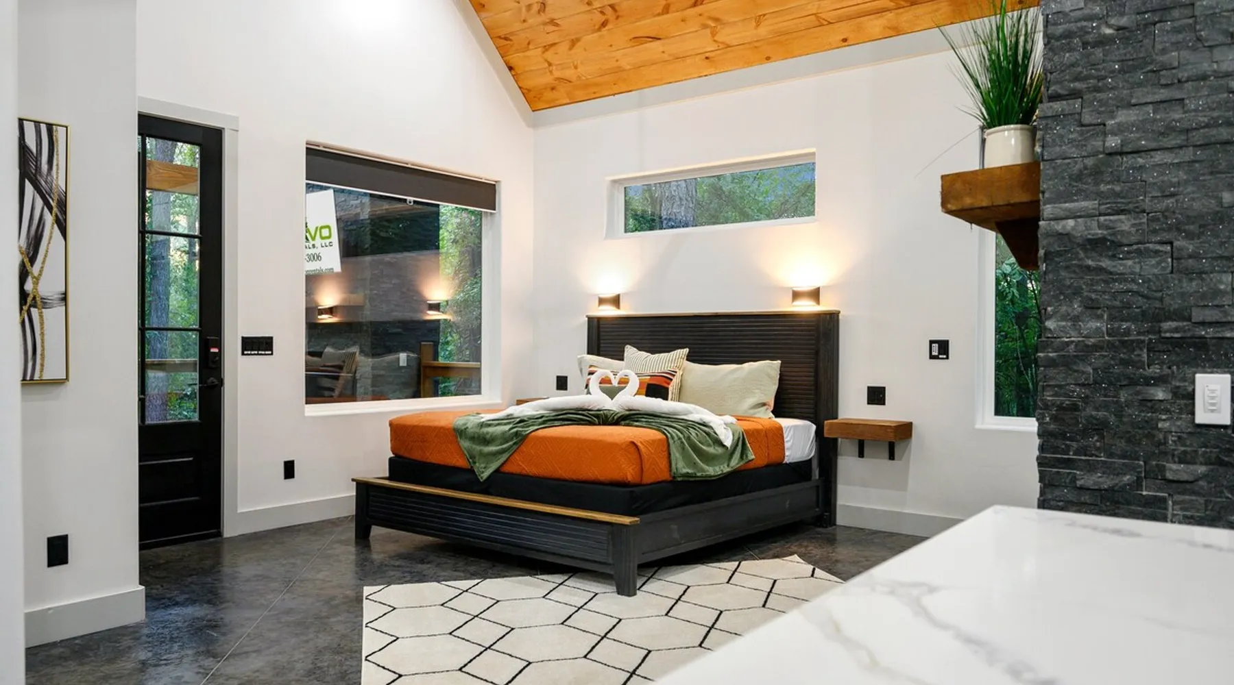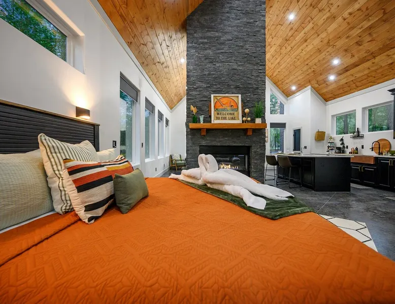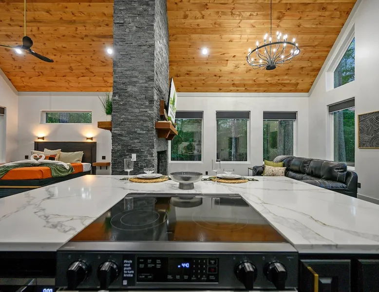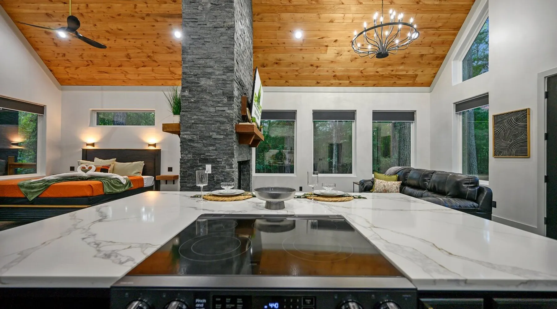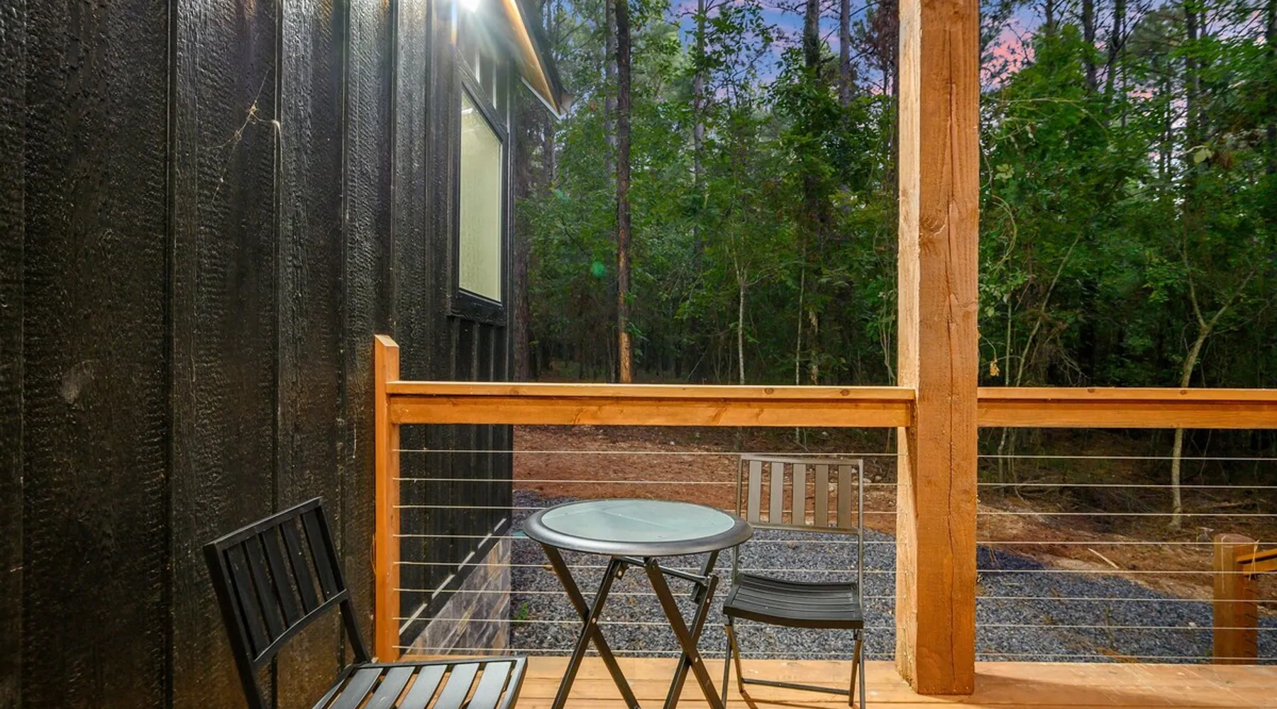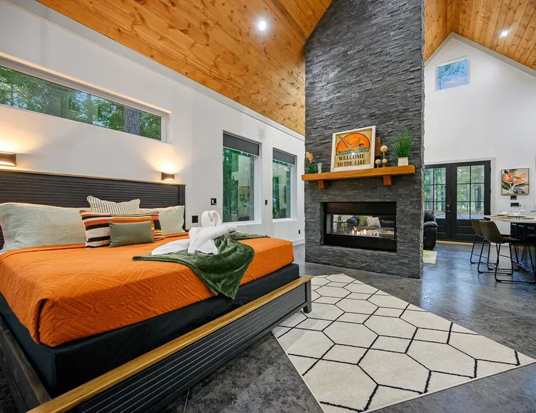 Wonderful Tonight – Hosted by Bravo Cabin Rentals This beautifully designed retreat offers an ideal escape for couples seeking tranquility and connection. Unwind in the luxurious hot tub under a starlit sky, or gather around the cozy firepit to share stories and create lasting memories. The cabin is equipped with an EV plug for electric vehicle charging, ensuring that your eco-friendly travel needs are met, although please note that a charger is not provided. The space **PET FRIENDLY** - 1 dog under 60lbs - $125 non-refundable pet fee - Fee is not included in your total and will be collected separately The epitome of comfort and style is this beautifully designed living space, featuring a luxurious leather pull-out sofa that effortlessly accommodates guests, complemented by a big-screen TV for your entertainment needs. The inviting coffee table serves as a perfect centerpiece, while the double-sided gas firepit adds a touch of warmth and ambiance, making it an ideal setting for both relaxation and social gatherings. The open-concept kitchen is a culinary enthusiast's dream, fully stocked with all the essential tools and appliances required for cooking and entertaining. The kitchen island provides a cozy dining area for two, allowing for intimate meals or casual breakfasts, all within a bright and airy space that encourages creativity and connection. Retreat to the serene bedroom, where a king-size bed promises restful nights and rejuvenating sleep. The room is thoughtfully furnished with nightstands and lamps for convenience, along with another big-screen TV, ensuring that you can unwind in comfort. The bathroom is a sanctuary of relaxation, featuring a large walk-in shower alongside a luxurious soaker tub, perfect for unwinding after a long day. All linens, as well as quality shampoo, conditioner, and body wash, are provided, ensuring that your stay is as comfortable and convenient as possible. Imagine cozy evenings gathered around the gas fireplace, providing warmth and ambiance as you enjoy the company of friends or family on the comfortable seating for three. For those who love to watch the big game or a movie under the stars, the large screen TV is perfectly positioned for optimal viewing. A charming small table for two invites intimate dining experiences, while the Pellet Grill (pellets not included) allows you to unleash your inner chef and savor delicious grilled meals. After a delightful dinner, unwind in the inviting hot tub, where you can soak away the stresses of the day. As the night deepens, gather around the firepit with seating for two, sharing stories and laughter under the twinkling night sky. This outdoor living ensemble is not just a space; it's an experience waiting to be enjoyed! General Information – A full-size washer and dryer are available in the laundry closet. Gas fireplaces are seasonally available (October – May 15th). Please also note that this property uses exterior surveillance cameras facing away from and monitoring activity approaching the cabin’s entrances. The only cameras being monitored during your stay are the front-facing cameras to ensure guests do not go over max occupancy at check-in. Wi-Fi can be spotty if you are in a rural area. An EV plug is provided, but a charger will be needed. For any cancellation processed in which a refund is due to the guest, there will be a $50 processing fee. Maximum occupancy for this cabin is 4 guests, with NO EXCEPTIONS. Guest access Guest has access to entire cabin Other things to note It is located near all the best restaurants, activities, and park amenities. It is just a short drive to Broken Bow Lake, Beavers Bend State Park, popular hiking trails, restaurants, breweries, wineries, and downtown Hochatown, and access to all the outdoors activities you want – boating, hiking, fly-fishing, kayaking, zip-lining, ATV trails, horseback riding, Cedar Creek Golf Course, Choctaw Landing Casino, mini-golf, helicopter rides, mining for gold, train rides, go-carts, and a great petting zoo. Don’t forget these items when you come to visit: • Rain gear and light jackets (Our average rainfall is 55″-60″ each year). • We have beautiful scenic trails; good hiking boots are a must. • Water shoes for our vast shorelines and streams. • Insect repellent, sunblock, and other first-aid supplies. • Coffee and filters – enjoy this while sitting on the deck in the early morning. • Condiments --A starter supply of coffee/filters, salt/pepper, paper towels, toilet paper, bath soap, dish soap, dishwasher tablets, trash bags, and laundry soap is provided. Still, guests may need to bring additional supplies. If we are missing something or you have a question we haven't answered, please feel free to reach out to us directly at Bravo Cabin Rentals and we will personally respond as soon as possible. We look forward to making your next vacation in Broken Bow/Hochatown one you won’t forget!