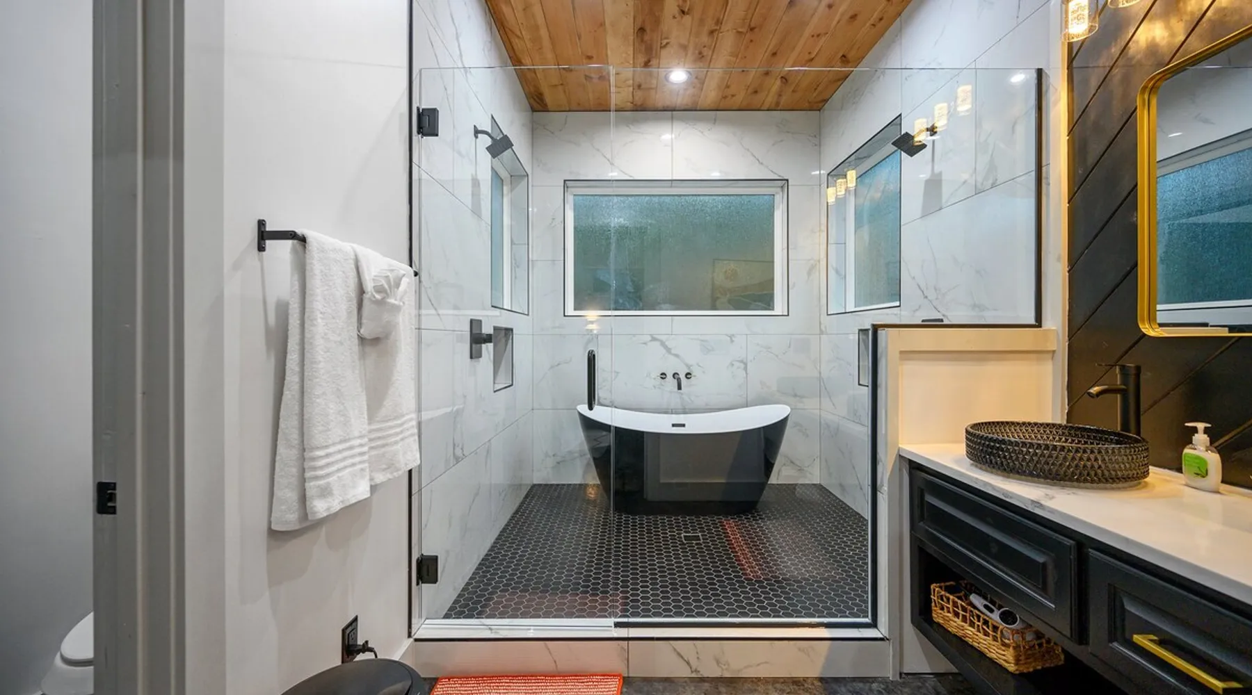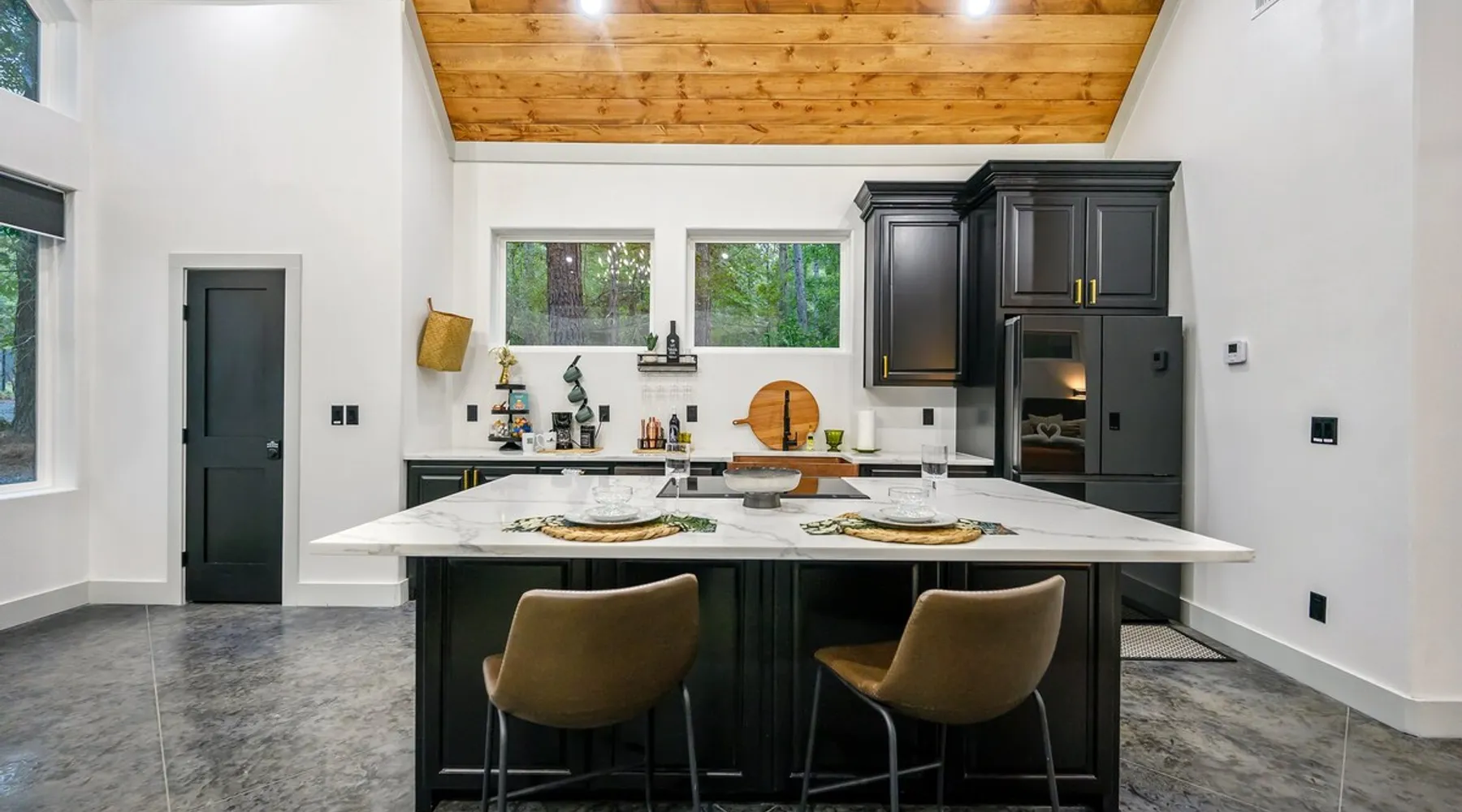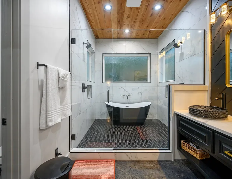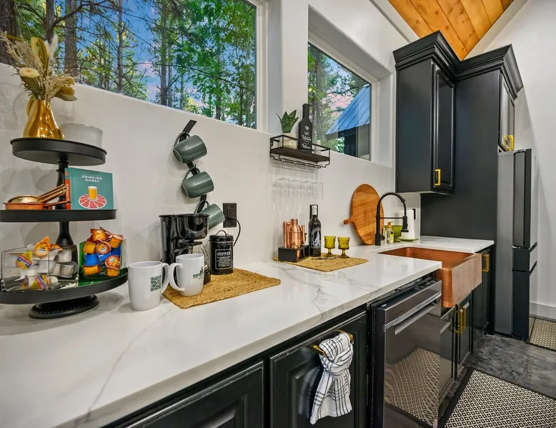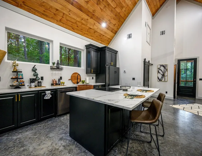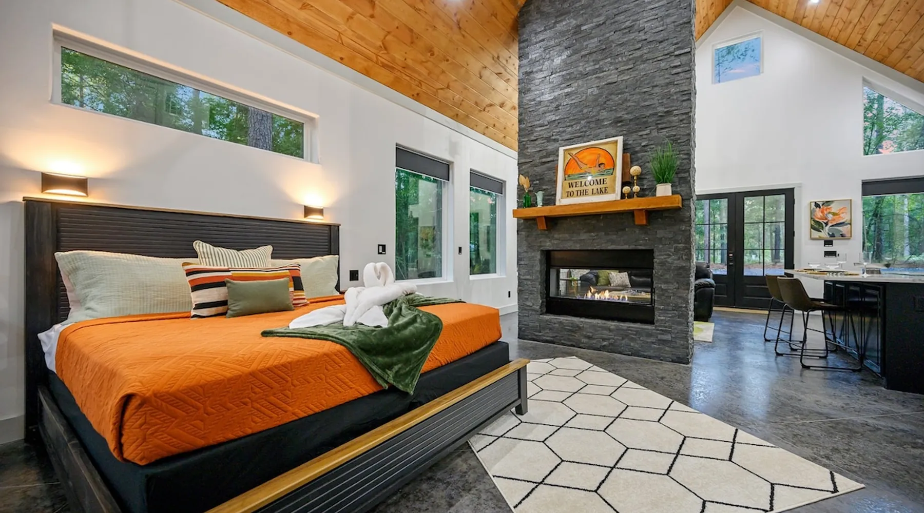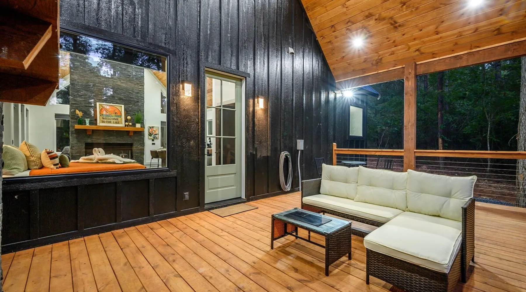 Wonderful Tonight – Hosted by Bravo Cabin Rentals This beautifully designed retreat offers an ideal escape for couples seeking tranquility and connection. Unwind in the luxurious hot tub under a starlit sky, or gather around the cozy firepit to share stories and create lasting memories. The cabin is equipped with an EV plug for electric vehicle charging, ensuring that your eco-friendly travel needs are met, although please note that a charger is not provided. The space **PET FRIENDLY** - 1 dog under 60lbs - $125 non-refundable pet fee - Fee is not included in your total and will be collected separately The epitome of comfort and style is this beautifully designed living space, featuring a luxurious leather pull-out sofa that effortlessly accommodates guests, complemented by a big-screen TV for your entertainment needs. The inviting coffee table serves as a perfect centerpiece, while the double-sided gas firepit adds a touch of warmth and ambiance, making it an ideal setting for both relaxation and social gatherings. The open-concept kitchen is a culinary enthusiast's dream, fully stocked with all the essential tools and appliances required for cooking and entertaining. The kitchen island provides a cozy dining area for two, allowing for intimate meals or casual breakfasts, all within a bright and airy space that encourages creativity and connection. Retreat to the serene bedroom, where a king-size bed promises restful nights and rejuvenating sleep. The room is thoughtfully furnished with nightstands and lamps for convenience, along with another big-screen TV, ensuring that you can unwind in comfort. The bathroom is a sanctuary of relaxation, featuring a large walk-in shower alongside a luxurious soaker tub, perfect for unwinding after a long day. All linens, as well as quality shampoo, conditioner, and body wash, are provided, ensuring that your stay is as comfortable and convenient as possible. Imagine cozy evenings gathered around the gas fireplace, providing warmth and ambiance as you enjoy the company of friends or family on the comfortable seating for three. For those who love to watch the big game or a movie under the stars, the large screen TV is perfectly positioned for optimal viewing. A charming small table for two invites intimate dining experiences, while the Pellet Grill (pellets not included) allows you to unleash your inner chef and savor delicious grilled meals. After a delightful dinner, unwind in the inviting hot tub, where you can soak away the stresses of the day. As the night deepens, gather around the firepit with seating for two, sharing stories and laughter under the twinkling night sky. This outdoor living ensemble is not just a space; it's an experience waiting to be enjoyed! General Information – A full-size washer and dryer are available in the laundry closet. Gas fireplaces are seasonally available (October – May 15th). Please also note that this property uses exterior surveillance cameras facing away from and monitoring activity approaching the cabin’s entrances. The only cameras being monitored during your stay are the front-facing cameras to ensure guests do not go over max occupancy at check-in. Wi-Fi can be spotty if you are in a rural area. An EV plug is provided, but a charger will be needed. For any cancellation processed in which a refund is due to the guest, there will be a $50 processing fee. Maximum occupancy for this cabin is 4 guests, with NO EXCEPTIONS. Guest access Guest has access to entire cabin Other things to note It is located near all the best restaurants, activities, and park amenities. It is just a short drive to Broken Bow Lake, Beavers Bend State Park, popular hiking trails, restaurants, breweries, wineries, and downtown Hochatown, and access to all the outdoors activities you want – boating, hiking, fly-fishing, kayaking, zip-lining, ATV trails, horseback riding, Cedar Creek Golf Course, Choctaw Landing Casino, mini-golf, helicopter rides, mining for gold, train rides, go-carts, and a great petting zoo. Don’t forget these items when you come to visit: • Rain gear and light jackets (Our average rainfall is 55″-60″ each year). • We have beautiful scenic trails; good hiking boots are a must. • Water shoes for our vast shorelines and streams. • Insect repellent, sunblock, and other first-aid supplies. • Coffee and filters – enjoy this while sitting on the deck in the early morning. • Condiments --A starter supply of coffee/filters, salt/pepper, paper towels, toilet paper, bath soap, dish soap, dishwasher tablets, trash bags, and laundry soap is provided. Still, guests may need to bring additional supplies. If we are missing something or you have a question we haven't answered, please feel free to reach out to us directly at Bravo Cabin Rentals and we will personally respond as soon as possible. We look forward to making your next vacation in Broken Bow/Hochatown one you won’t forget!