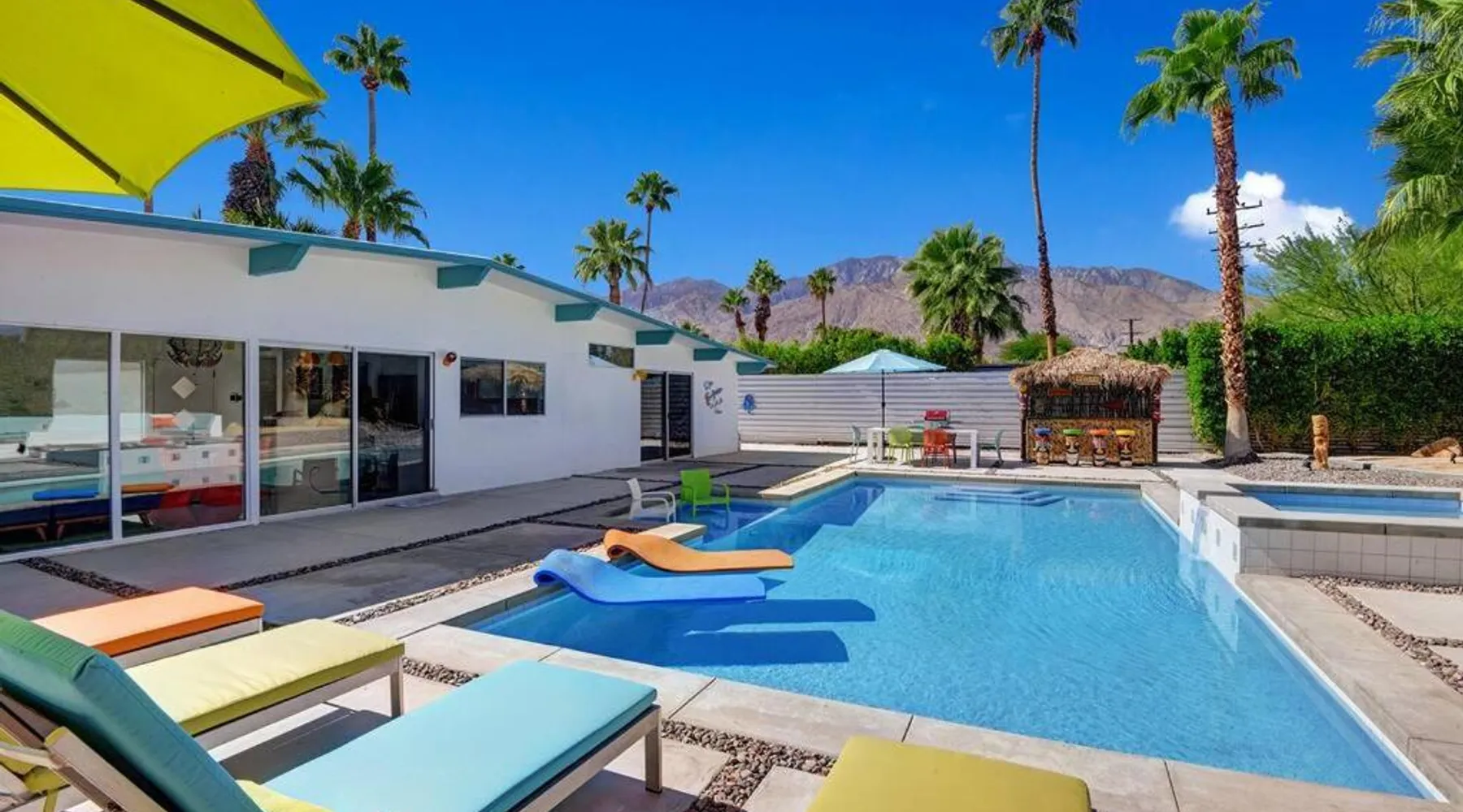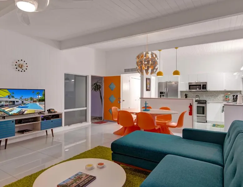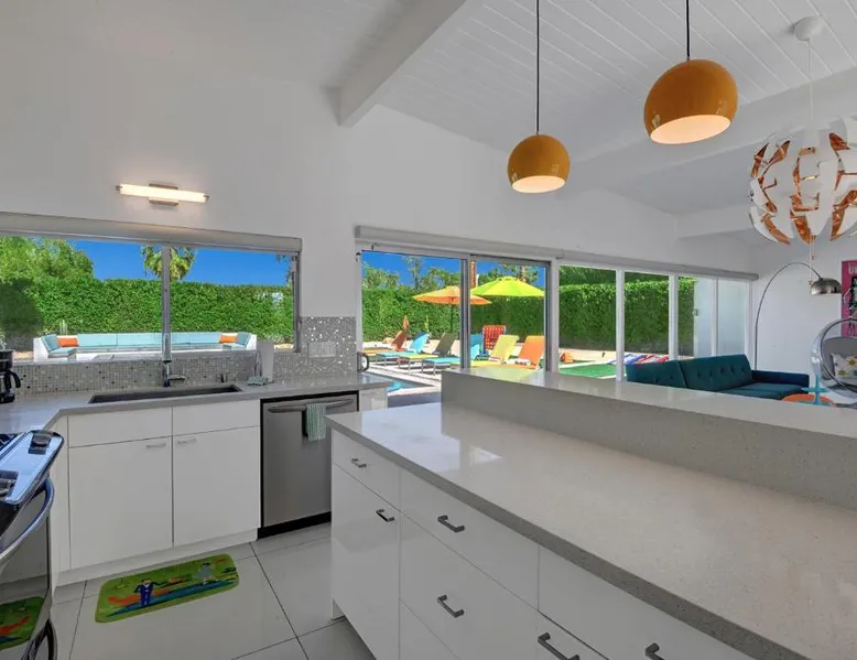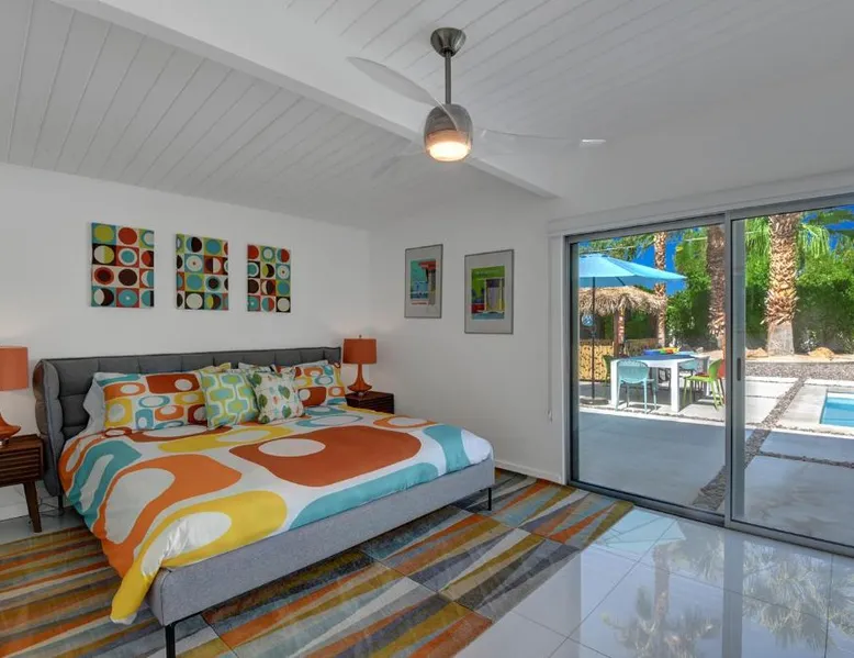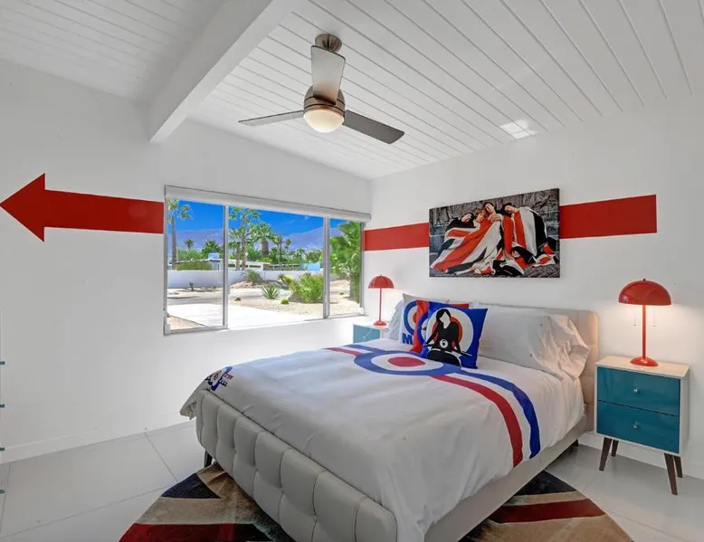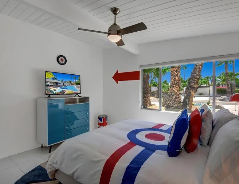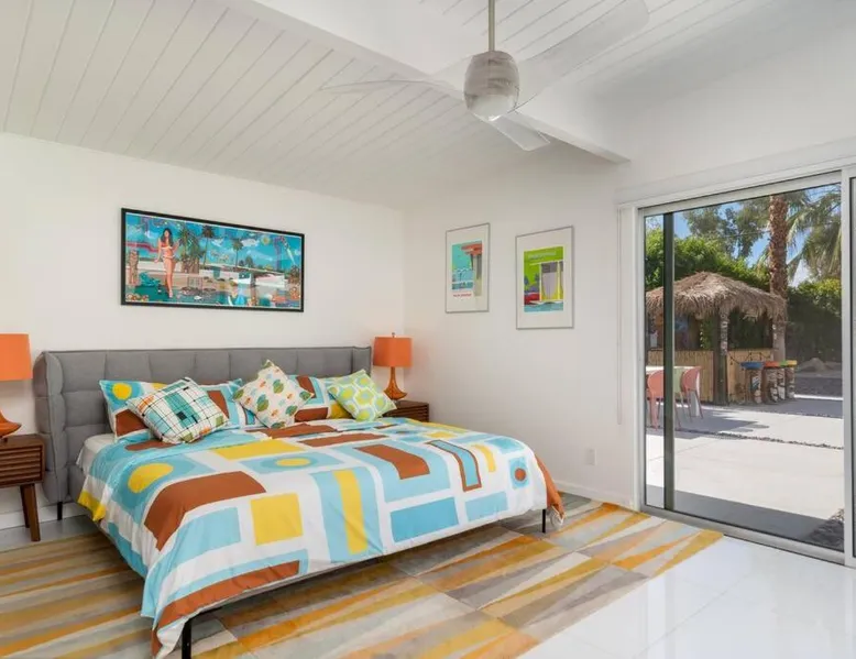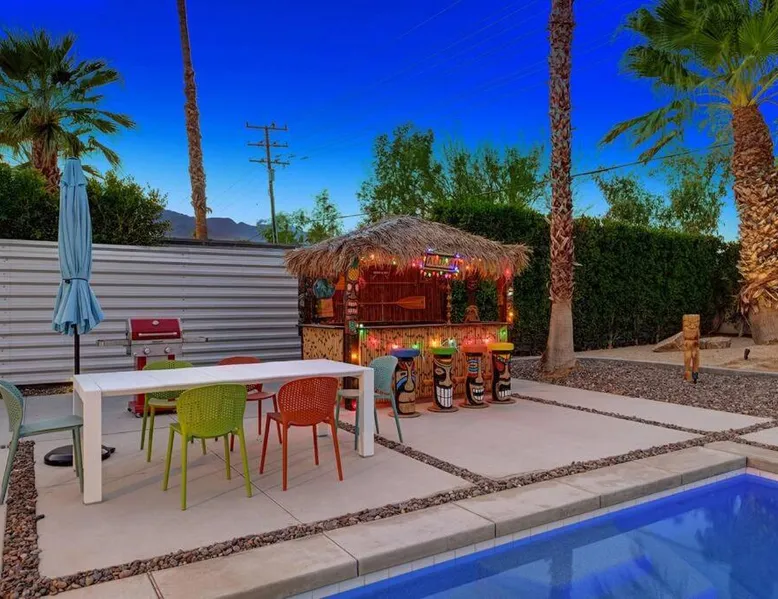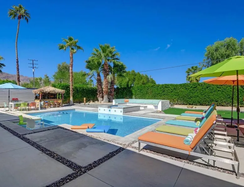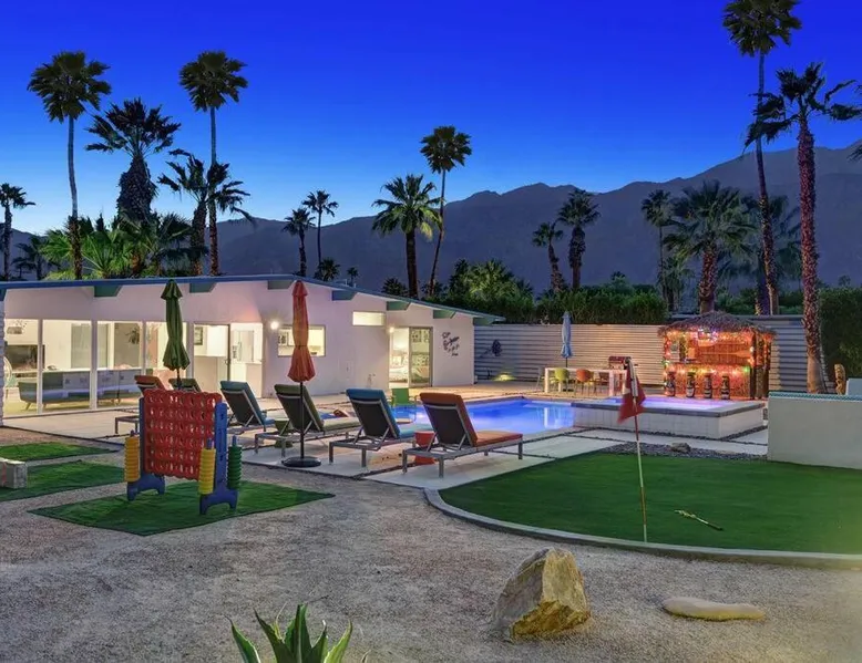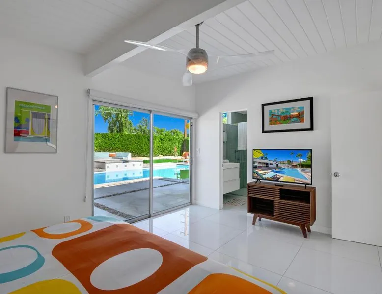 Spa and Wellness Center: Retro A Go Go House in Palm Springs offers a spa and wellness center, saltwater swimming pool, and a lush garden. Guests can relax in the hot tub or enjoy the outdoor fireplace. Comfortable Accommodations: The holiday home features four bedrooms and three bathrooms, a spacious living room, and free WiFi. Additional amenities include air-conditioning, a fully equipped kitchen, and a washing machine. Leisure Facilities: The property includes a bar, outdoor seating areas, and a picnic area. Free on-site private parking is available, and Palm Springs International Airport is 3281 feet away. Nearby attractions include Palm Springs Convention Center (1.9 mi) and Palm Springs Aerial Tramway (4.3 mi). This luxurious holiday home offers a pool with a view, a hot tub and a fireplace. This spacious holiday home comes with 1 living room, 4 separate bedrooms and 3 bathrooms with a shower and free toiletries. Guests will find a stovetop, a refrigerator, a dishwasher and an oven in the fully equipped kitchen. The holiday home also includes a barbecue. The air-conditioned holiday home features a flat-screen TV with cable channels, a washing machine, a private entrance, a mini-bar as well as pool views. The unit has 4 beds.