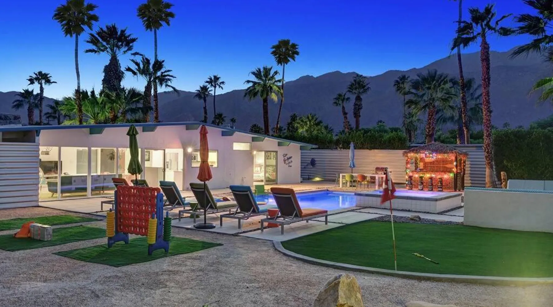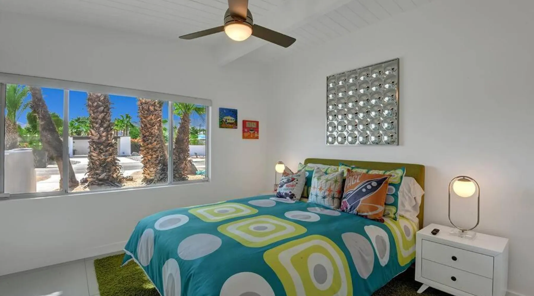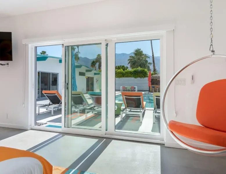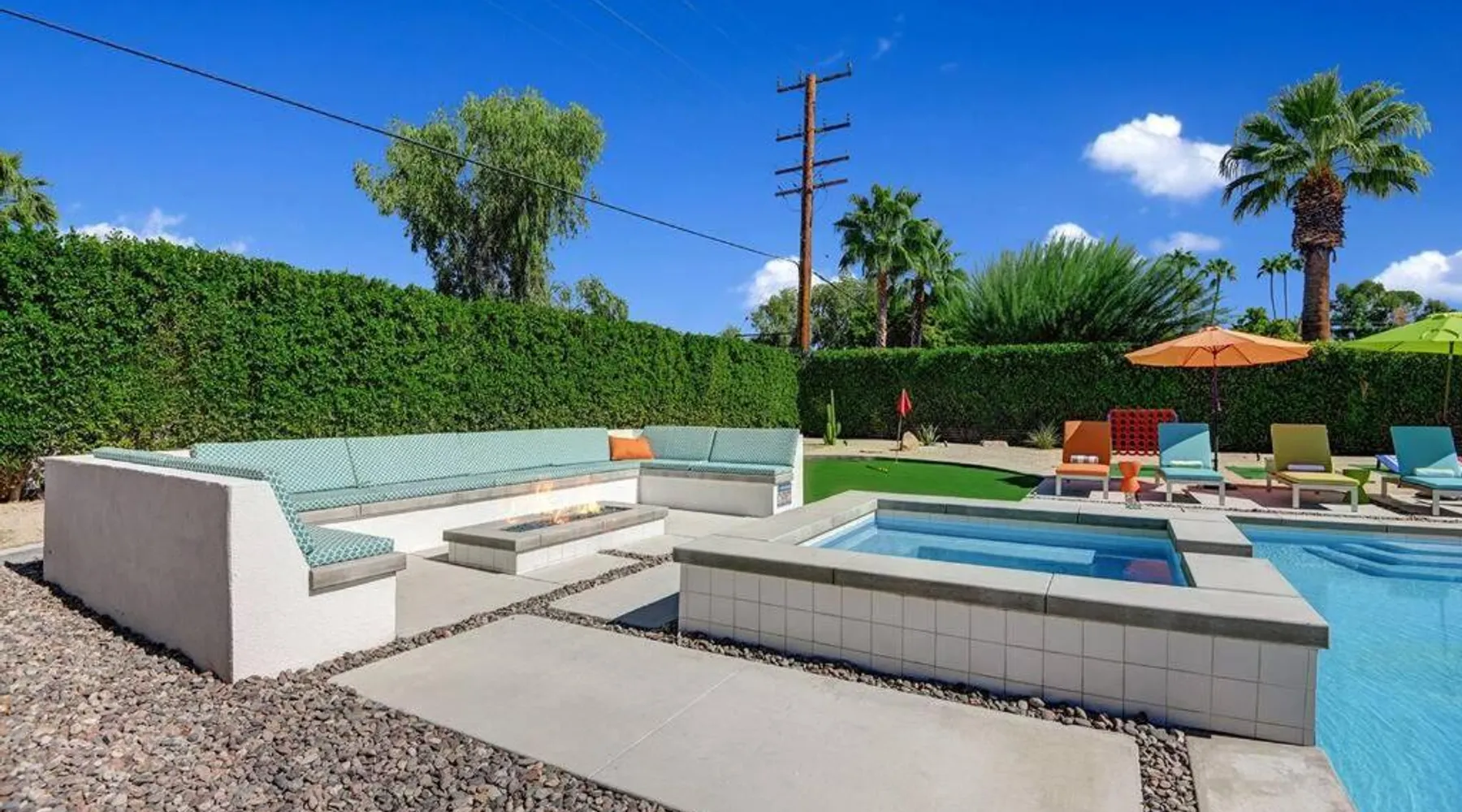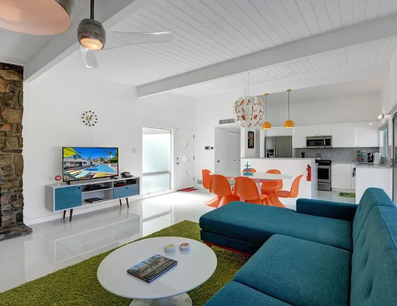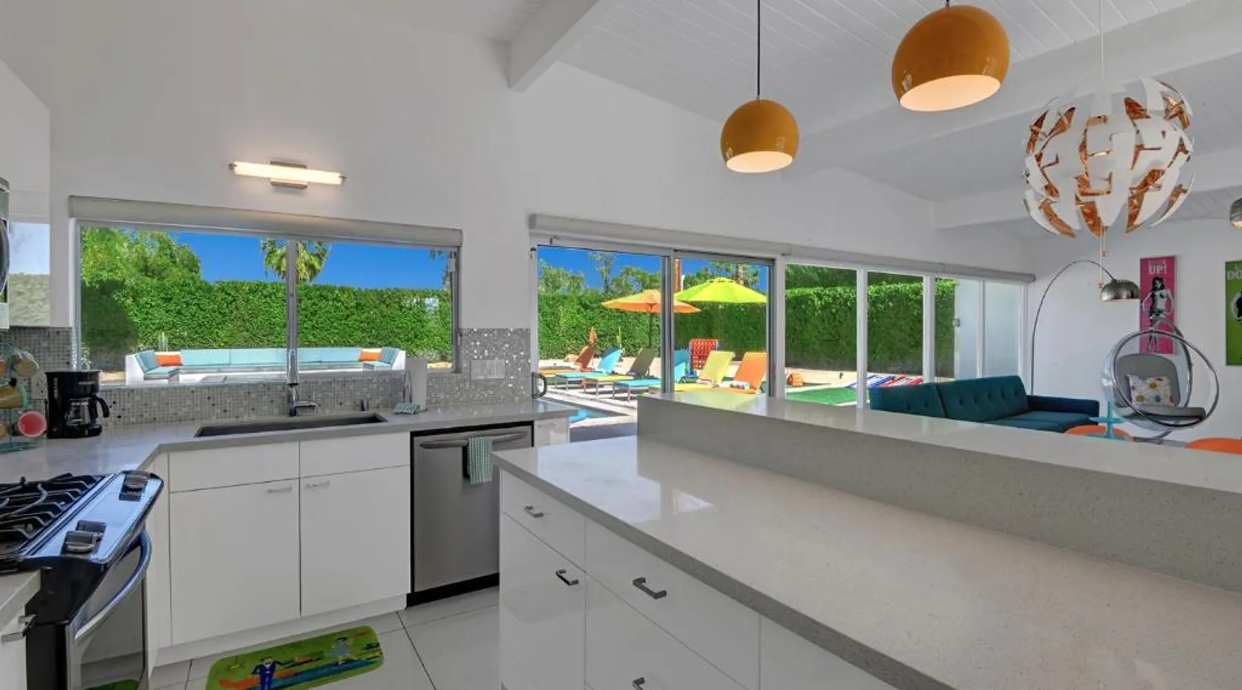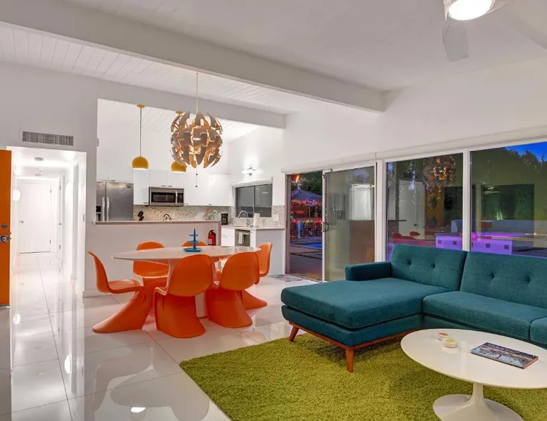 Spa and Wellness Center: Retro A Go Go House in Palm Springs offers a spa and wellness center, saltwater swimming pool, and a lush garden. Guests can relax in the hot tub or enjoy the outdoor fireplace. Comfortable Accommodations: The holiday home features four bedrooms and three bathrooms, a spacious living room, and free WiFi. Additional amenities include air-conditioning, a fully equipped kitchen, and a washing machine. Leisure Facilities: The property includes a bar, outdoor seating areas, and a picnic area. Free on-site private parking is available, and Palm Springs International Airport is 3281 feet away. Nearby attractions include Palm Springs Convention Center (1.9 mi) and Palm Springs Aerial Tramway (4.3 mi). This luxurious holiday home offers a pool with a view, a hot tub and a fireplace. This spacious holiday home comes with 1 living room, 4 separate bedrooms and 3 bathrooms with a shower and free toiletries. Guests will find a stovetop, a refrigerator, a dishwasher and an oven in the fully equipped kitchen. The holiday home also includes a barbecue. The air-conditioned holiday home features a flat-screen TV with cable channels, a washing machine, a private entrance, a mini-bar as well as pool views. The unit has 4 beds.