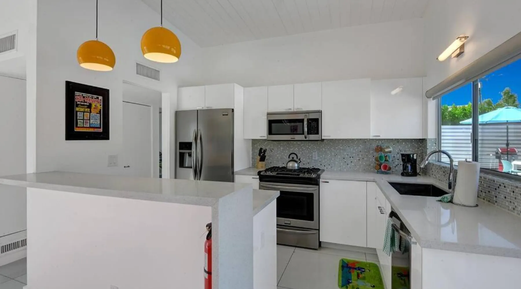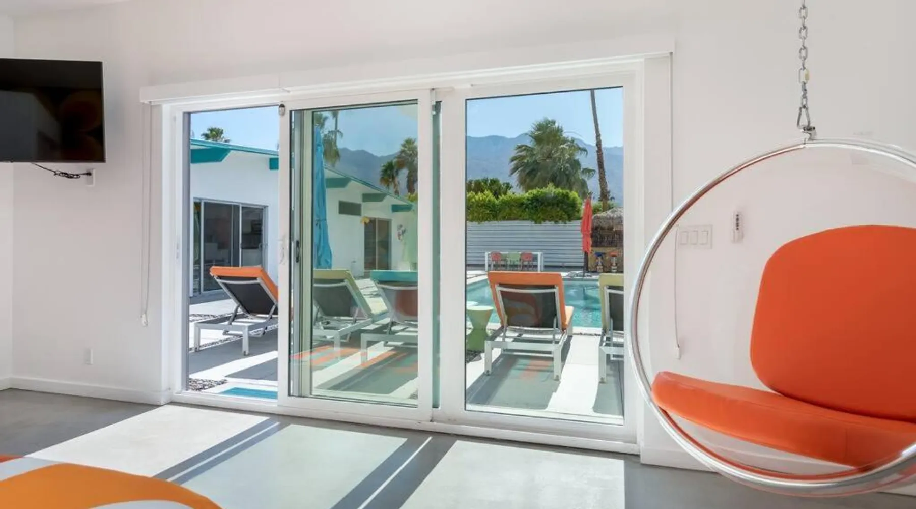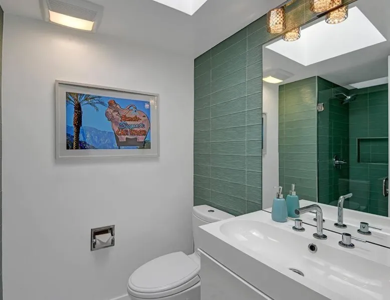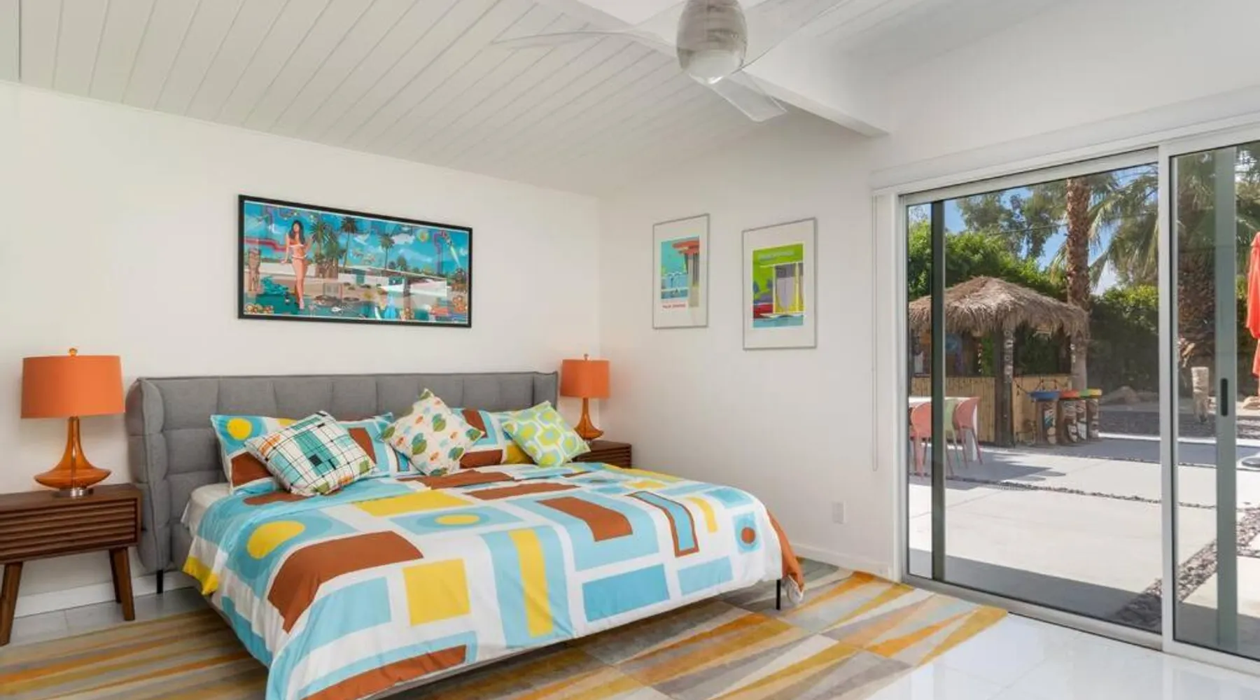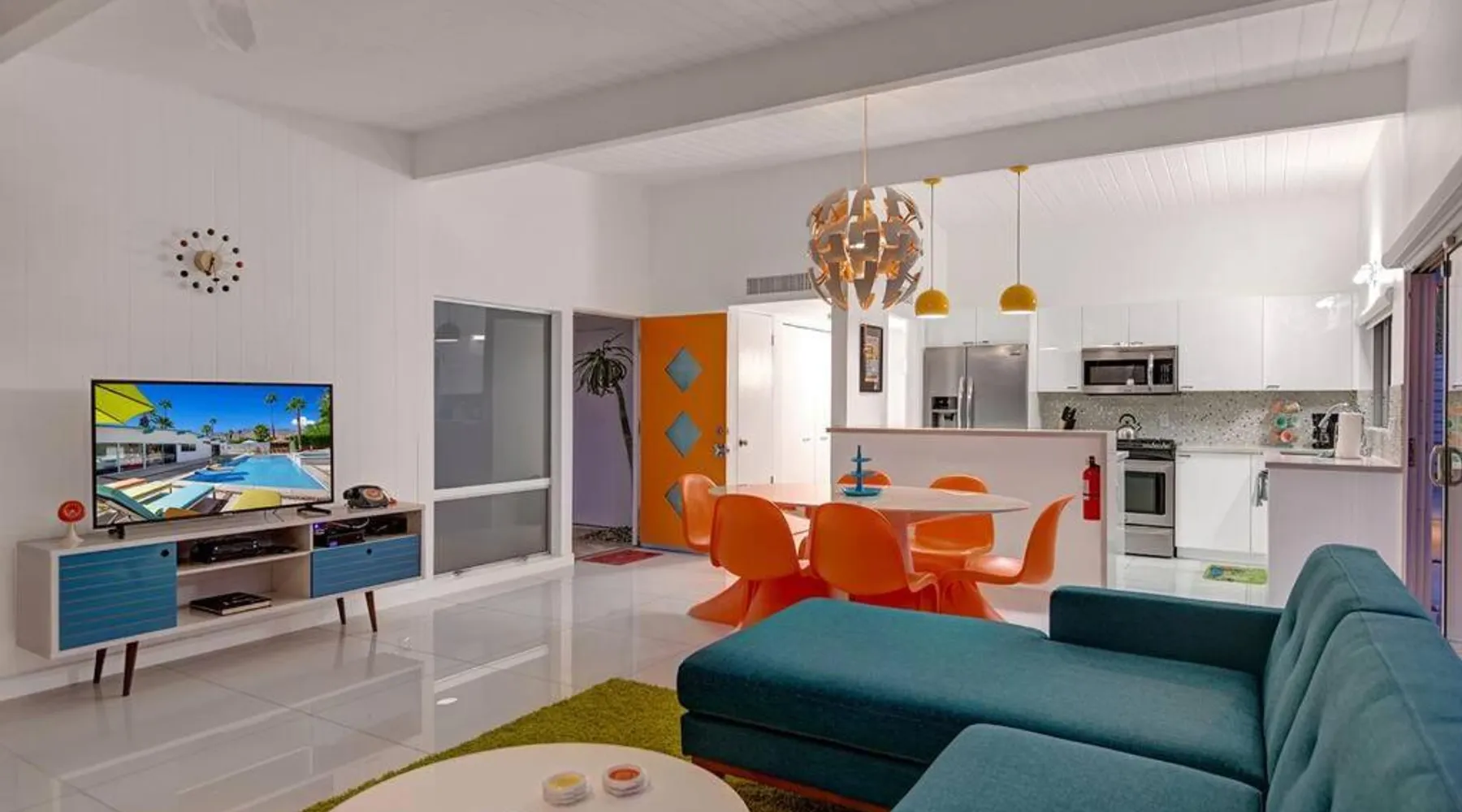 Spa and Wellness Center: Retro A Go Go House in Palm Springs offers a spa and wellness center, saltwater swimming pool, and a lush garden. Guests can relax in the hot tub or enjoy the outdoor fireplace. Comfortable Accommodations: The holiday home features four bedrooms and three bathrooms, a spacious living room, and free WiFi. Additional amenities include air-conditioning, a fully equipped kitchen, and a washing machine. Leisure Facilities: The property includes a bar, outdoor seating areas, and a picnic area. Free on-site private parking is available, and Palm Springs International Airport is 3281 feet away. Nearby attractions include Palm Springs Convention Center (1.9 mi) and Palm Springs Aerial Tramway (4.3 mi). This luxurious holiday home offers a pool with a view, a hot tub and a fireplace. This spacious holiday home comes with 1 living room, 4 separate bedrooms and 3 bathrooms with a shower and free toiletries. Guests will find a stovetop, a refrigerator, a dishwasher and an oven in the fully equipped kitchen. The holiday home also includes a barbecue. The air-conditioned holiday home features a flat-screen TV with cable channels, a washing machine, a private entrance, a mini-bar as well as pool views. The unit has 4 beds.