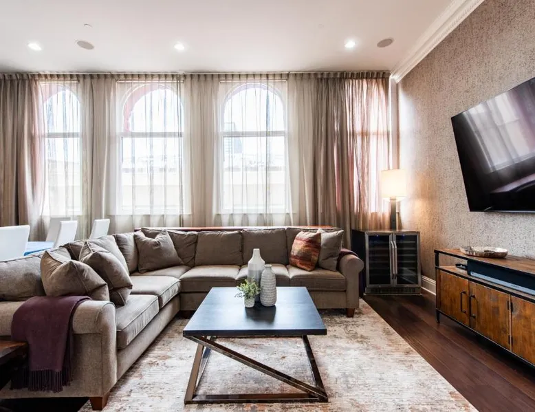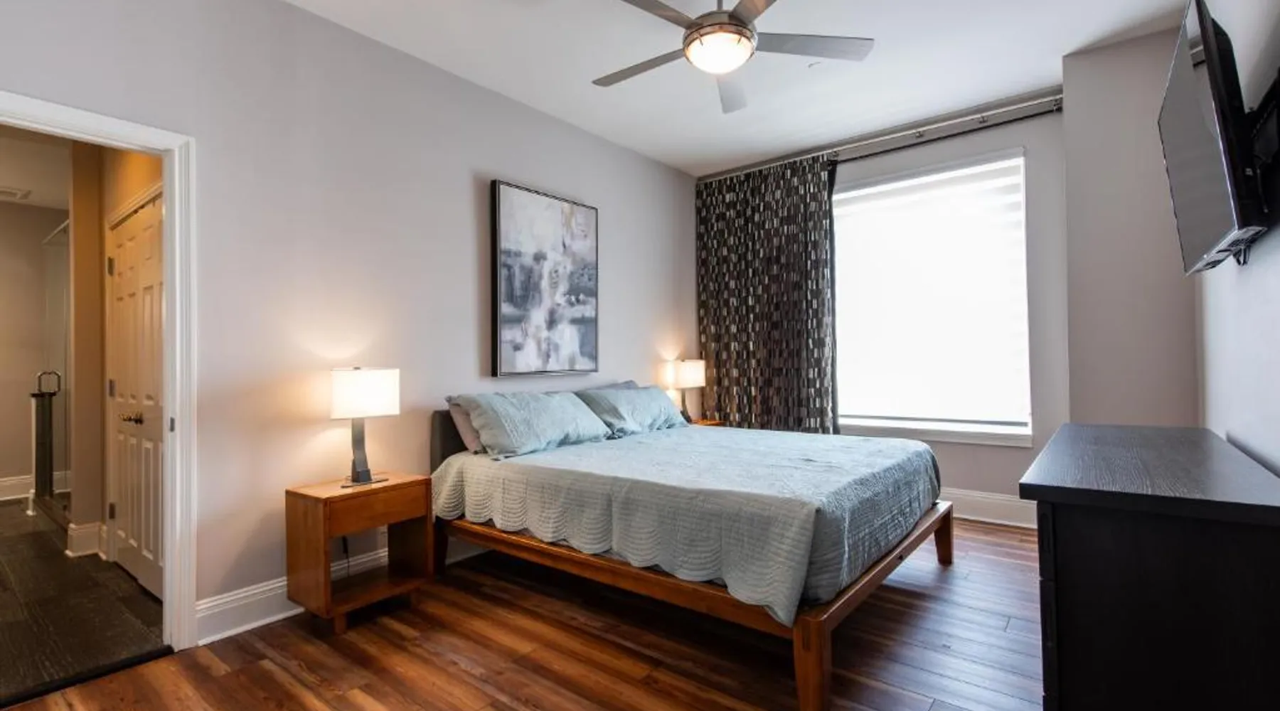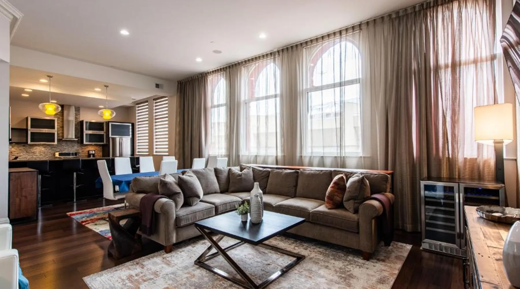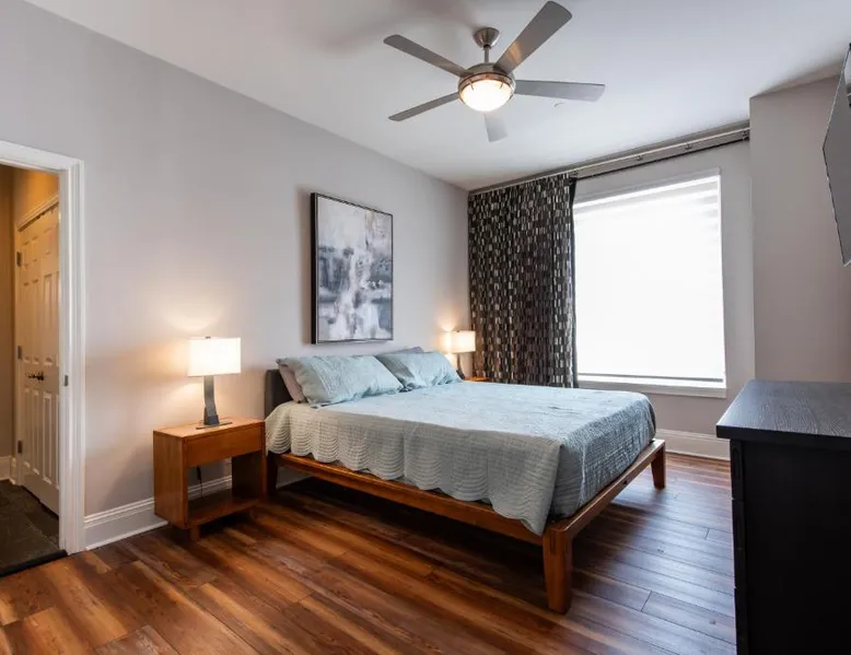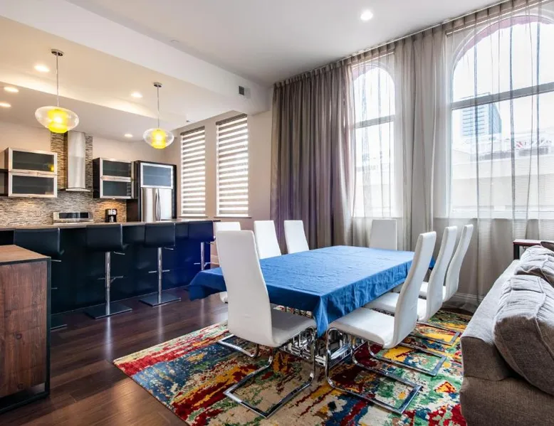 Spacious Accommodations: Luxe Louisville Condo offers a spacious apartment in Louisville city center. The property features three bedrooms and two bathrooms, complemented by a comfortable living room. Modern Amenities: Guests enjoy free WiFi, air-conditioning, and a fully equipped kitchen with a refrigerator, microwave, dishwasher, and oven. Additional amenities include a washing machine, dining area, and parquet floors. Convenient Location: Located 5 mi from Louisville International Airport, the apartment is a short walk from KFC Yum! Center and Kentucky International Convention Center. Nearby attractions include the Muhammad Ali Center and Louisville Slugger Museum Factory. Highly Rated by Guests: Guests appreciate the spaciousness, excellent facilities, and free parking. The property is highly rated for its comfortable accommodations and excellent service. This spacious apartment consists of 1 living room, 3 separate bedrooms and 2 bathrooms with a walk-in shower and a bath. The well-equipped kitchen has a stovetop, a refrigerator, a dishwasher and kitchenware. This apartment is air-conditioned and features a seating area with a flat-screen TV, a washing machine, a tea and coffee maker, a dining area, as well as a wardrobe. The unit offers 3 beds.