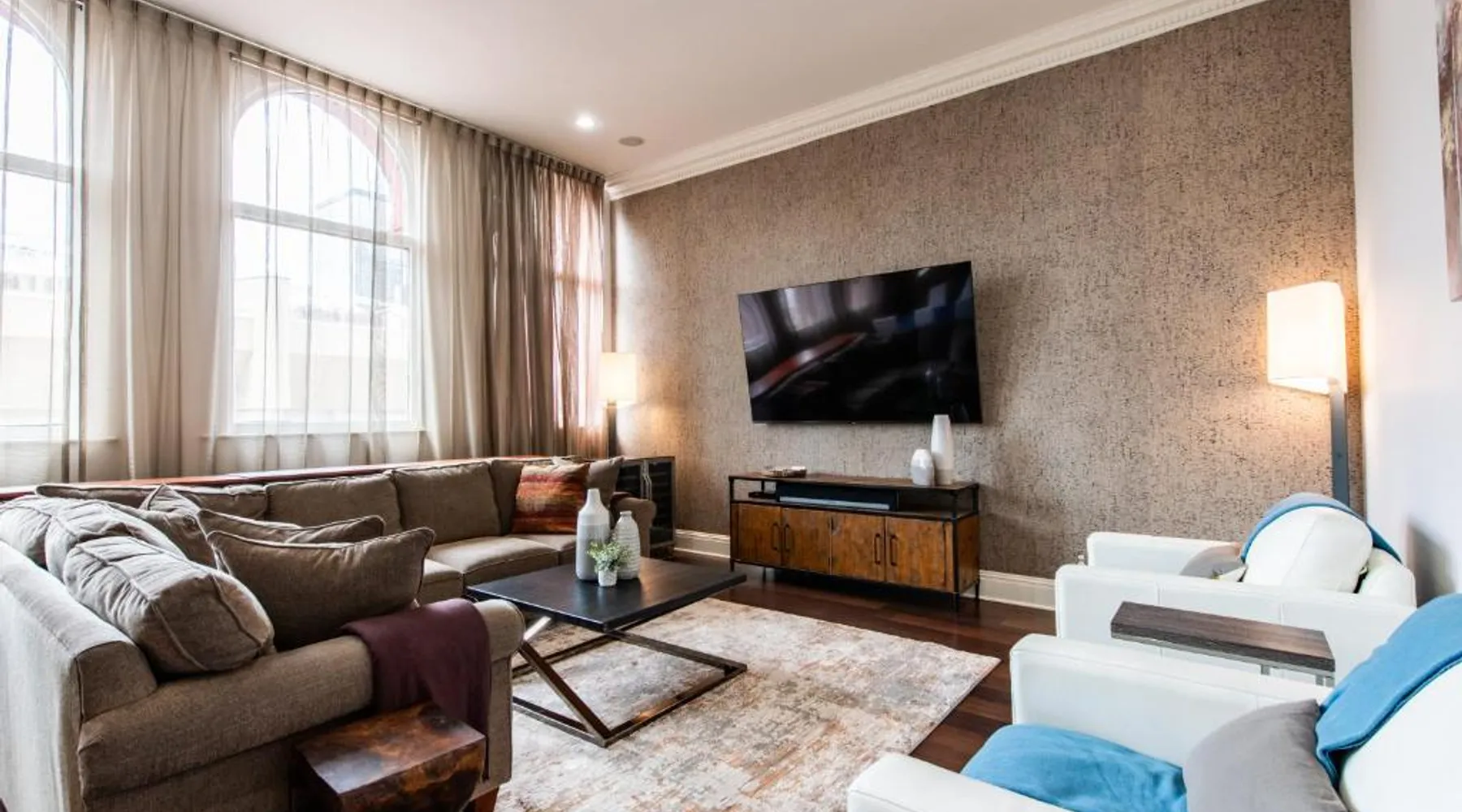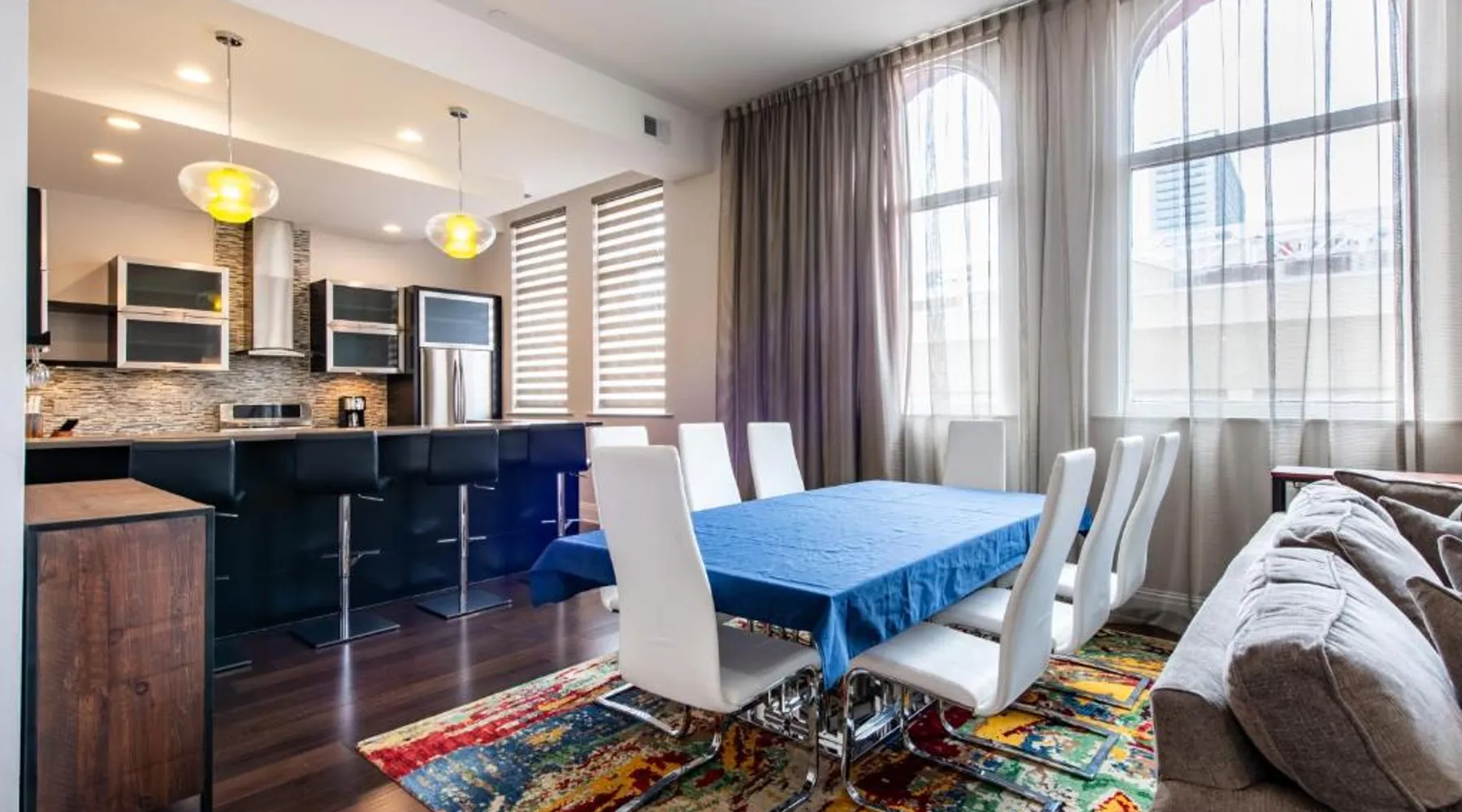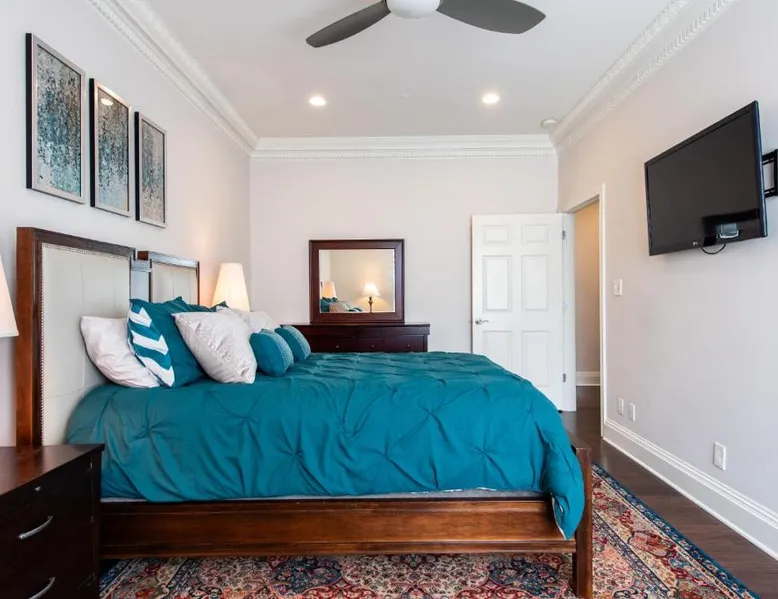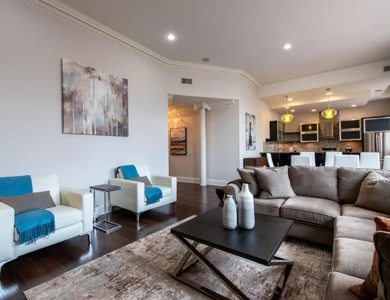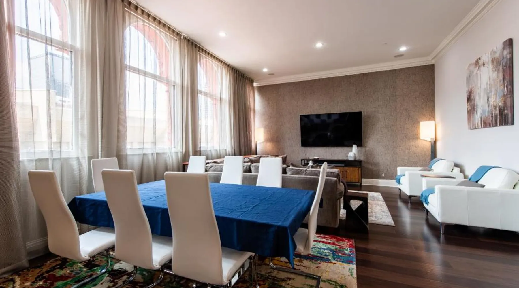 Spacious Accommodations: Luxe Louisville Condo offers a spacious apartment in Louisville city center. The property features three bedrooms and two bathrooms, complemented by a comfortable living room. Modern Amenities: Guests enjoy free WiFi, air-conditioning, and a fully equipped kitchen with a refrigerator, microwave, dishwasher, and oven. Additional amenities include a washing machine, dining area, and parquet floors. Convenient Location: Located 5 mi from Louisville International Airport, the apartment is a short walk from KFC Yum! Center and Kentucky International Convention Center. Nearby attractions include the Muhammad Ali Center and Louisville Slugger Museum Factory. Highly Rated by Guests: Guests appreciate the spaciousness, excellent facilities, and free parking. The property is highly rated for its comfortable accommodations and excellent service. This spacious apartment consists of 1 living room, 3 separate bedrooms and 2 bathrooms with a walk-in shower and a bath. The well-equipped kitchen has a stovetop, a refrigerator, a dishwasher and kitchenware. This apartment is air-conditioned and features a seating area with a flat-screen TV, a washing machine, a tea and coffee maker, a dining area, as well as a wardrobe. The unit offers 3 beds.