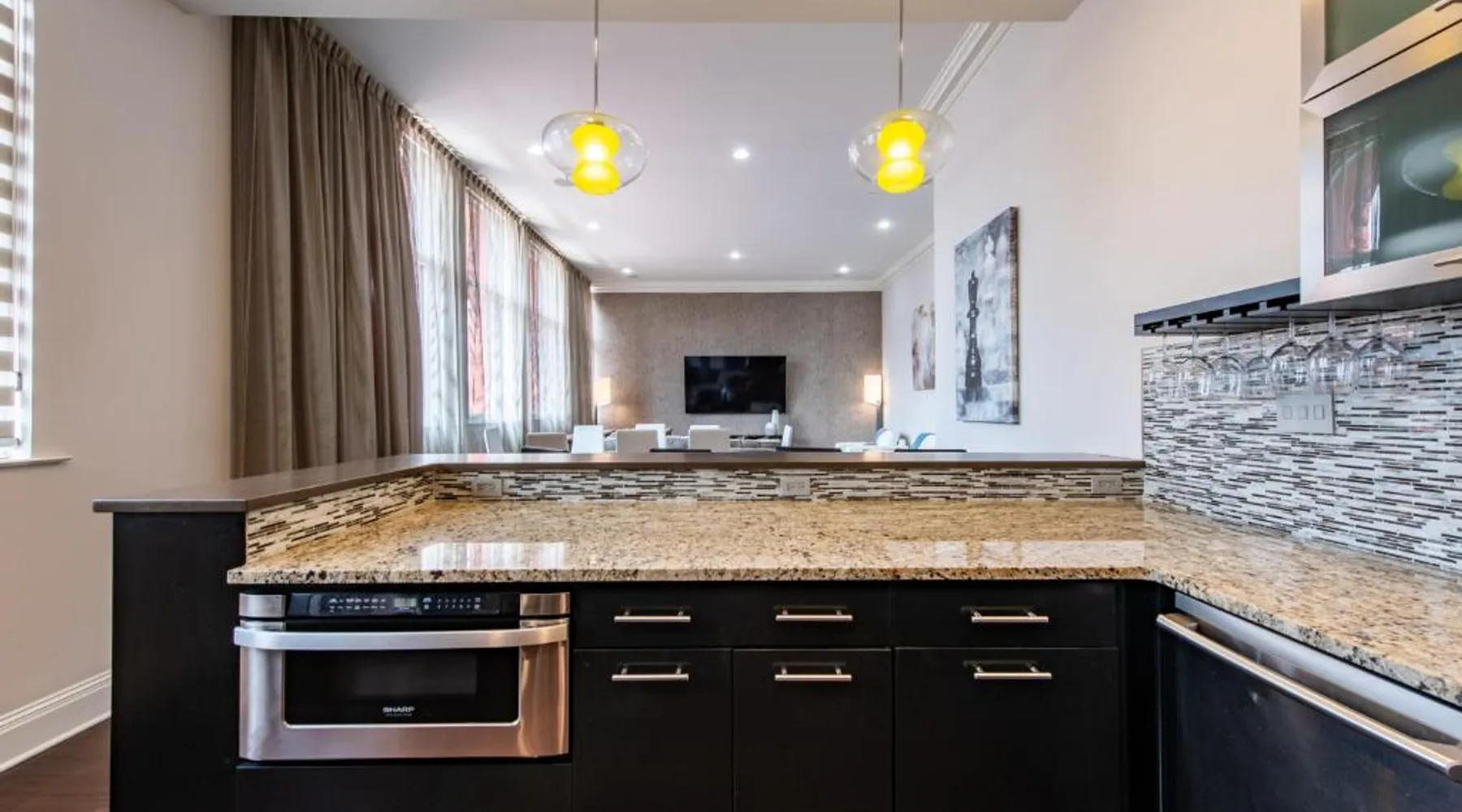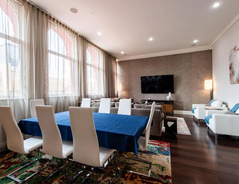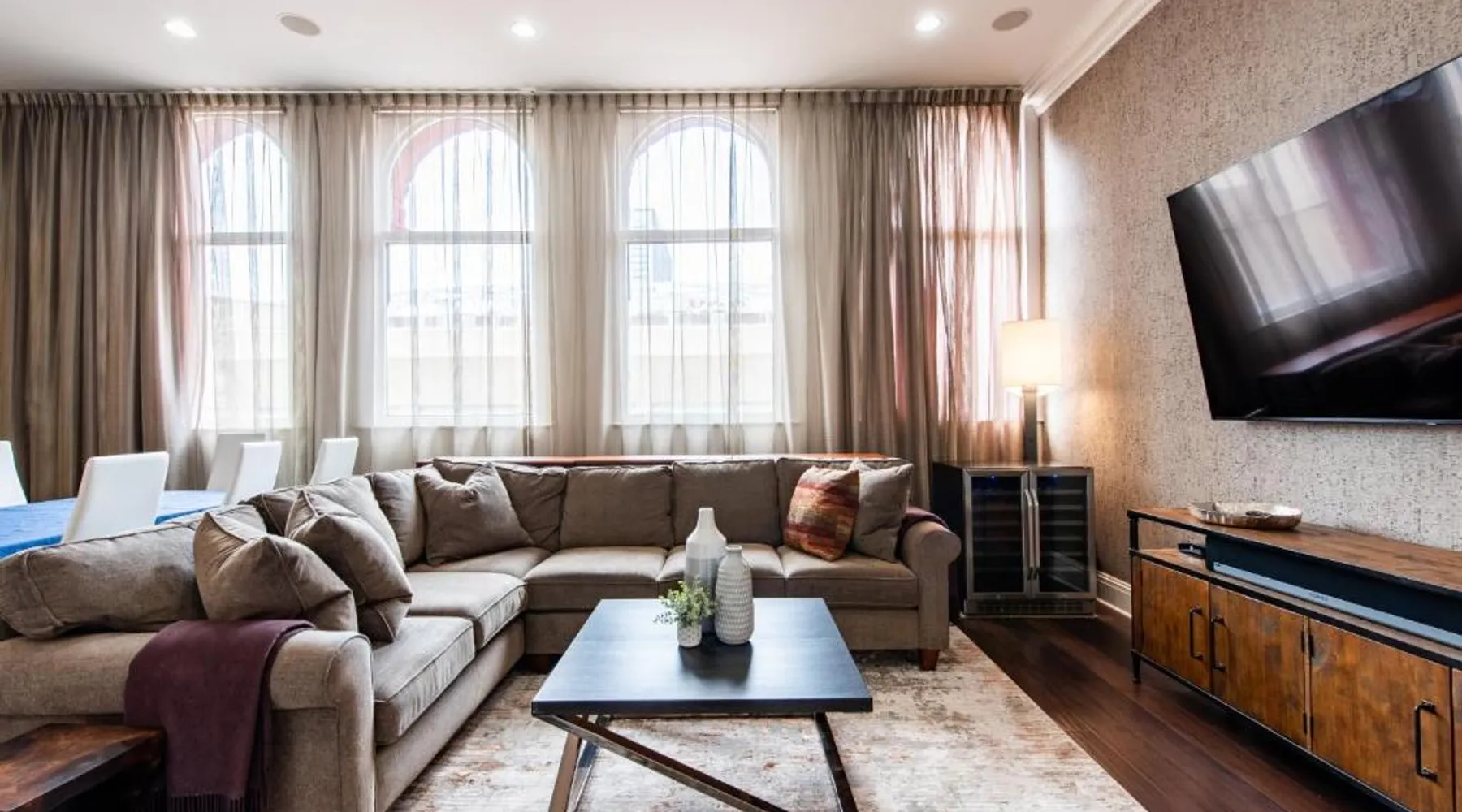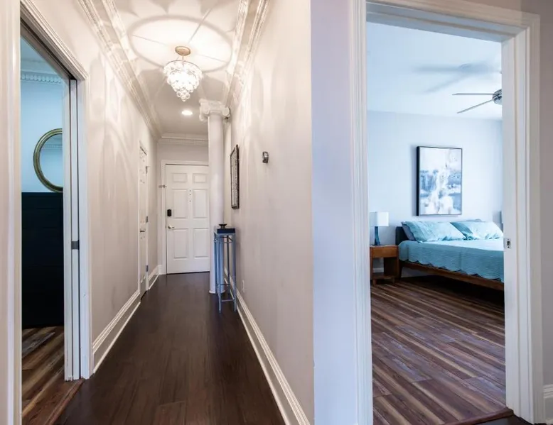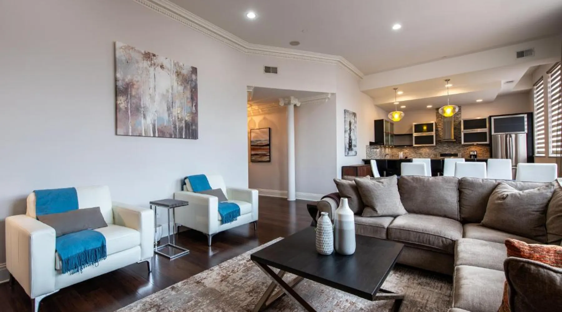 Spacious Accommodations: Luxe Louisville Condo offers a spacious apartment in Louisville city center. The property features three bedrooms and two bathrooms, complemented by a comfortable living room. Modern Amenities: Guests enjoy free WiFi, air-conditioning, and a fully equipped kitchen with a refrigerator, microwave, dishwasher, and oven. Additional amenities include a washing machine, dining area, and parquet floors. Convenient Location: Located 5 mi from Louisville International Airport, the apartment is a short walk from KFC Yum! Center and Kentucky International Convention Center. Nearby attractions include the Muhammad Ali Center and Louisville Slugger Museum Factory. Highly Rated by Guests: Guests appreciate the spaciousness, excellent facilities, and free parking. The property is highly rated for its comfortable accommodations and excellent service. This spacious apartment consists of 1 living room, 3 separate bedrooms and 2 bathrooms with a walk-in shower and a bath. The well-equipped kitchen has a stovetop, a refrigerator, a dishwasher and kitchenware. This apartment is air-conditioned and features a seating area with a flat-screen TV, a washing machine, a tea and coffee maker, a dining area, as well as a wardrobe. The unit offers 3 beds.