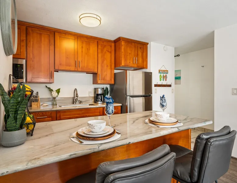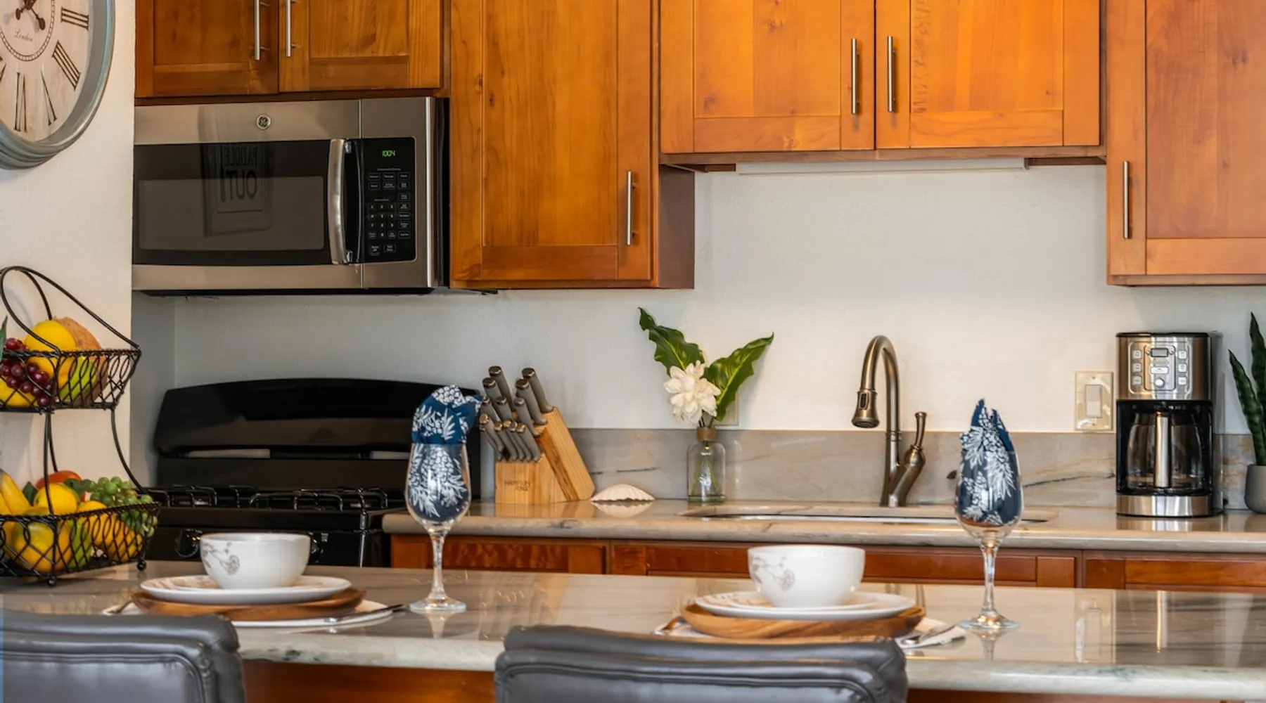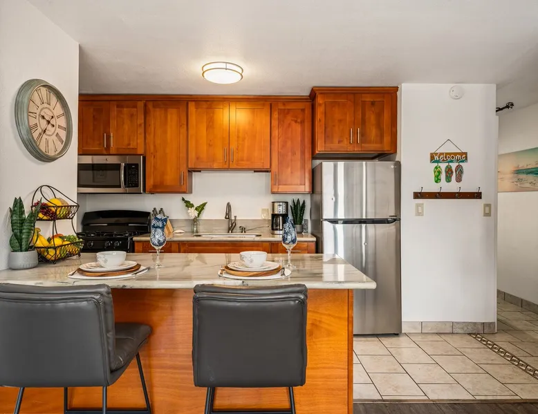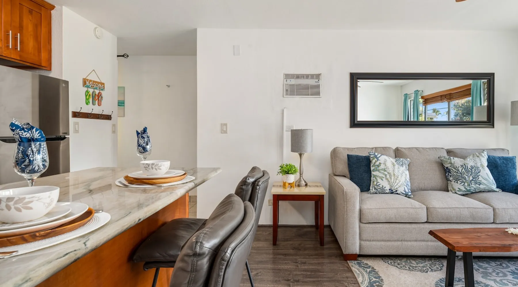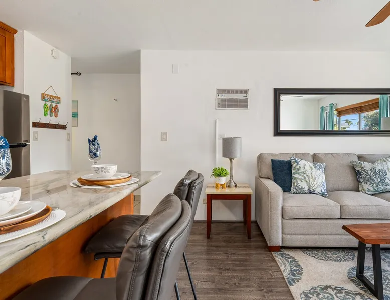 Kihei Villa 105 NEW LISTING Remodeled 1Bedroom Condo in South Maui. Short Walk to the Beach. Close to Restaurants, Shops, and Market. Quiet Maui Life Away From Tourist Crowds The space FREE daily activities included with your stay value up to $554! Complimentary admission, every day of your stay*: Whale Watching (seasonal), Sunset Dinner Cruise, Molokini Snorkel Trip, Alpaca Farm Tour, Pineapple Farm Tour, and Tea Farm Tour. (S1) *One ticket per activity per day. Additional details provided after confirmed booking. Spend your next Hawaiian getaway at this 1-bedroom, 1-bathroom ground floor apartment in the heart of Kihei. Remodeled, this cozy condo offers the perfect blend of comfort and convenience, making it an ideal choice for travelers looking to experience the beauty of Maui. Across the street from the Cove Park and a short walk to Charley Young Beach, you'll have easy access to the ocean, beginner surf spots, and away from the crowds. Inside, you'll find an open concept living area and a fully equipped kitchen, ready for preparing your meals after a day of adventures. The bedroom leads you out to a furnished lanai area, perfect for relaxing with your morning coffee while you prepare for the day. Kihei Villa 105 is ideally located for exploring all that Maui has to offer. Just a short drive or walk will take you to the many attractions, beaches, restaurants, and shops in Kihei and nearby Wailea. Condo Highlights: -1 Bedroom, 1 Bathroom, Sleeps 4 guests -Through wall AC unit in the living room and Split Zone AC unit in the bedroom. -Garden View lanai off the bedroom, furnished with table and seating for 4 -Queen size bed in the bedroom -Sleeper Sofa in the living room -Smart streaming TV in the living room -Fully equipped kitchen -No dishwasher -Kitchen bar seating for 2 -Full bathroom with tub/shower combo -In-unit washer/dryer -Onsite Parking Included Kihei Villa offers a convenient Hawaiian retreat in a prime South Maui location. Although on-site amenities are limited at this complex, Kihei Villa is ideally situated within walking distance to some of South Maui’s most popular beaches, including Charley Young Beach and Cove Park, known for its beginner-friendly surf breaks. The vibrant town of Kihei is minutes away, providing access to all the conveniences and attractions from beach parks to water sports activities, and a variety of dining, shopping, and entertainment options close by. Whether you're looking to explore the island or simply relax on the closest beach, Kihei Villa makes a great home base. Resort Highlights: •Free On-Site Parking •Convenient Kihei Location •Away from crowds •Across the street and close walking distance to Cove Beach Park and Charley Young Beach •No Resort Fees No Mail Allowed: We are unable to receive USPS mail, including letters and packages at this rental. For medical-related items, please contact our Reservations Team for assistance. Minimum age of primary renter: 25 We provide the following in every unit: -First Aid Kit -High Speed Internet -Linens and towels -Iron and ironing board -Hair dryer -Beach towels, Beach chairs, and Hard sided cooler -Starter Kit: Starter supply of shampoo, conditioner, body wash, lotion, hand soap, dish soap, laundry detergent, dishwasher tabs, toilet paper, paper towels, trash bags *We don’t provide beach umbrellas, toys, or gears, such as snorkeling, due to safety, health, and hygiene risks. BEACHES & CRITTERS: The beach size in Hawaii varies month to month due to weather, heavy surf, strong currents, and tides. Due to Maui’s rural setting, you may experience the occasional rooster, as well as harmless geckos. Geckos are friendly, eat insects, and are considered good luck in Hawaii. Please don’t kill them. Although the HOA schedules regular professional pest control services, pests such as ants, roaches and rodents simply cannot be completely controlled in the tropics. Maui is in a tropical climate. If our guest spot more than the normal expected pests, we always make our best efforts to contact and work with the HOA to minimize your interactions with these pests. Any contact with such pests within or outside the unit does not constitute a breach of this Agreement or give Guest any right to any refund or rental adjustment. **We make no guarantee that properties adjacent to the Unit will be free from disturbances, including but not limited to noise or inconvenience from construction, traffic or other guests or neighbors. Any such disturbance shall not constitute a breach of this Agreement or give Guest any right to any refund or rental adjustment. By booking your stay with us, you accept that Host is not liable for any inconveniences arising from any temporary defect or stoppage in supply of water, electricity, air conditioning or plumbing that is beyond their control. Host is not liable for any loss or damage to Tenants’ personal property caused by weather conditions, natural disasters, or other events beyond their control. Tenants accept that the cable and internet service at the Rental can be sporadic and unreliable at times, and Tenant shall not be entitled to any refund of the rental fee in the event either of these services are unavailable or not operating properly during Tenants’ stay. Registration Details 390160200005, TA-165-193-4720-01