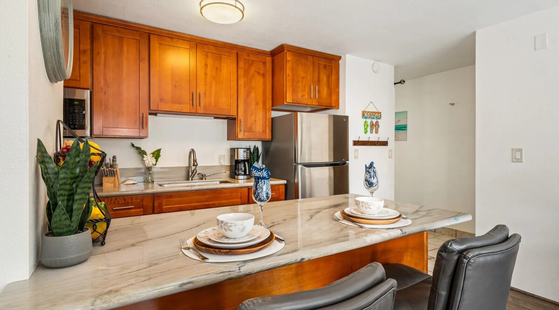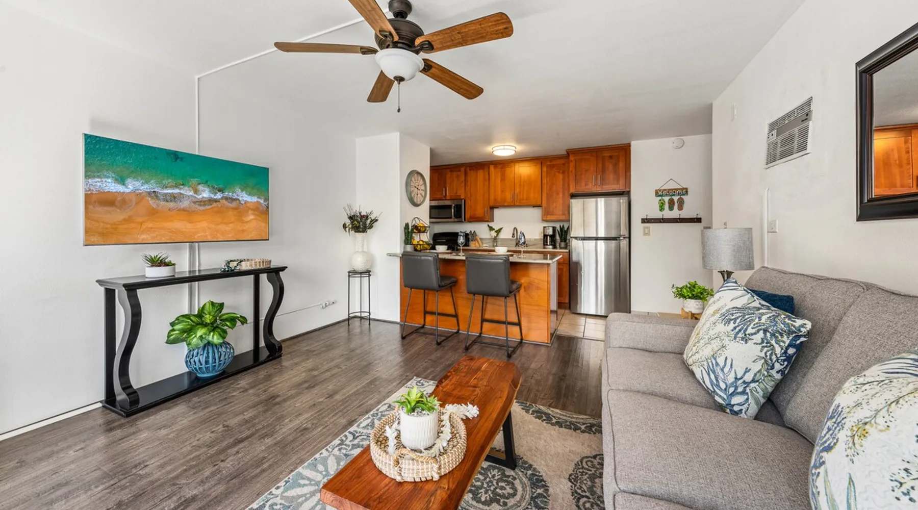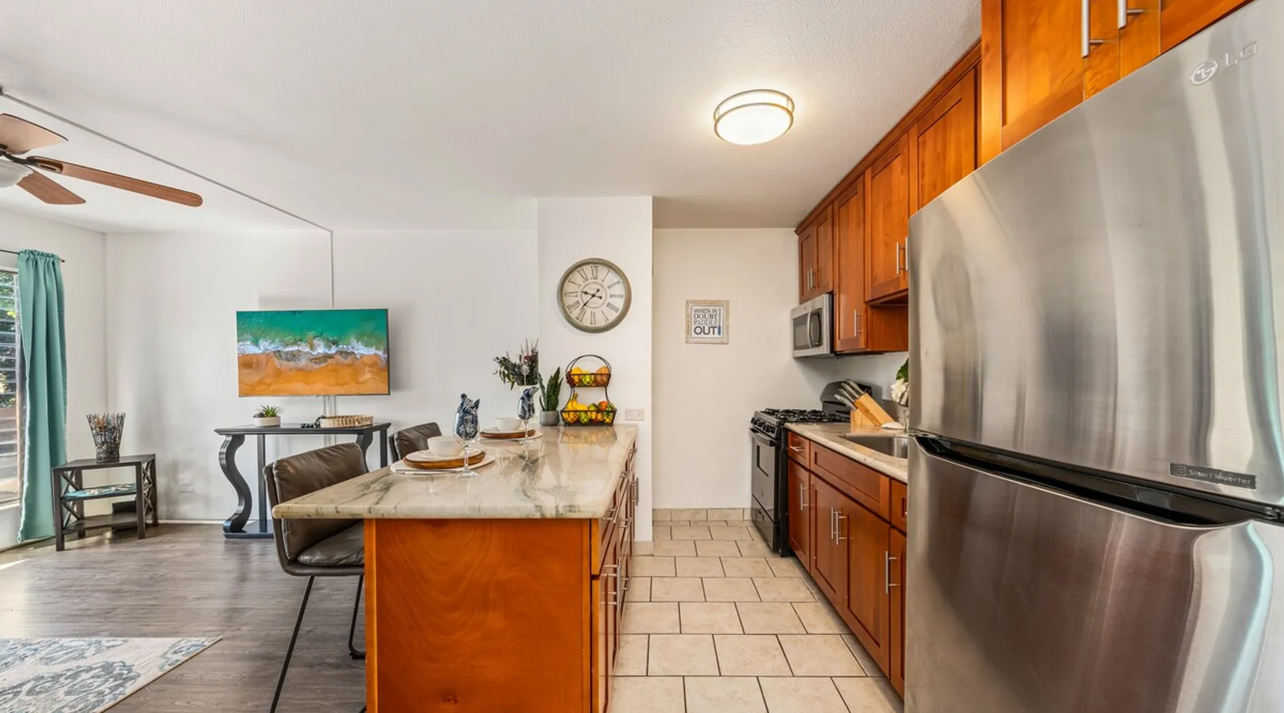 Kihei Villa 105 NEW LISTING Remodeled 1Bedroom Condo in South Maui. Short Walk to the Beach. Close to Restaurants, Shops, and Market. Quiet Maui Life Away From Tourist Crowds The space FREE daily activities included with your stay value up to $554! Complimentary admission, every day of your stay*: Whale Watching (seasonal), Sunset Dinner Cruise, Molokini Snorkel Trip, Alpaca Farm Tour, Pineapple Farm Tour, and Tea Farm Tour. (S1) *One ticket per activity per day. Additional details provided after confirmed booking. Spend your next Hawaiian getaway at this 1-bedroom, 1-bathroom ground floor apartment in the heart of Kihei. Remodeled, this cozy condo offers the perfect blend of comfort and convenience, making it an ideal choice for travelers looking to experience the beauty of Maui. Across the street from the Cove Park and a short walk to Charley Young Beach, you'll have easy access to the ocean, beginner surf spots, and away from the crowds. Inside, you'll find an open concept living area and a fully equipped kitchen, ready for preparing your meals after a day of adventures. The bedroom leads you out to a furnished lanai area, perfect for relaxing with your morning coffee while you prepare for the day. Kihei Villa 105 is ideally located for exploring all that Maui has to offer. Just a short drive or walk will take you to the many attractions, beaches, restaurants, and shops in Kihei and nearby Wailea. Condo Highlights: -1 Bedroom, 1 Bathroom, Sleeps 4 guests -Through wall AC unit in the living room and Split Zone AC unit in the bedroom. -Garden View lanai off the bedroom, furnished with table and seating for 4 -Queen size bed in the bedroom -Sleeper Sofa in the living room -Smart streaming TV in the living room -Fully equipped kitchen -No dishwasher -Kitchen bar seating for 2 -Full bathroom with tub/shower combo -In-unit washer/dryer -Onsite Parking Included Kihei Villa offers a convenient Hawaiian retreat in a prime South Maui location. Although on-site amenities are limited at this complex, Kihei Villa is ideally situated within walking distance to some of South Maui’s most popular beaches, including Charley Young Beach and Cove Park, known for its beginner-friendly surf breaks. The vibrant town of Kihei is minutes away, providing access to all the conveniences and attractions from beach parks to water sports activities, and a variety of dining, shopping, and entertainment options close by. Whether you're looking to explore the island or simply relax on the closest beach, Kihei Villa makes a great home base. Resort Highlights: •Free On-Site Parking •Convenient Kihei Location •Away from crowds •Across the street and close walking distance to Cove Beach Park and Charley Young Beach •No Resort Fees No Mail Allowed: We are unable to receive USPS mail, including letters and packages at this rental. For medical-related items, please contact our Reservations Team for assistance. Minimum age of primary renter: 25 We provide the following in every unit: -First Aid Kit -High Speed Internet -Linens and towels -Iron and ironing board -Hair dryer -Beach towels, Beach chairs, and Hard sided cooler -Starter Kit: Starter supply of shampoo, conditioner, body wash, lotion, hand soap, dish soap, laundry detergent, dishwasher tabs, toilet paper, paper towels, trash bags *We don’t provide beach umbrellas, toys, or gears, such as snorkeling, due to safety, health, and hygiene risks. BEACHES & CRITTERS: The beach size in Hawaii varies month to month due to weather, heavy surf, strong currents, and tides. Due to Maui’s rural setting, you may experience the occasional rooster, as well as harmless geckos. Geckos are friendly, eat insects, and are considered good luck in Hawaii. Please don’t kill them. Although the HOA schedules regular professional pest control services, pests such as ants, roaches and rodents simply cannot be completely controlled in the tropics. Maui is in a tropical climate. If our guest spot more than the normal expected pests, we always make our best efforts to contact and work with the HOA to minimize your interactions with these pests. Any contact with such pests within or outside the unit does not constitute a breach of this Agreement or give Guest any right to any refund or rental adjustment. **We make no guarantee that properties adjacent to the Unit will be free from disturbances, including but not limited to noise or inconvenience from construction, traffic or other guests or neighbors. Any such disturbance shall not constitute a breach of this Agreement or give Guest any right to any refund or rental adjustment. By booking your stay with us, you accept that Host is not liable for any inconveniences arising from any temporary defect or stoppage in supply of water, electricity, air conditioning or plumbing that is beyond their control. Host is not liable for any loss or damage to Tenants’ personal property caused by weather conditions, natural disasters, or other events beyond their control. Tenants accept that the cable and internet service at the Rental can be sporadic and unreliable at times, and Tenant shall not be entitled to any refund of the rental fee in the event either of these services are unavailable or not operating properly during Tenants’ stay. Registration Details 390160200005, TA-165-193-4720-01