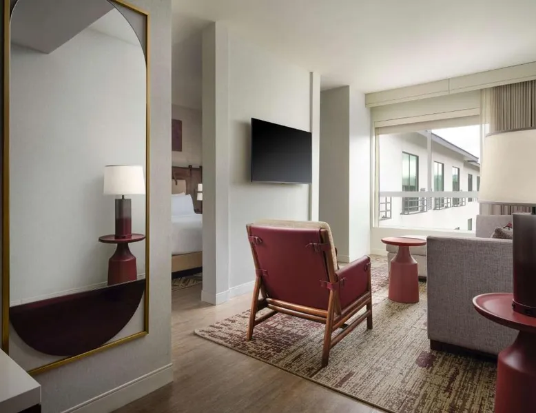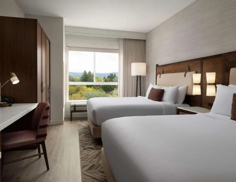 Comfortable Accommodations: The Knoll Hotel Napa Valley, Tapestry Collection by Hilton in Napa offers air-conditioned rooms with free WiFi, streaming services, and modern amenities. Each room includes a work desk, refrigerator, and TV. Dining and Leisure: Guests can enjoy an on-site restaurant serving American cuisine with vegetarian and gluten-free options. The family-friendly restaurant offers dinner in a traditional ambiance. Additional facilities include a fitness center, bar, and outdoor seating area. Convenient Location: Located 29 mi from Buchanan Field Airport, the hotel is near Napa Valley Wine Train (1.6 mi), Napa Valley Opera House (1.3 mi), and Sonoma State Historic Park (15 mi). Guests appreciate the convenient location, bar, and attentive staff. The quadruple room offers air conditioning, a tea and coffee maker, a safe deposit box, heating and a flat-screen TV with streaming services. The unit offers 2 beds.