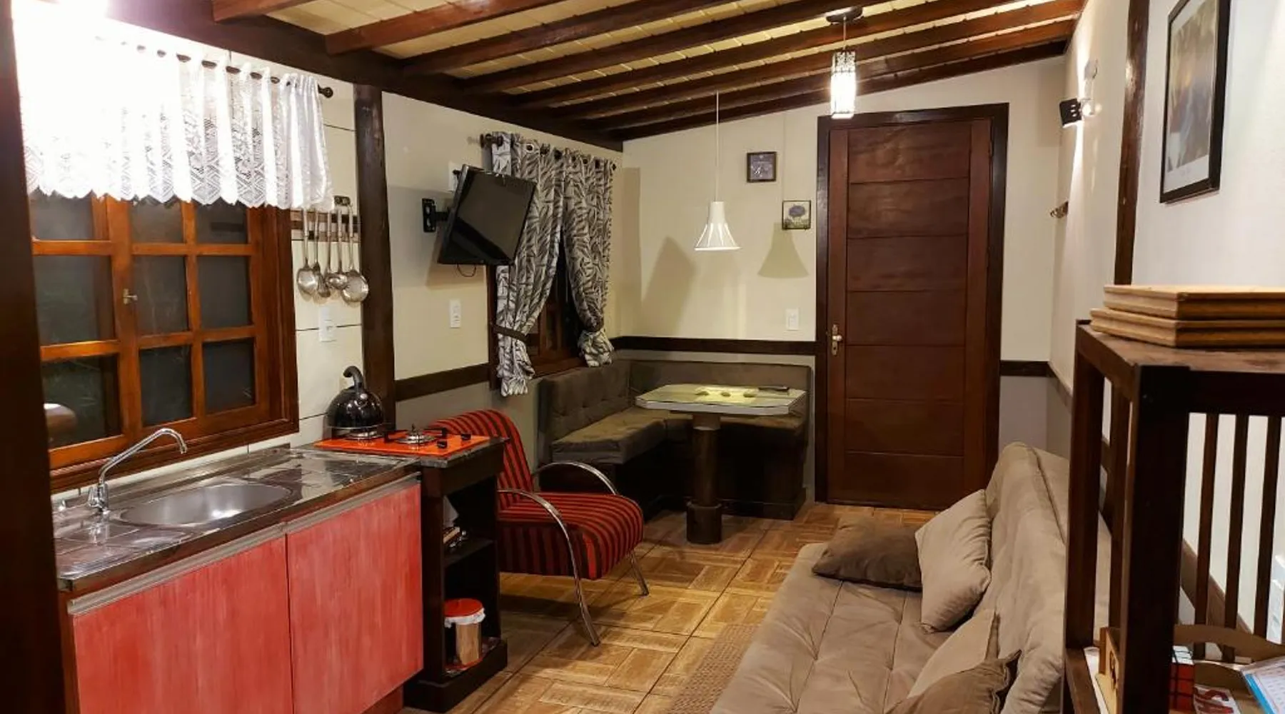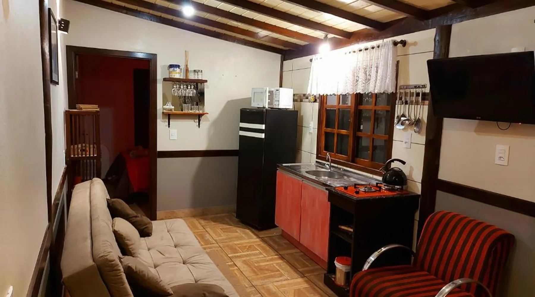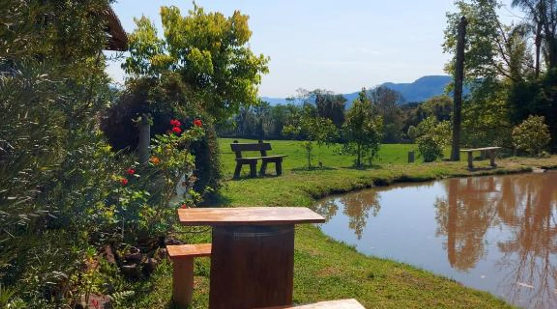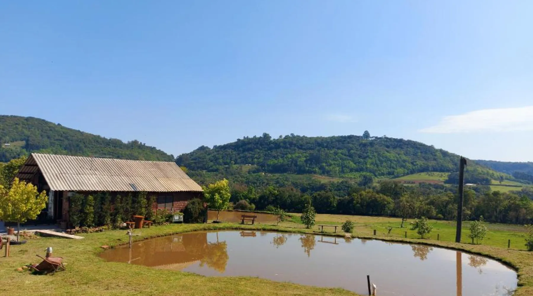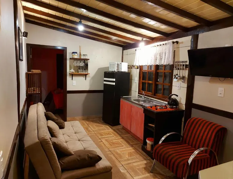 Comfortable Accommodations: Recanto Pôr do Sol in Nova Petrópolis offers a recently renovated apartment with a sun terrace, garden, and free WiFi. Guests enjoy air-conditioning, a kitchenette, balcony, and private bathroom. Exceptional Facilities: The property features a 24-hour front desk, housekeeping service, grocery delivery, outdoor seating area, picnic area, family rooms, full-day security, breakfast in the room, room service, and barbecue facilities. Prime Location: Located 19 mi from Canela Airport, the apartment is near attractions such as Imigrant Valley Park (6.8 mi), Malakoff Mount (3.1 mi), and Gramado Bus Station (14 mi). Guests appreciate the host, room cleanliness, and attentive staff. Featuring a private entrance, this air-conditioned chalet consists of 1 living room, 2 separate bedrooms and 1 bathroom with a shower and a bidet. Guests will find a stovetop, a refrigerator, kitchenware and a microwave in the fully equipped kitchen. The chalet also provides guests with a barbecue. Boasting a terrace with lake views, this chalet also provides soundproof walls and a flat-screen TV with streaming services. The unit offers 3 beds.
