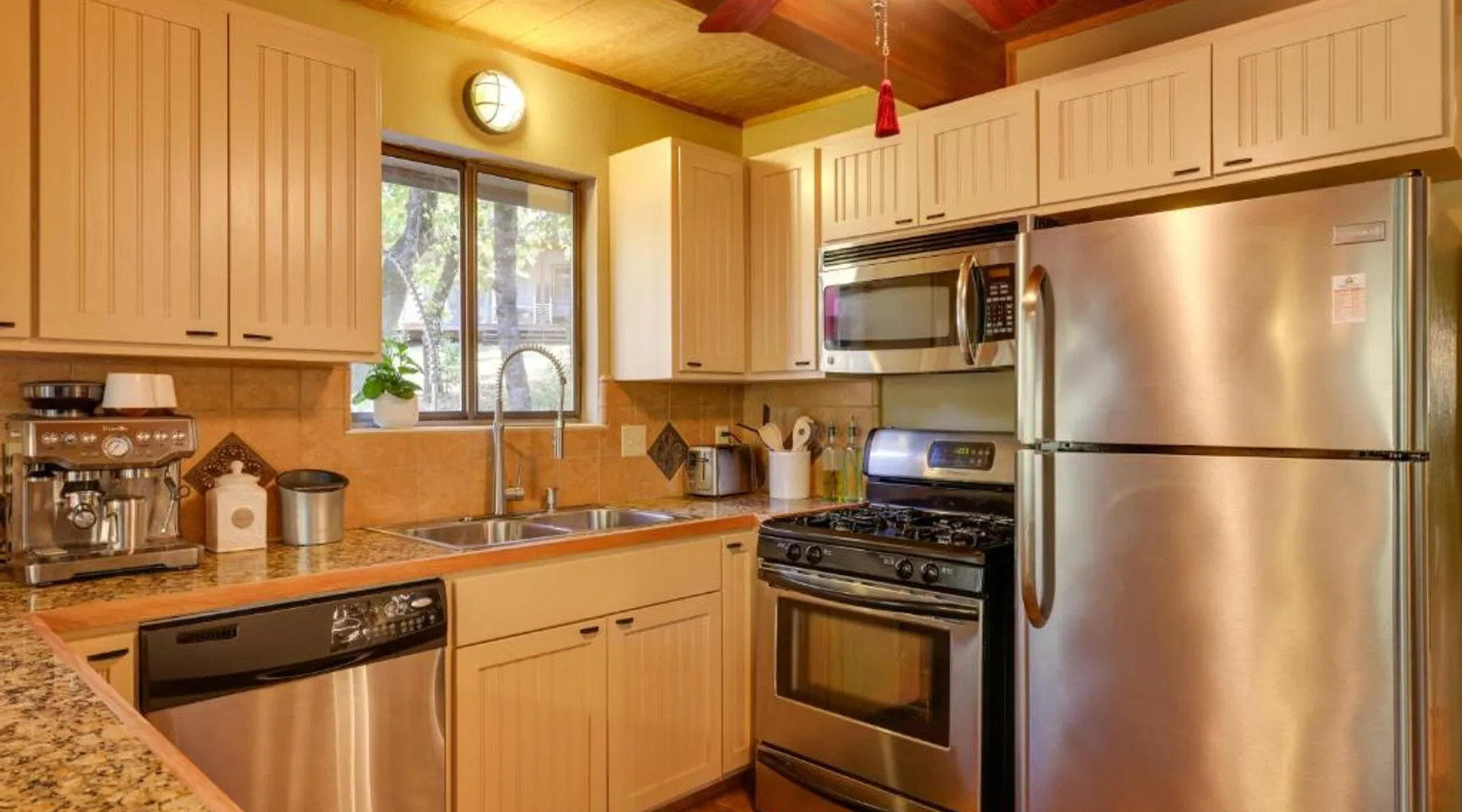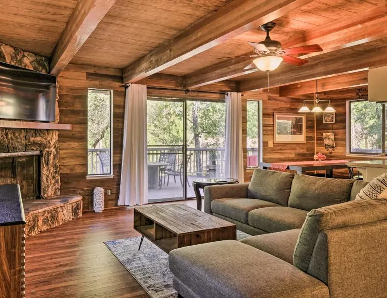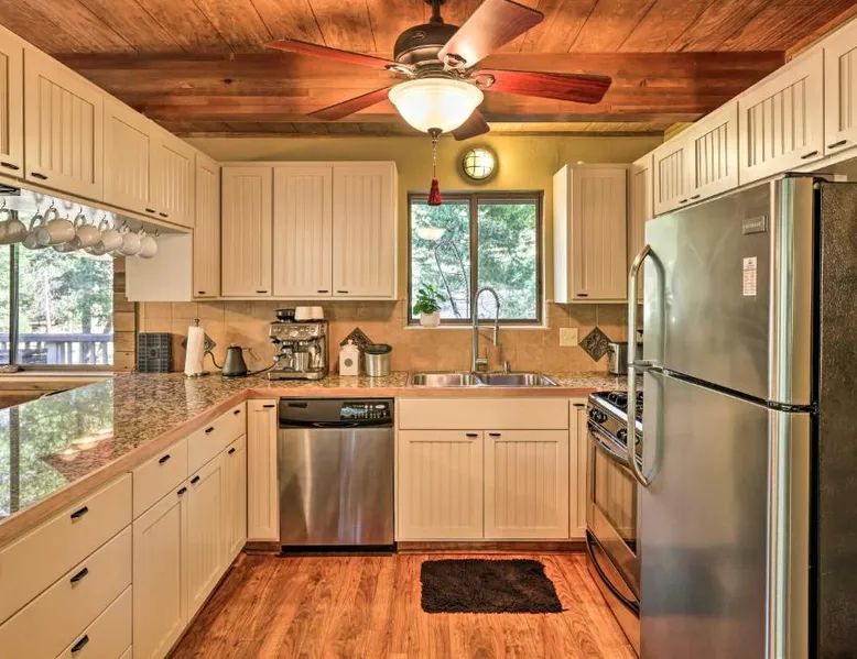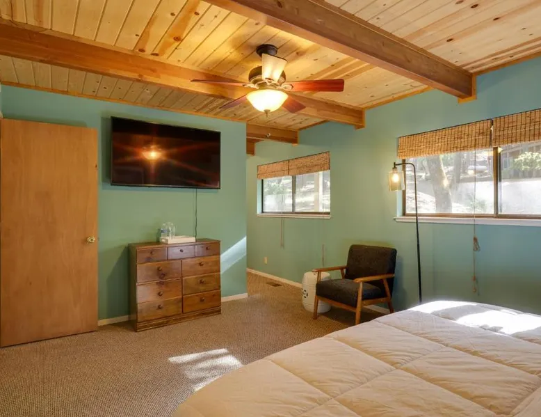 Spacious Accommodations: Spacious Groveland Cabin with Wraparound Deck! in Groveland offers three bedrooms and two bathrooms. Guests enjoy a spacious layout with a private entrance. Modern Amenities: The holiday home features free WiFi, air-conditioning, a washing machine, and a fully equipped kitchen with a dishwasher, microwave, and oven. Additional amenities include a work desk, TV, and free toiletries. Convenient Location: Located 62 mi from Merced Municipal Airport and 25 mi from Yosemite Big Oak Flat Entrance, the property provides easy access to local attractions. Guest Satisfaction: Highly rated by guests for its room comfort, fully equipped kitchen, and convenient location. Featuring a private entrance, this spacious holiday home also consists of 3 separate bedrooms and 2 bathrooms with a bath and a shower. In the well-fitted kitchen, guests will find a stovetop, a refrigerator, a dishwasher and kitchenware. The holiday home provides air conditioning, a washing machine, a tea and coffee maker, tumble dryer, as well as a flat-screen TV with cable channels. The unit offers 4 beds.