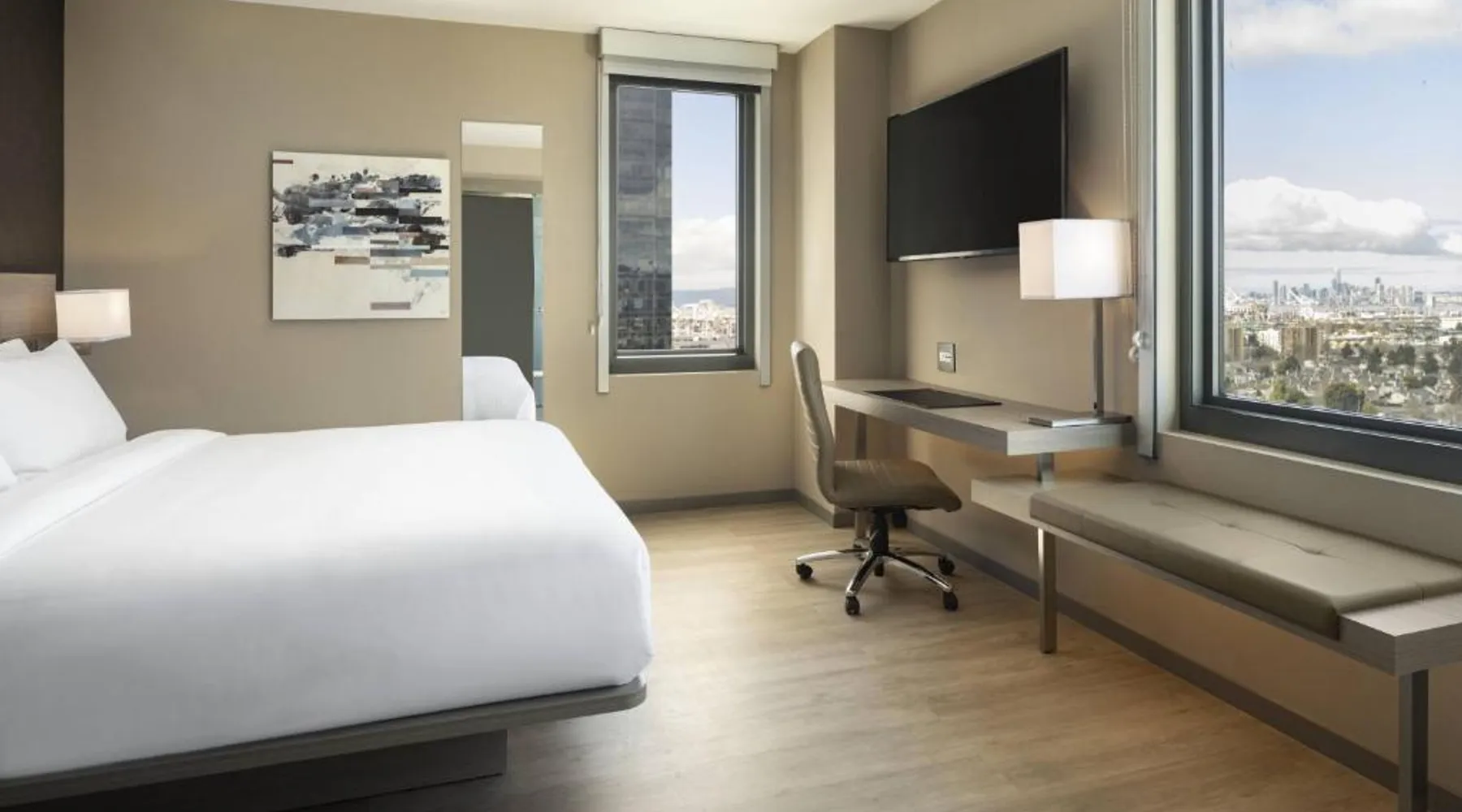 Comfortable Accommodations: Rooms feature air-conditioning, private bathrooms, tea and coffee makers, hairdryers, and free toiletries. Additional amenities include work desks, seating areas, and parquet floors. Dining and Leisure: The modern, family-friendly restaurant serves Spanish cuisine for dinner. Guests can also enjoy a bar and free WiFi. A fitness center and lounge provide leisure options. Convenient Location: Located in Oakland, the hotel is 6.8 mi from San Francisco Bay Oakland International Airport. Nearby attractions include Fox Theater Oakland (6-minute walk), Oakland Convention Center (2297 feet), and Oakland Museum of California (1.1 mi). Boating is available in the surroundings. Guest Satisfaction: Highly rated for room cleanliness, convenient location, and attentive staff. Offering free toiletries, this double room includes a private bathroom with a bath or a shower and a hairdryer. The spacious double room offers air conditioning, a tea and coffee maker, a seating area, a safe deposit box, as well as a flat-screen TV with cable channels. The unit offers 2 beds.
