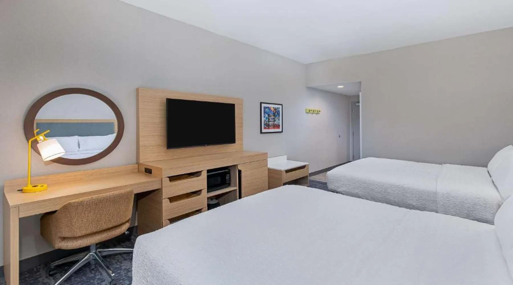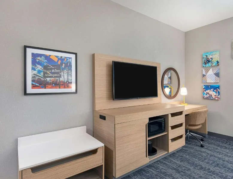 Comfortable Accommodations: Hampton Inn Albertville in Albertville offers air-conditioned rooms with tea and coffee makers, hairdryers, refrigerators, work desks, free toiletries, microwaves, and TVs. Convenient Amenities: Guests enjoy showers, interconnected rooms, and complimentary breakfast provided by the property. Exceptional Service: Highly rated for its attentive staff and excellent service support, room cleanliness, and breakfast offerings. Accessible Location: Located 61 mi from Huntsville International Airport, the hotel provides easy access to local attractions. The quadruple room features air conditioning, a tea and coffee maker, heating, as well as a TV. The unit has 2 beds.