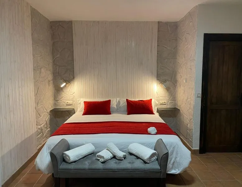 Comfortable Accommodations: Turismo Rural & SPA El Cercado in Bérchules offers family rooms with private bathrooms, mountain views, and modern amenities. Each room includes air-conditioning, a TV, and a private entrance. Exceptional Facilities: Guests enjoy a sun terrace, garden, seasonal outdoor swimming pool, and free WiFi. Additional amenities include a hot tub, spa bath, and outdoor seating area. Dining Experience: The family-friendly restaurant serves Mediterranean, Spanish, local, and barbecue grill cuisines in a traditional and romantic ambiance. Breakfast is continental. Leisure Activities: The hotel offers hiking, a children's playground, and a tour desk. Free on-site private parking is available. Guest Services: Highly rated for its spa, restaurant, and attentive staff, the property provides wellness packages, a paid airport shuttle, and a tour desk. The private pool is a top feature of this double room. This double room is consisted of of a flat-screen TV with streaming services, a private bathroom as well as a terrace with mountain views. The unit has 1 bed.