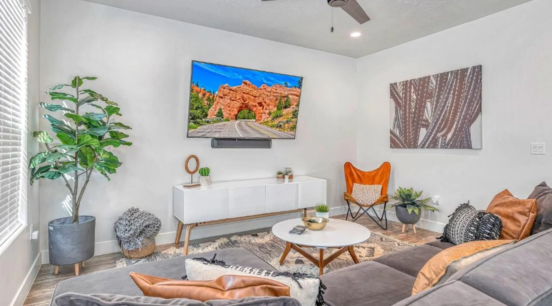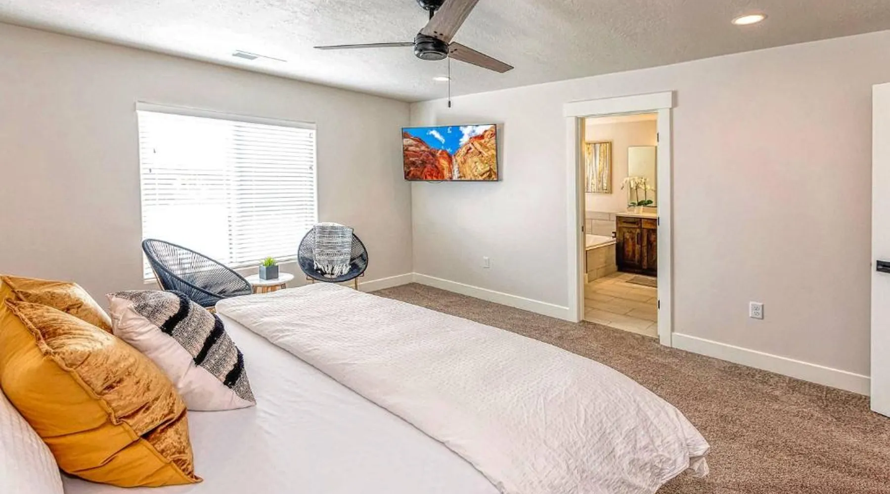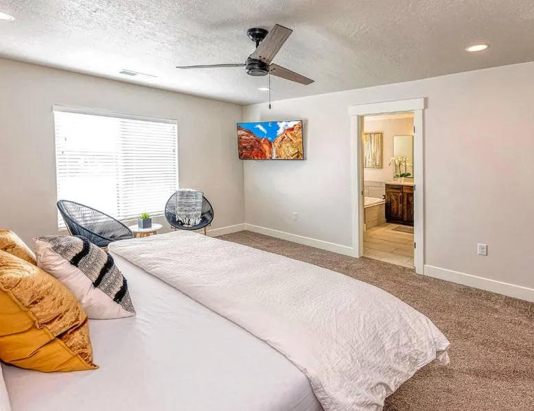 Spacious Holiday Home in Washington: Southern Retreat offers a spacious holiday home in Washington, featuring three bedrooms and three bathrooms. The property includes a terrace and a year-round outdoor swimming pool, complemented by free WiFi. Modern Amenities and Comfort: Guests enjoy air-conditioning, a hot tub, and a heated pool. The home is equipped with a fully fitted kitchen, washing machine, and streaming services. Additional amenities include a fireplace, barbecue, and outdoor dining area. Convenient Location: Located 11 mi from St. George Regional Airport, the property is close to attractions such as St George Temple (7.5 mi) and Pine Valley Chapel (3.7 mi). Free on-site private parking is available. Highly rated by guests. This holiday home features a hot tub and a fireplace. Featuring a private entrance, this air-conditioned holiday home consists of 1 living room, 3 separate bedrooms and 3 bathrooms with a bath and a shower. Guests will find a stovetop, a refrigerator, a dishwasher and kitchenware in the well-fitted kitchen. The holiday home also provides guests with a barbecue. The spacious holiday home provides a washing machine, a tea and coffee maker, a seating area, a dining area and a flat-screen TV with streaming services. The unit offers 4 beds.