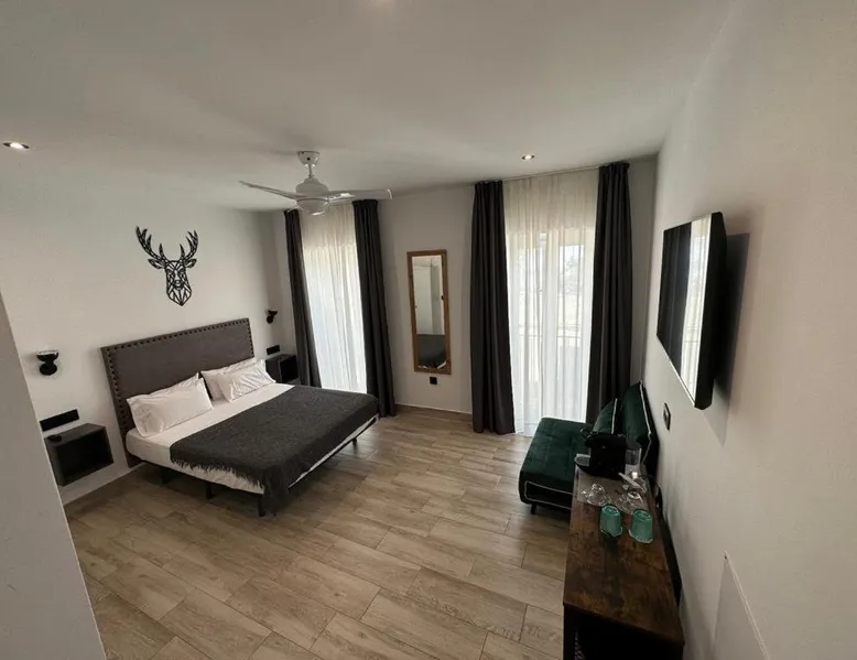 Comfortable Accommodations: La Posada del Teatro H Boutique Parking Gratis in Mérida offers family rooms with private bathrooms, air-conditioning, and free WiFi. Each room includes a tea and coffee maker, walk-in shower, and work desk. Convenient Facilities: Guests benefit from free private parking, a elevator, and housekeeping service. Additional amenities include a balcony, patio, outdoor furniture, and a sofa bed. Prime Location: Located 29 mi from Badajoz Airport, the guest house is a short walk from the National Museum of Roman Art and Roman Theater & Amphitheater. Nearby attractions include the Basilica of Saint Eulalia and Casa de Mitreo. Guest Satisfaction: Highly rated for room cleanliness, convenient location, and comfort, La Posada del Teatro H Boutique Parking Gratis ensures a pleasant stay. The double room provides air conditioning, a mini-bar, as well as a private bathroom featuring a walk-in shower and a hairdryer. The double room offers a tea and coffee maker, a tiled floor, heating, a flat-screen TV, as well as a quiet street view. The unit offers 1 bed.