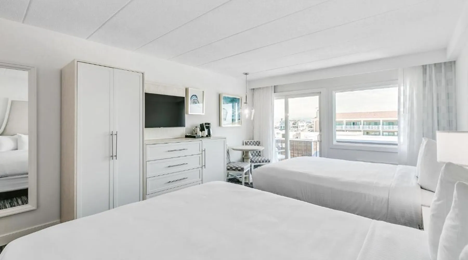 Beachfront Location: ICONA Windrift in Avalon offers direct beachfront access with stunning sea views. Guests can relax on the sand or enjoy the seasonal outdoor swimming pool. Dining and Leisure: The family-friendly restaurant serves American cuisine with vegetarian and gluten-free options. The bar provides a variety of cocktails, while the pool bar offers refreshing drinks. Evening entertainment includes live music and a nightclub. Comfortable Accommodations: Rooms feature air-conditioning, balconies, and private bathrooms with free toiletries. Additional amenities include sea views, kitchenettes, and free on-site private parking. Nearby Attractions: Avalon Beach is just a few steps away, while Wildwood Boardwalk is 8.1 mi distant. Atlantic City International Airport is 33 mi from the hotel. Featuring free toiletries and bathrobes, this double room includes a private bathroom with a shower and a hairdryer. The spacious double room features air conditioning, a coffee machine, a wardrobe, a safe deposit box and a flat-screen TV with cable channels. The unit has 2 beds.