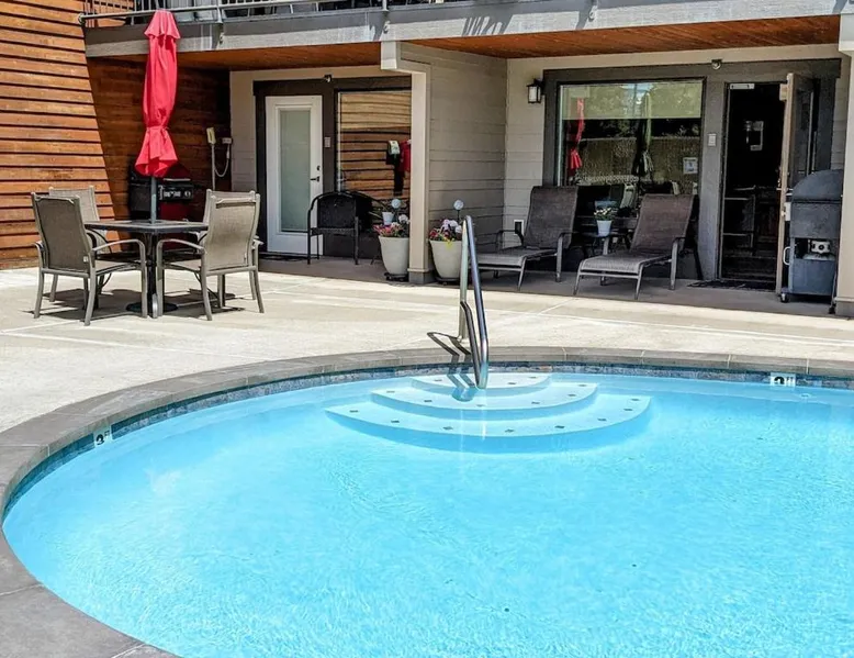 Comfortable Accommodations: Driftin' Cabanas in Chelan offers family rooms with private bathrooms, air-conditioning, and modern amenities. Each unit includes a fully equipped kitchen, balcony with lake views, and free WiFi. Leisure Facilities: Guests can enjoy a seasonal outdoor swimming pool with a view, outdoor seating area, and barbecue facilities. Additional amenities include streaming services, a washing machine, and free on-site private parking. Prime Location: Located less than 0.6 mi from Chelan Modern and 45 mi from Pangborn Memorial Airport, the aparthotel is near attractions such as Slidewaters (2 mi) and Lake Entiat (5 mi). Highly rated for its convenient location and room cleanliness. This apartment's standout feature is the pool with a view. This spacious apartment includes 1 living room, 2 separate bedrooms and 2 bathrooms with a bath and free toiletries. Guests will find a stovetop, a refrigerator, a dishwasher and kitchenware in the kitchen. The apartment also features a barbecue. The air-conditioned apartment offers a flat-screen TV with streaming services, a washing machine, a tea and coffee maker, a dining area as well as lake views. The unit has 5 beds.