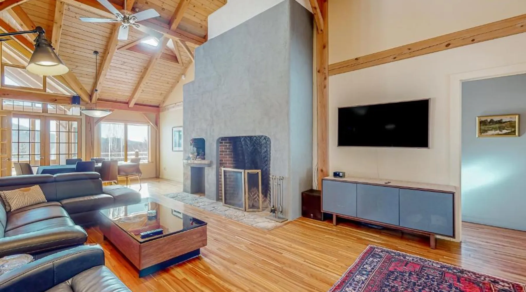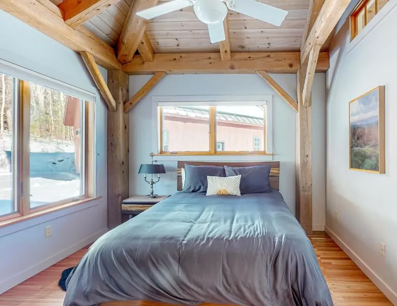 Spacious Accommodations: Solare in Jericho offers a spacious holiday home with four bedrooms and three bathrooms. The property features a terrace, balcony, and a spa bath. Exceptional Facilities: Guests can enjoy an outdoor fireplace, outdoor seating area, and a games room. The fully equipped kitchen includes a dishwasher, microwave, and oven. Convenient Location: Located 16 mi from Burlington International Airport, Solare is near attractions such as the University of Vermont (19 mi) and Mount Mansfield (25 mi). Activities include skiing and cycling. Boasting a private entrance, this spacious holiday home also features 4 bedrooms, a seating area and 3 bathrooms with a walk-in shower and a bath. Guests can make meals in the kitchen that has a stovetop, a refrigerator, a dishwasher and kitchenware. Featuring a terrace with mountain views, this holiday home also features a washing machine and a TV. The unit has 4 beds.