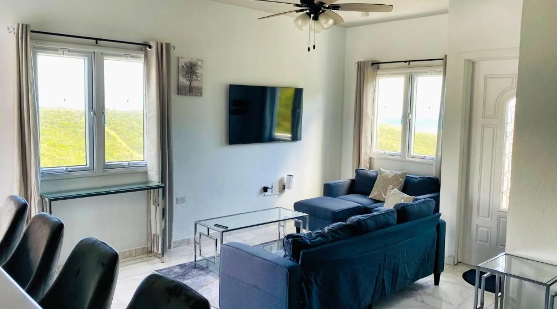 Elegant Accommodations: Sea-Renity in Oyster Pond offers a comfortable apartment with a swimming pool, garden, terrace, and free WiFi. Guests can relax in the outdoor seating area or enjoy the balcony with stunning sea views. Modern Amenities: The apartment features air-conditioning, a fully equipped kitchen, and a private bathroom. Additional amenities include a washing machine, streaming services, and a work desk. Free on-site private parking is available. Prime Location: Located 5.6 mi from Grand Case-Espérance Airport, Sea-Renity is a short walk from Dawn Beach and 1.2 mi from Coralita Beach. The surrounding area offers scenic views and a peaceful environment. This apartment provides a pool with a view. Featuring a private entrance, this air-conditioned apartment is consisted of of 1 living room, 1 separate bedroom and 1 bathroom with a shower and a hairdryer. Guests will find a stovetop, a refrigerator, kitchenware and an oven in the well-equipped kitchen. The apartment also has a barbecue. Boasting a terrace with sea views, this apartment also offers a washing machine and a flat-screen TV with streaming services. The unit offers 1 bed.