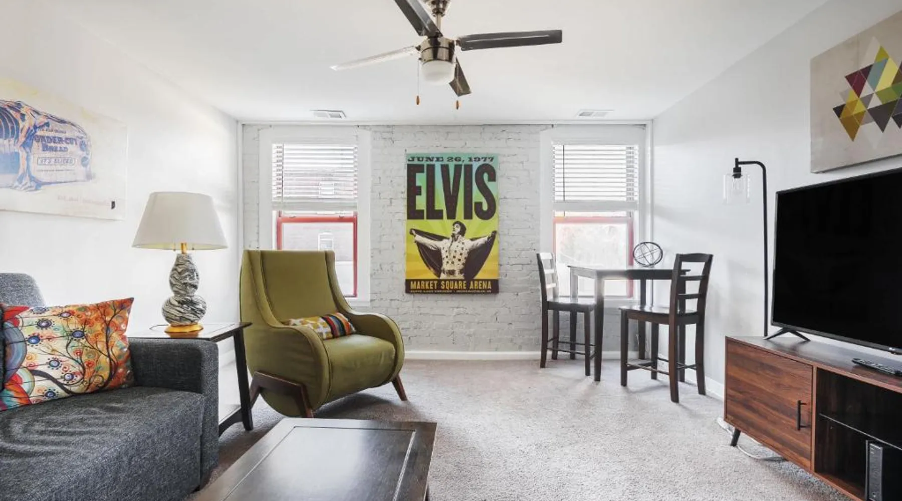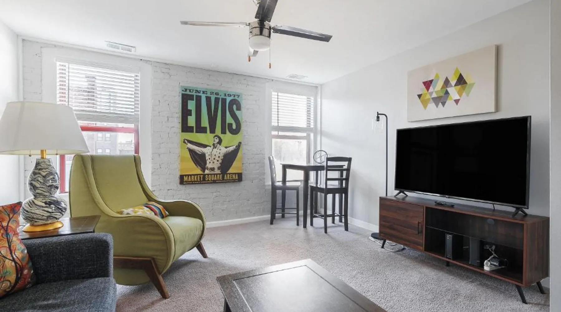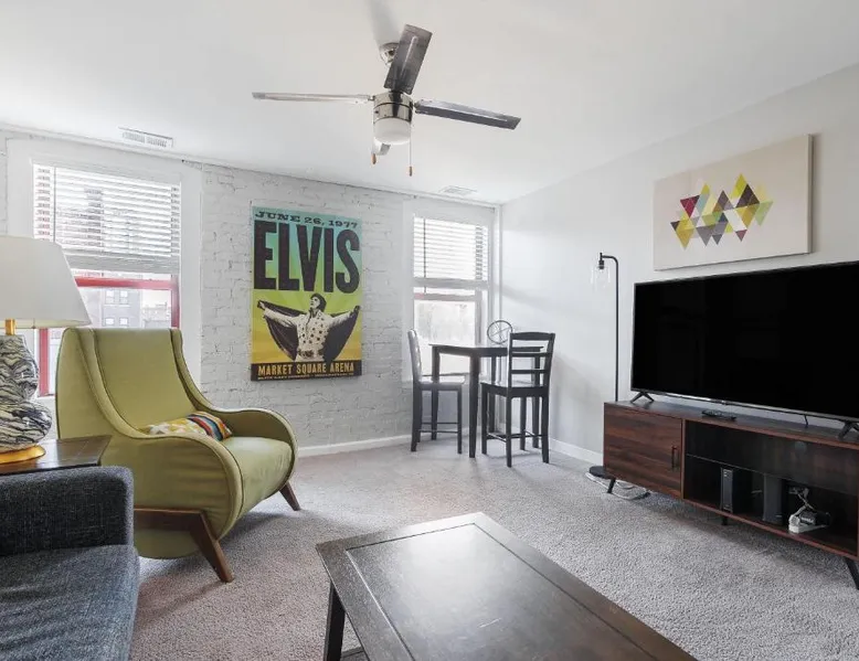 Spacious Accommodations: Spacious 2BR Apt on Mass Ave w Kitchen in Indianapolis offers a spacious apartment with two bedrooms and a living room. Guests enjoy a fully equipped kitchen, air-conditioning, and free WiFi. Modern Amenities: The apartment includes a washing machine, streaming services, and a dishwasher. Additional features include a dining table, refrigerator, microwave, and TV. Free toiletries and a hairdryer are also available. Prime Location: Located 9.3 mi from Indianapolis International Airport, the property is a short walk from Murat - Egyptian Room (4 minutes) and Hilbert Circle Theater (0.8 mi). Nearby attractions include Lucas Oil Stadium (1.7 mi) and Indianapolis Motor Speedway (6.2 mi). Guest Satisfaction: Highly rated by guests, the apartment provides a comfortable and convenient stay. This spacious apartment is consisted of of 1 living room, 2 separate bedrooms and 1 bathroom with a bath and free toiletries. The well-fitted kitchen features a stovetop, a refrigerator, a dishwasher and kitchenware. The air-conditioned apartment offers a TV with streaming services, a washing machine, a private entrance, a tea and coffee maker as well as city views. The unit offers 3 beds.