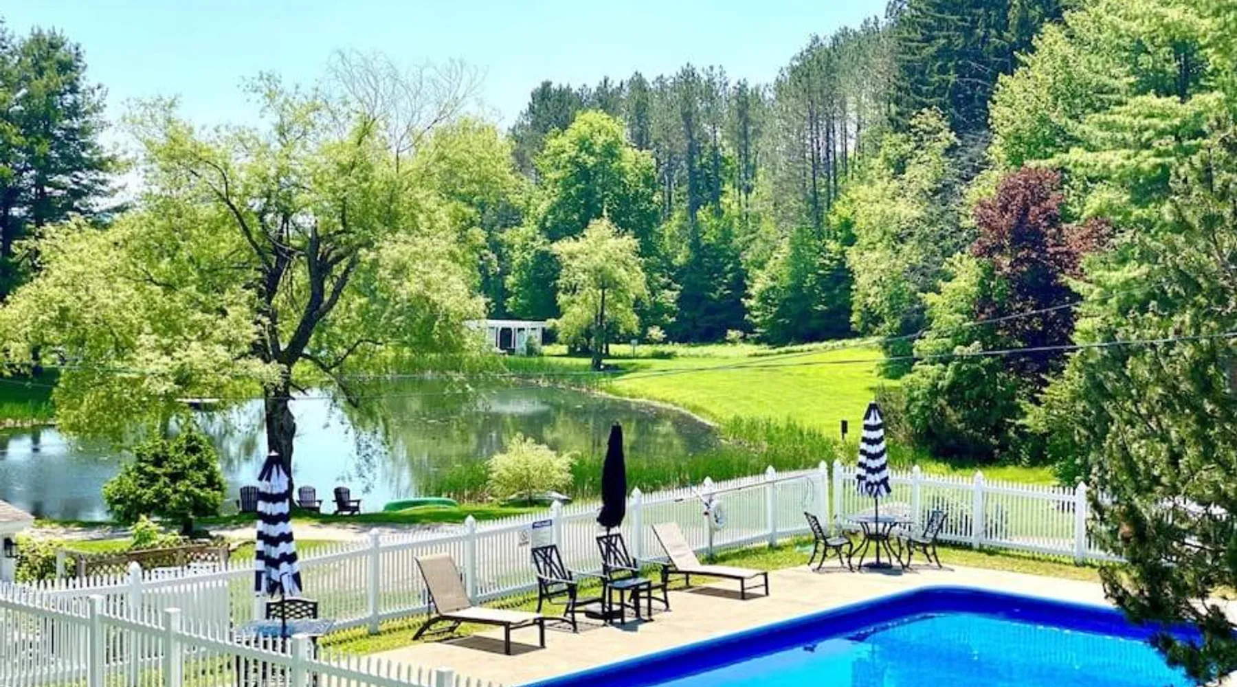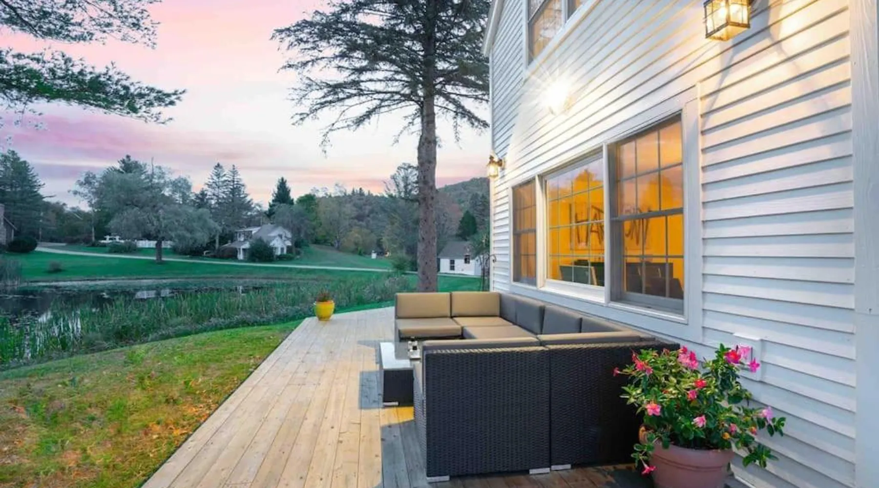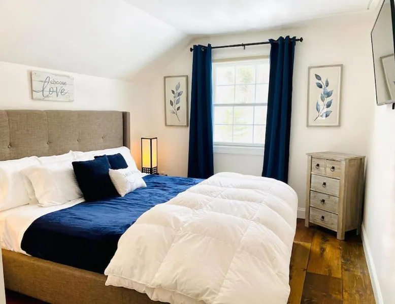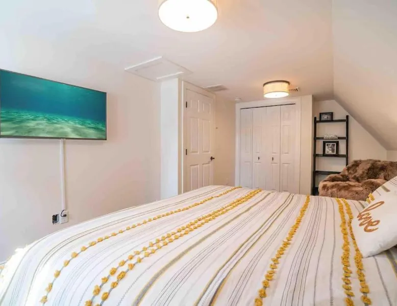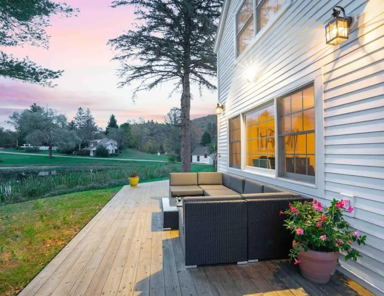 Spacious Accommodations: The Villa in Dover offers a spacious holiday home with four bedrooms and three bathrooms. The property includes a living room and a fully equipped kitchen. Outdoor Amenities: Guests can enjoy a garden, outdoor swimming pool, and a hot tub. Free WiFi is available throughout the property. Convenient Facilities: The Villa features air-conditioning, a washing machine, and a fireplace. Additional amenities include a patio, dishwasher, and a private entrance. Local Attractions: Mount Snow Resort is 2 mi away, while Molly Stark State Park lies 9.3 mi from the property. Stratton Mountain is 19 mi distant, and Bennington Battle Monument is 28 mi away. This apartment's standout features are the hot tub and fireplace. Featuring a private entrance, this air-conditioned apartment consists of 1 living room, 4 separate bedrooms and 3 bathrooms with a bath and a hairdryer. The fully equipped kitchen features a stovetop, a refrigerator, a dishwasher and kitchenware. The spacious apartment provides a washing machine, a tea and coffee maker, tumble dryer, a TV, as well as lake views. The unit offers 7 beds and 1 futon.