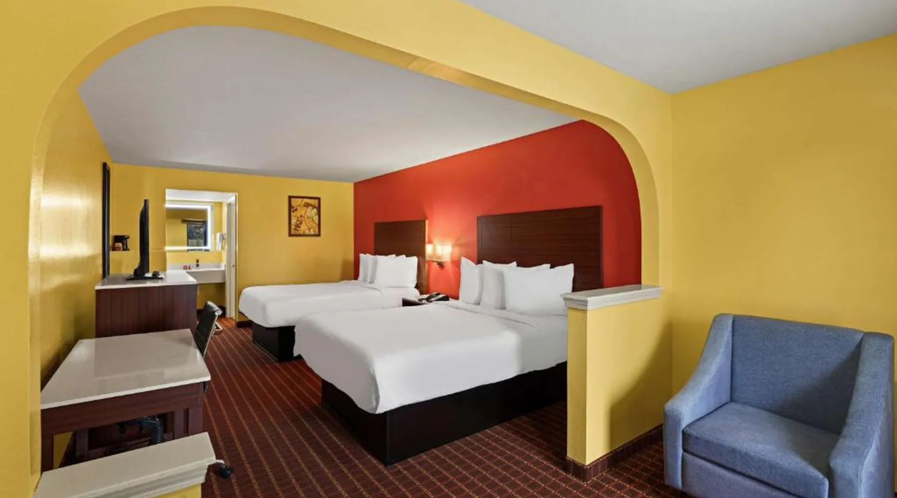 Comfortable Accommodations: SureStay by Best Western Gulfport in Gulfport offers air-conditioned rooms with private bathrooms, tea and coffee makers, and free WiFi. Each room includes a work desk, TV, and free toiletries. Convenient Facilities: Guests benefit from a 24-hour front desk, room service, and free private parking. Additional amenities include a hot tub, ground-floor units, and sofa beds. Prime Location: Located 3.7 mi from Gulfport-Biloxi International Airport, the hotel is near attractions such as Gulf Islands Waterpark (1.9 mi) and West Side Park And Splash Pad (6.8 mi). Guests appreciate the value for money, room cleanliness, and convenient location. The quadruple room provides air conditioning, a tea and coffee maker and a safe deposit box. The unit offers 2 beds.