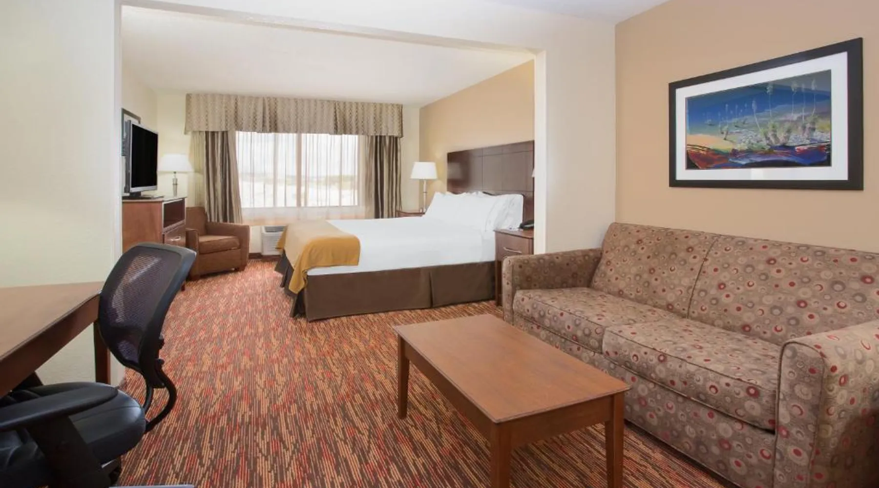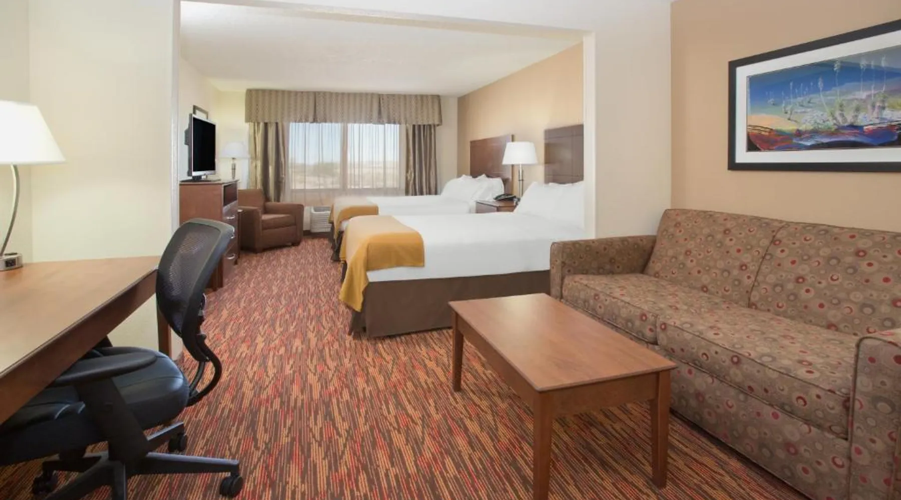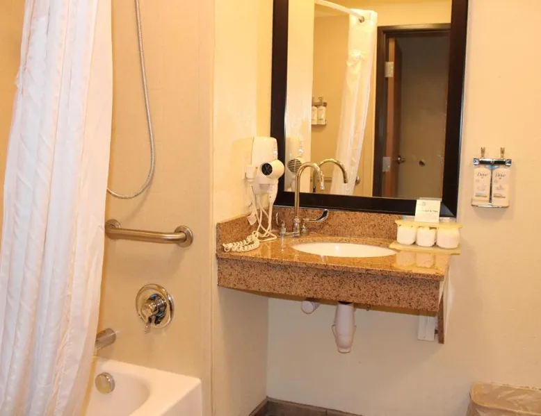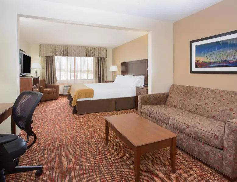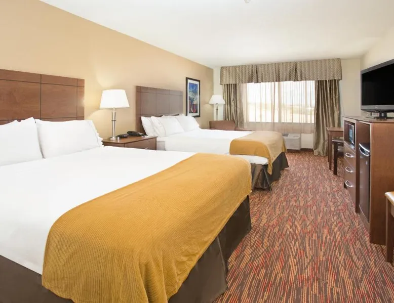 Comfortable Accommodations: Holiday Inn Express & Suites Truth Or Consequences by IHG in Truth or Consequences offers family rooms with air-conditioning, private bathrooms, and free WiFi. Each room includes a work desk, seating area, and TV. Leisure Facilities: Guests can enjoy a fitness center, indoor swimming pool, and hot tub. Additional amenities include a lounge, fitness room, and 24-hour front desk. Free on-site private parking is available. Dining Options: A buffet breakfast with American and vegetarian options is served daily. Breakfast includes warm dishes, fresh pastries, pancakes, fruits, and juice. Location and Services: Located 92 mi from Grant County Airport, the hotel provides a business area, daily housekeeping, and a minimarket. Highly rated for breakfast, room cleanliness, and comfort. The spacious double room has a private bathroom, air conditioning, a tea and coffee maker, as well as a seating area with a flat-screen TV. This double room features a carpeted floor, heating and a TV with cable channels. The unit has 1 bed.
