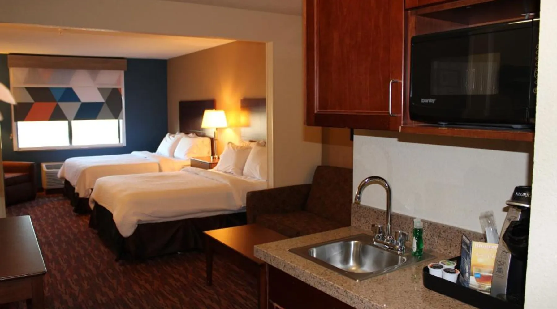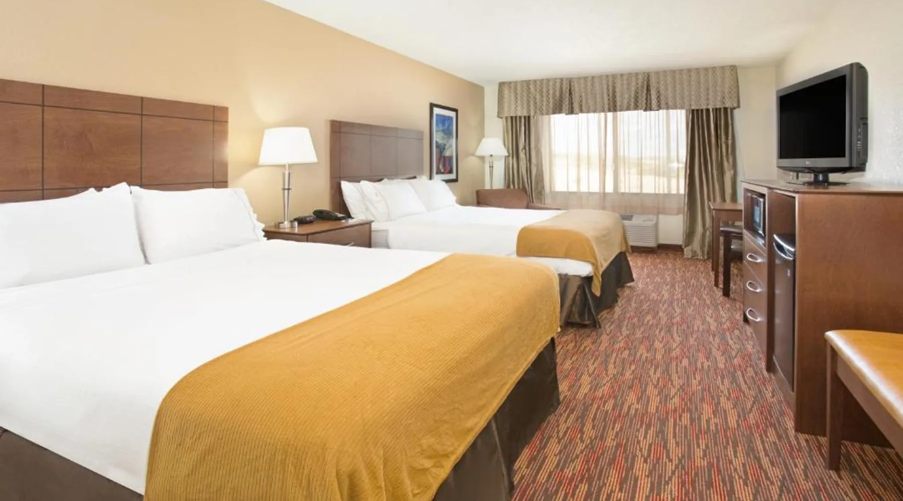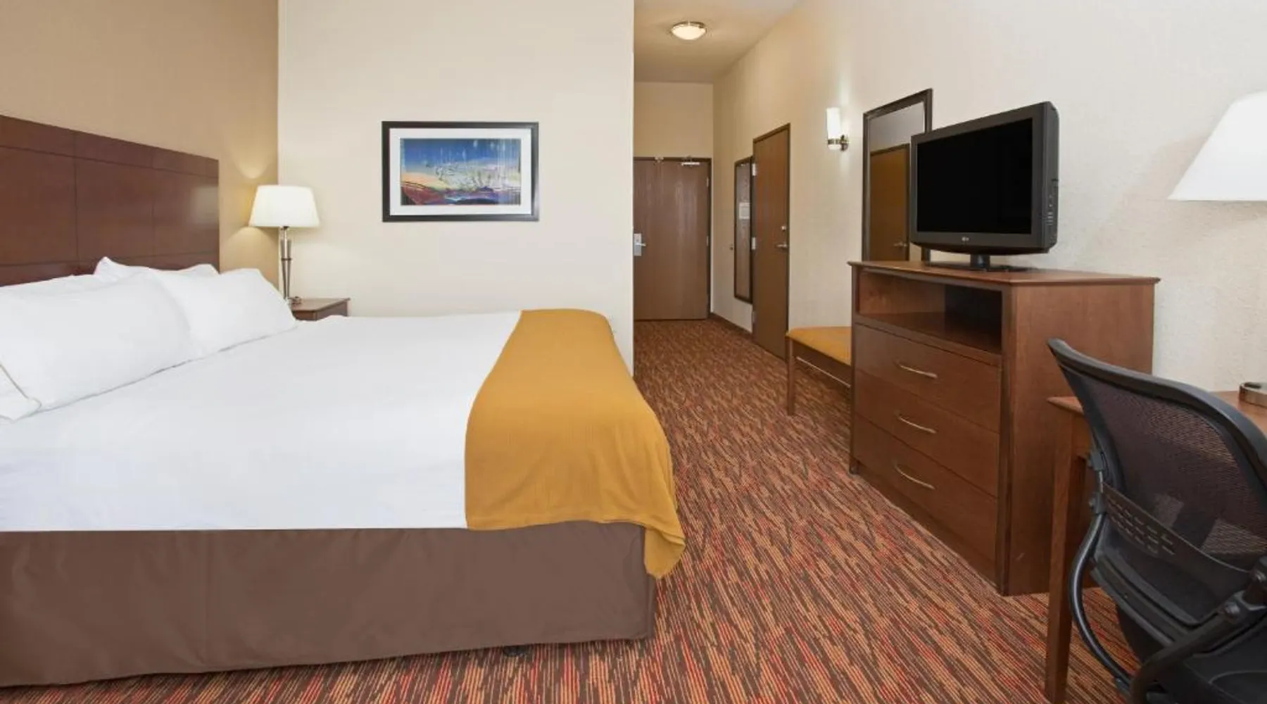 Comfortable Accommodations: Holiday Inn Express & Suites Truth Or Consequences by IHG in Truth or Consequences offers family rooms with air-conditioning, private bathrooms, and free WiFi. Each room includes a work desk, seating area, and TV. Leisure Facilities: Guests can enjoy a fitness center, indoor swimming pool, and hot tub. Additional amenities include a lounge, fitness room, and 24-hour front desk. Free on-site private parking is available. Dining Options: A buffet breakfast with American and vegetarian options is served daily. Breakfast includes warm dishes, fresh pastries, pancakes, fruits, and juice. Location and Services: Located 92 mi from Grant County Airport, the hotel provides a business area, daily housekeeping, and a minimarket. Highly rated for breakfast, room cleanliness, and comfort. The spacious double room has a private bathroom, air conditioning, a tea and coffee maker, as well as a seating area with a flat-screen TV. This double room features a carpeted floor, heating and a TV with cable channels. The unit has 1 bed.
