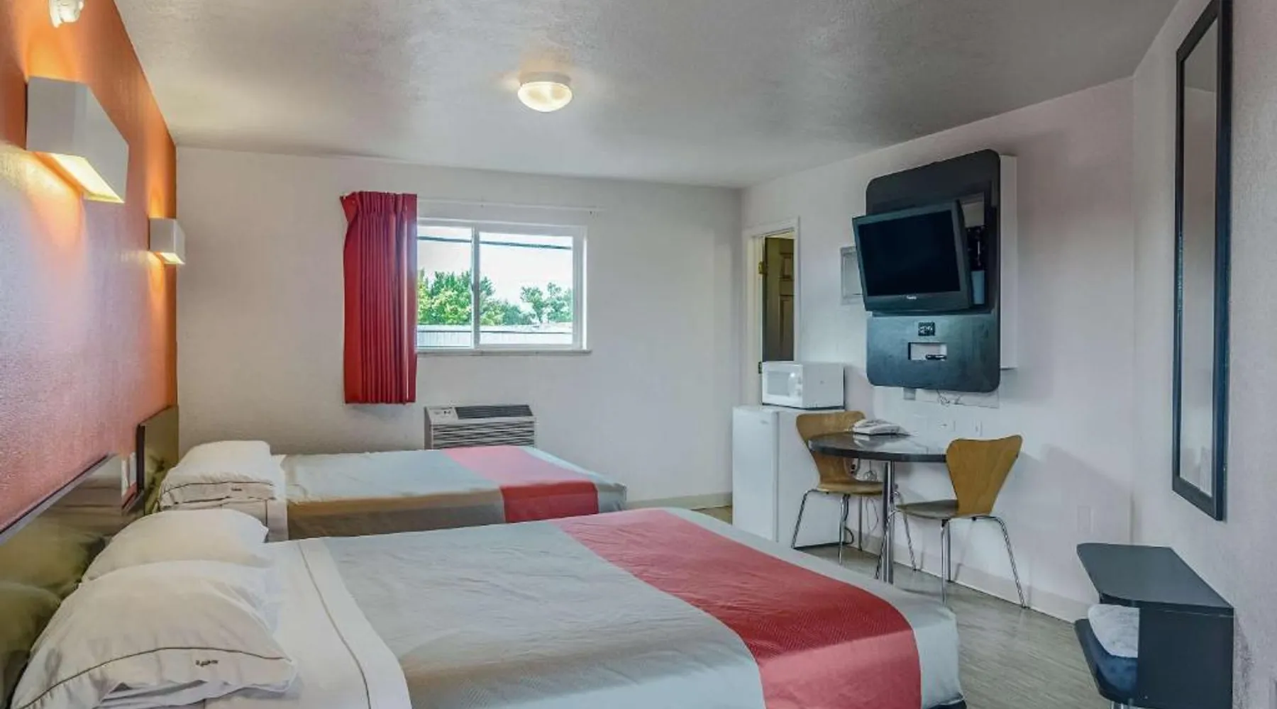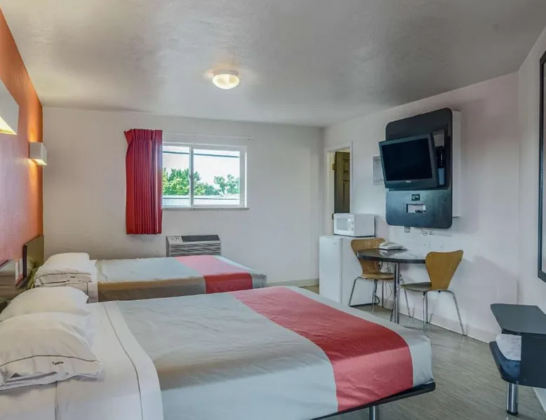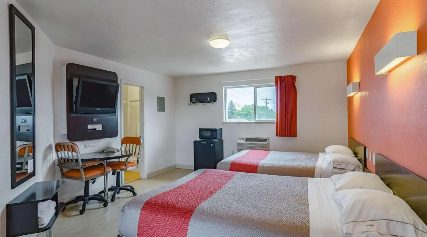 Comfortable Accommodations: Motel 6 Riverton WY in Riverton offers comfortable rooms with air-conditioning, private bathrooms, and free WiFi. Each room includes a refrigerator, microwave, and a kitchenette with a stovetop and toaster. Convenient Facilities: Guests benefit from free on-site parking, a 24-hour front desk, and a pet-friendly environment. Additional amenities include a seating area, walk-in shower, and parquet floors. Prime Location: Located 9.9 mi from Central Wyoming Regional Airport, the hotel provides easy access to local attractions. Guests appreciate the attentive staff and the cleanliness of the rooms. In the kitchenette, guests will find a stovetop, a refrigerator, a microwave and a toaster. This air-conditioned quadruple room is consisted of of a TV with cable channels and a private bathroom. The unit has 2 beds.