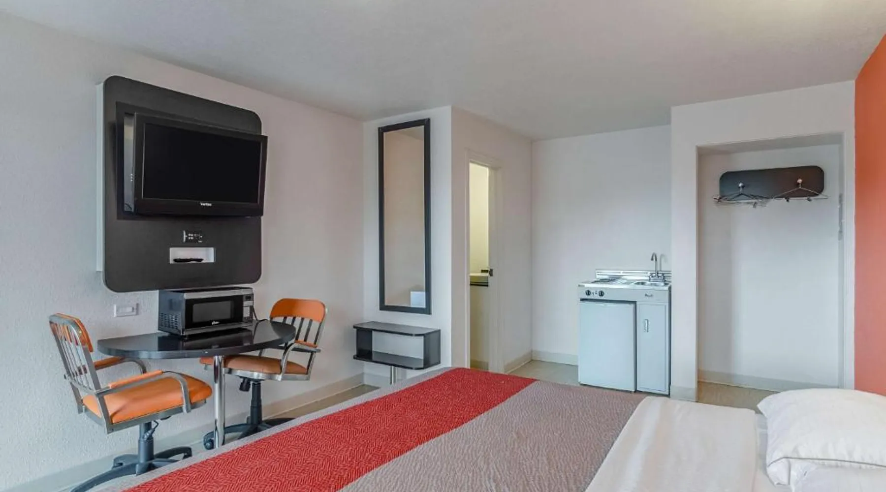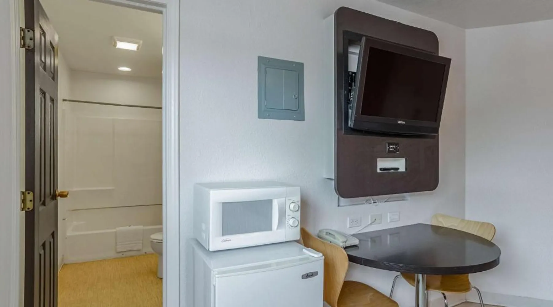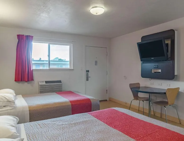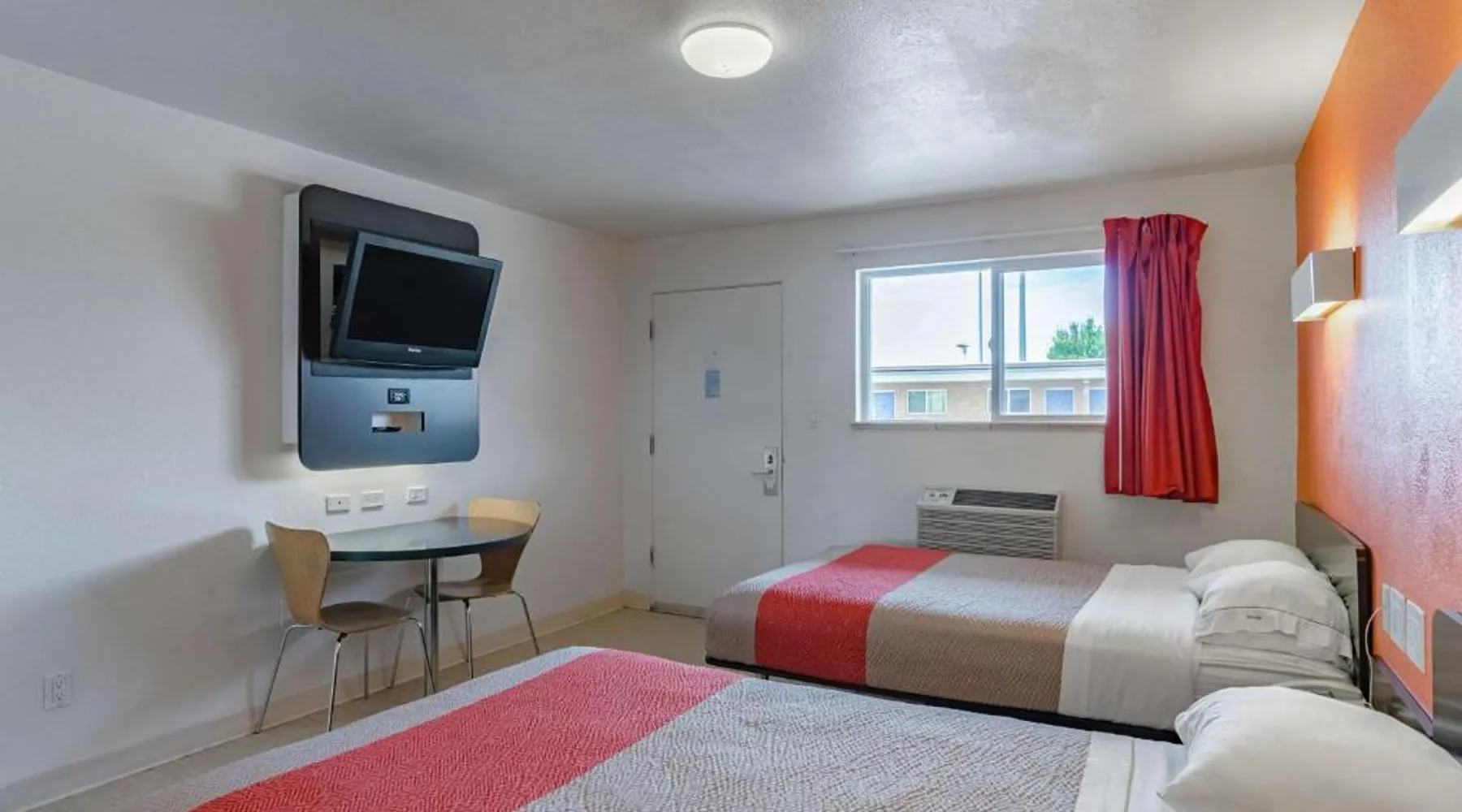 Comfortable Accommodations: Motel 6 Riverton WY in Riverton offers comfortable rooms with air-conditioning, private bathrooms, and free WiFi. Each room includes a refrigerator, microwave, and a kitchenette with a stovetop and toaster. Convenient Facilities: Guests benefit from free on-site parking, a 24-hour front desk, and a pet-friendly environment. Additional amenities include a seating area, walk-in shower, and parquet floors. Prime Location: Located 9.9 mi from Central Wyoming Regional Airport, the hotel provides easy access to local attractions. Guests appreciate the attentive staff and the cleanliness of the rooms. In the kitchenette, guests will find a stovetop, a refrigerator, a microwave and a toaster. This air-conditioned quadruple room is consisted of of a TV with cable channels and a private bathroom. The unit has 2 beds.