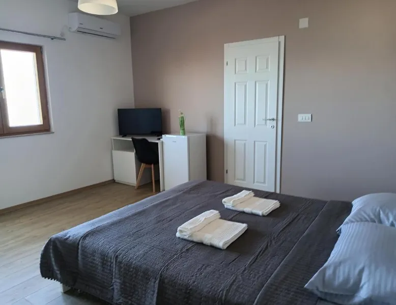 Comfortable Accommodations: Risto's Guest House in Ohrid offers family rooms with private bathrooms, balconies, and garden or lake views. Each room includes air-conditioning, a work desk, and a wardrobe. Essential Facilities: Guests enjoy a terrace and free WiFi, a lounge, and a minimarket. Additional amenities include an outdoor play area, picnic area, and free on-site private parking. Local Attractions: Located 12 mi from Ohrid Airport, the guest house is near attractions such as Bay of Bones (4.3 mi), Early Christian Basilica (8.7 mi), and Church of St. John at Kaneo (8.7 mi). Guest Satisfaction: Highly rated for its lakes, host, and breakfast provided by the property. This air-conditioned double room includes a flat-screen TV with cable channels, a private bathroom as well as a terrace with lake views. The unit offers 1 bed.