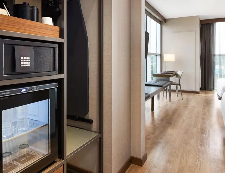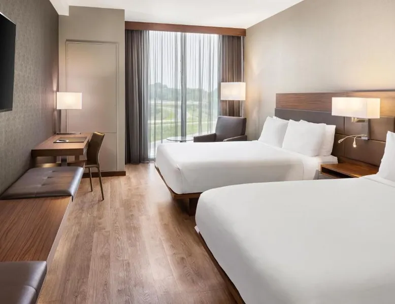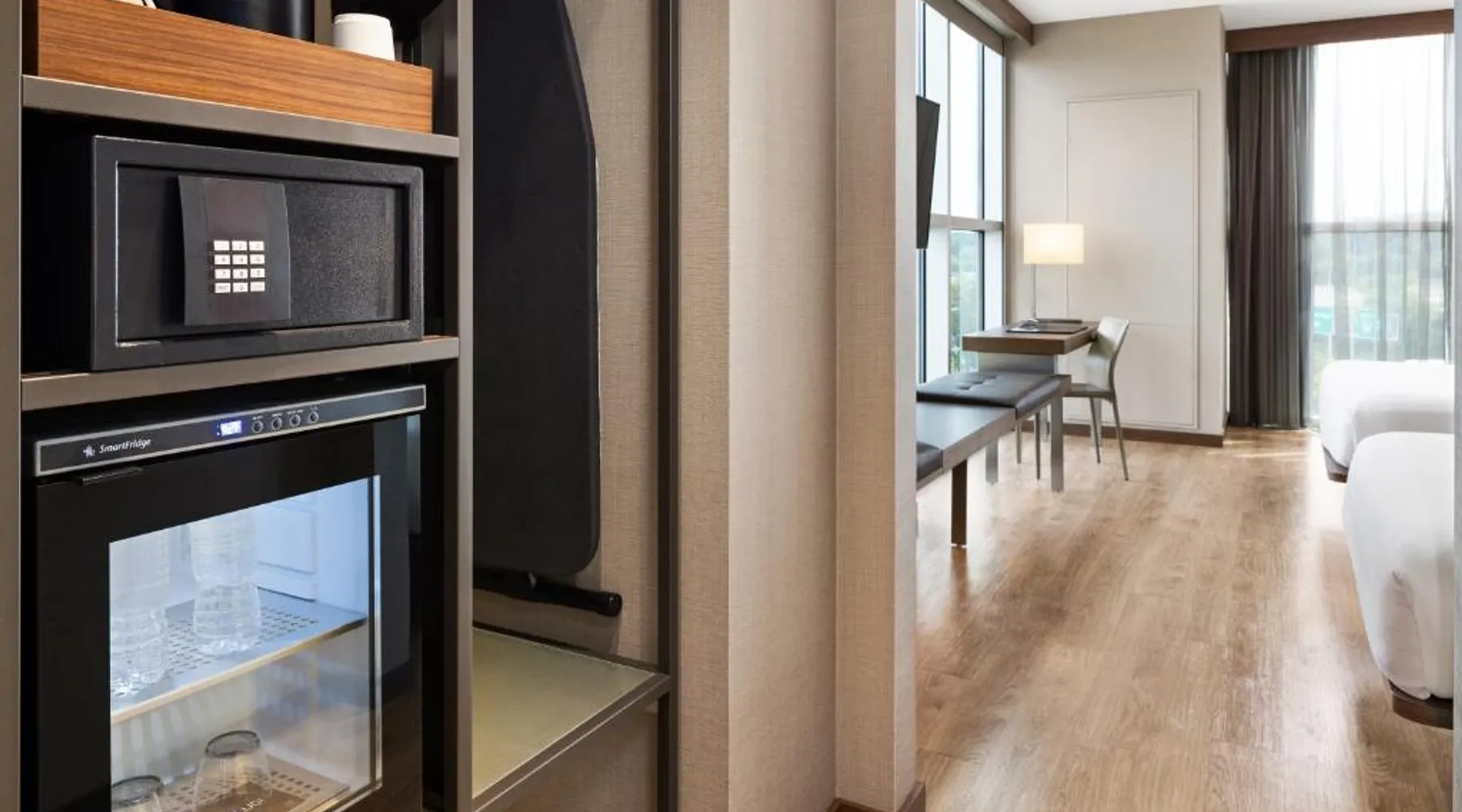 Comfortable Accommodations: Rooms feature air-conditioning, private bathrooms with walk-in showers, city views, and modern amenities including free WiFi, streaming services, and soundproofing. Dining and Leisure: The modern restaurant serves American and European cuisines, complemented by a bar. Guests can also enjoy a fitness center, outdoor fireplace, and outdoor seating area. Convenient Location: Located in St. Louis Park, the hotel is 13 mi from Minneapolis-Saint Paul International Airport. Nearby attractions include Target Field (4.3 mi) and Mall of America (14 mi). An ice-skating rink is also nearby. Guest Favorites: Guests appreciate the room cleanliness and the attentive staff. The spacious double room provides air conditioning, soundproof walls, as well as a private bathroom featuring a walk-in shower and a bath. The double room features parquet floors, a seating area with a flat-screen TV with streaming services, a tea and coffee maker, a wardrobe, as well as a safe deposit box. The unit offers 2 beds.