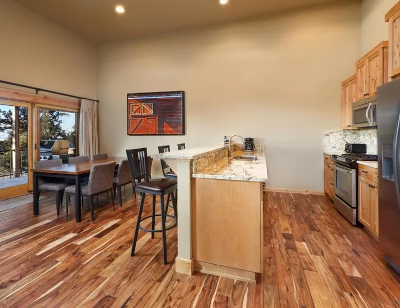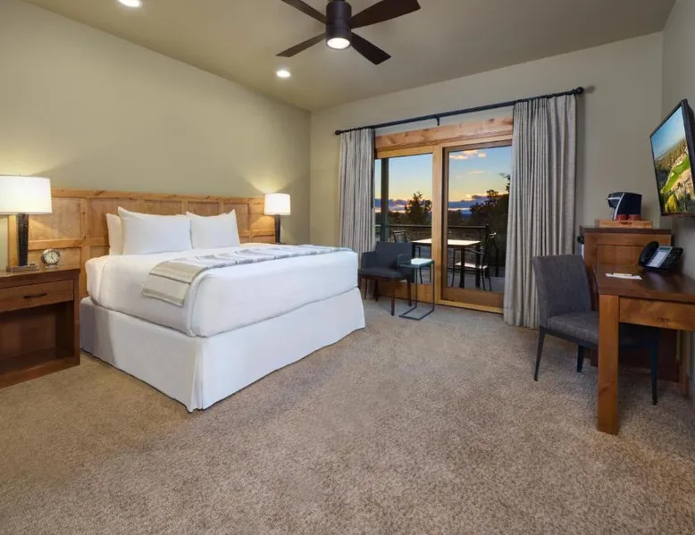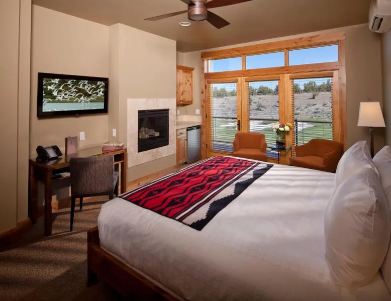 On 1,800 acres in Powell Butte, this ranch features an 18-hole golf course, an athletic center and large indoor/outdoor equestrian center. Brasada overlooks the Central Oregon high desert and Cascade Mountains. Every luxury cabin features a gourmet kitchen, spacious living room with a gas fireplace and 42-inch plasma TV. A wrap-around deck offers mountain or golf course views. Each is decorated in warm interiors with wood furnishings and floors. Brasada Ranch’s athletic center is 17,000-square-feet. It showcases 2 outdoor pools, complete with a water slide, lazy river and waterfall. A state-of-the-art fitness center and 2 tennis courts are included. The Spa features 4 treatment rooms, an adult pool and panoramic mountain views. Ping-pong tables, gaming consoles and board games are provided at The Hideout. A daily menu, prepared with local ingredients is served at the Signature Restaurant. It features outdoor patios with 2 fire pits. The Ranch House has coffee and gourmet snacks. This double room features a private bathroom and air conditioning. The unit offers 1 bed.