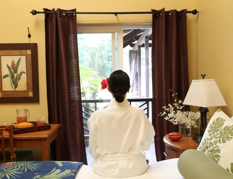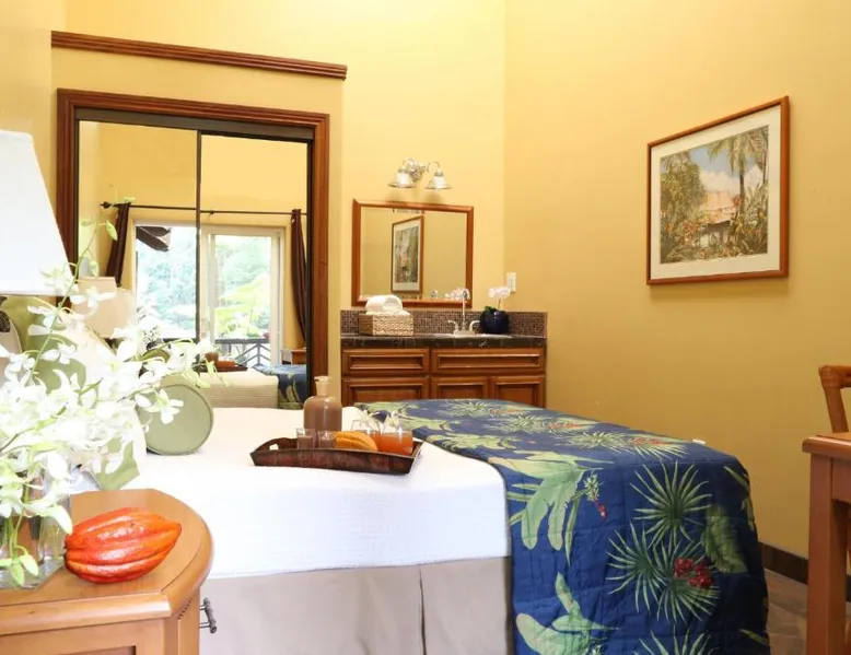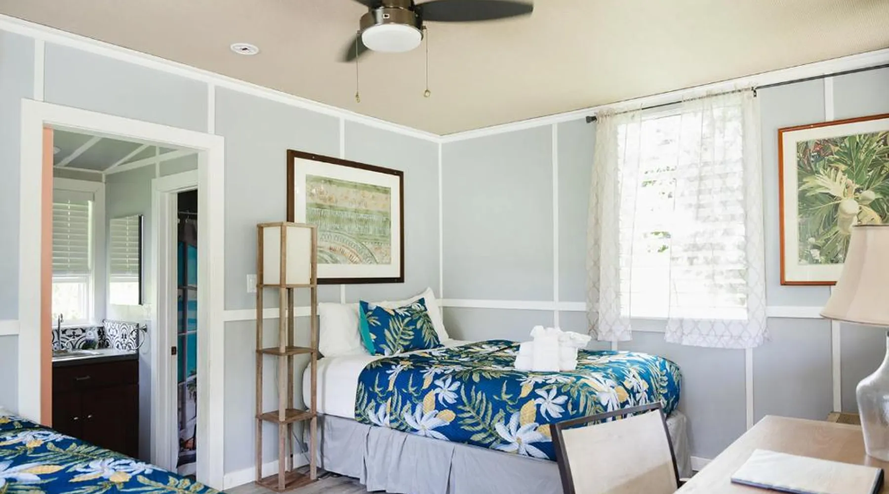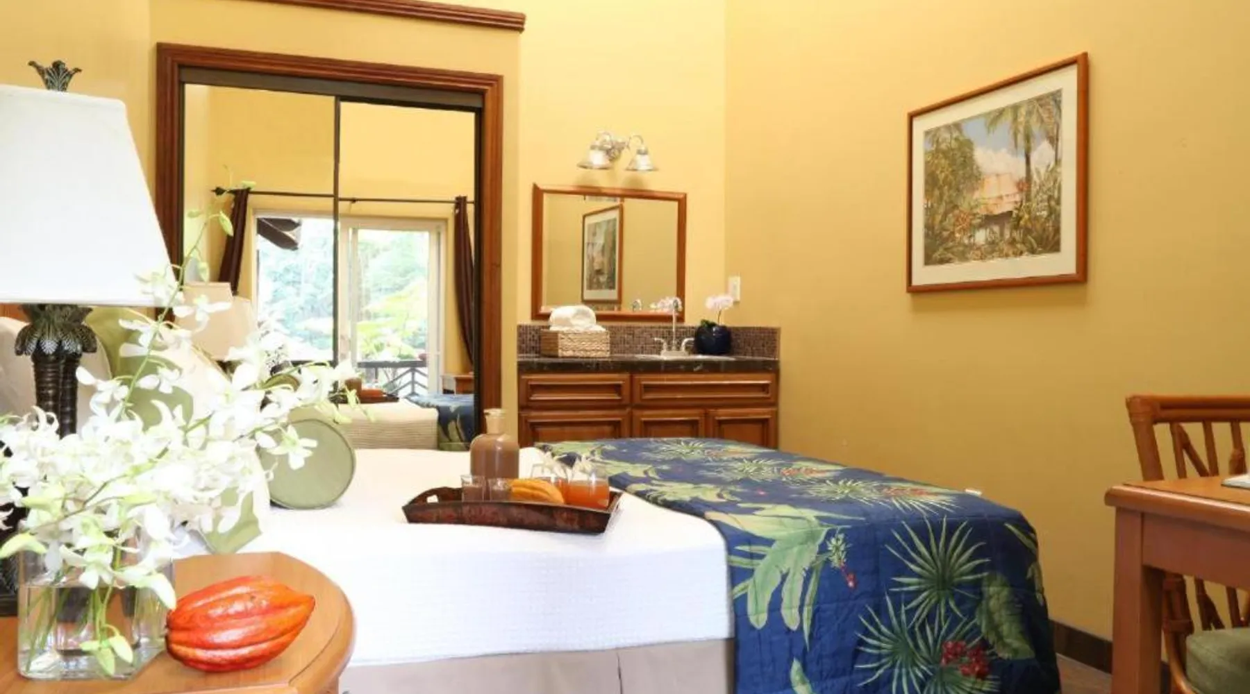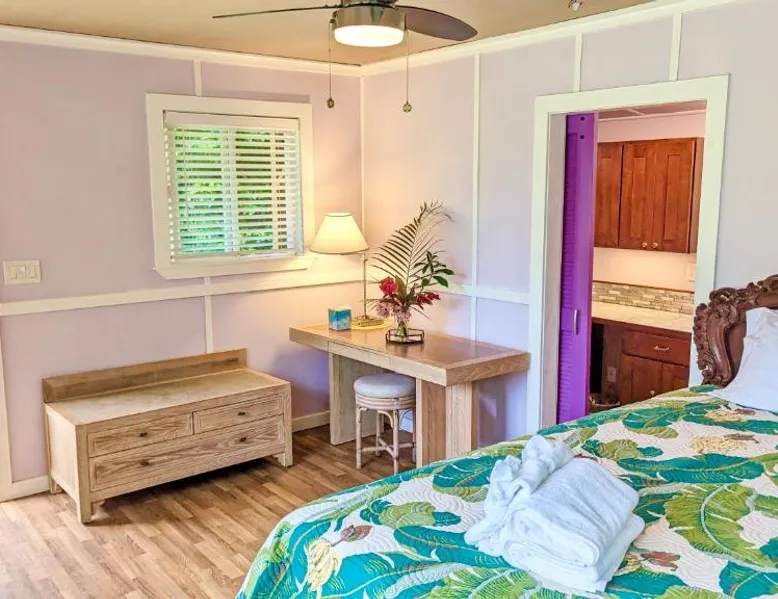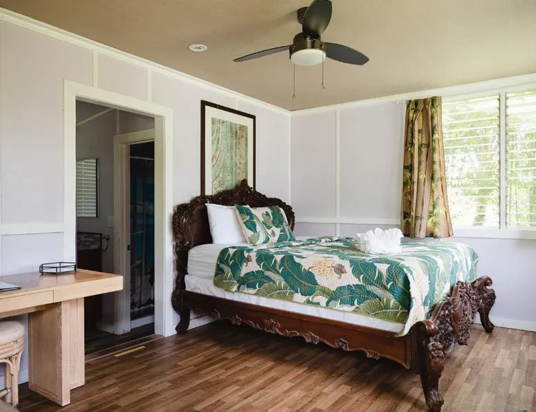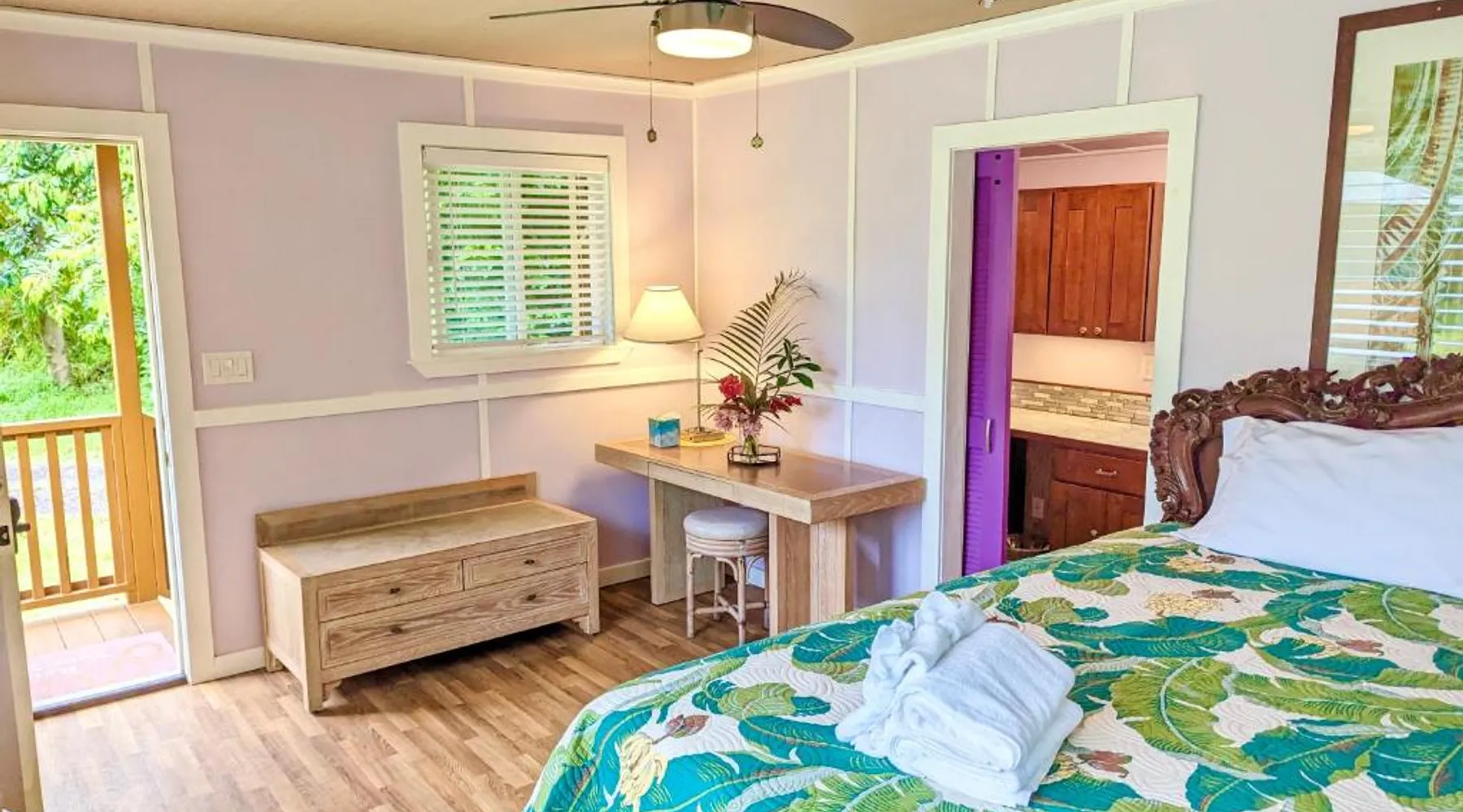 Elegant Accommodations: Hawaiian Sanctuary Eco Retreat Center in PÄho offers comfortable farm stay accommodations with garden views. Each room features air-conditioning, a private bathroom, and a kitchenette. Wellness and Leisure: Guests can enjoy spa facilities, a sauna, fitness center, and a year-round outdoor swimming pool. Additional amenities include a hot tub, yoga classes, and evening entertainment. Dining Experience: The property serves a continental, American, and vegetarian breakfast with local specialties, juice, and fruits. Free on-site private parking is available. Local Attractions: Located 1.2 mi from Lava Tree State Park and 21 mi from Hilo International Airport, the retreat center is near attractions such as Lyman Museum and Rainbow Falls. The double room has garden views. The unit has 1 bed.