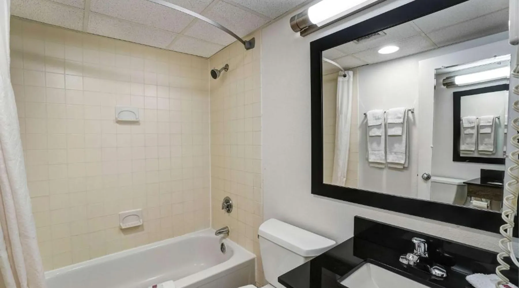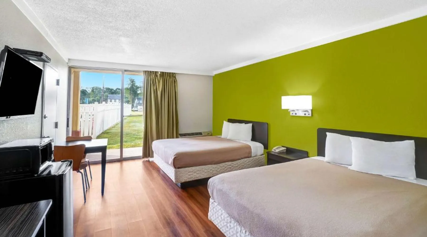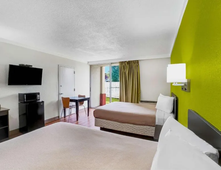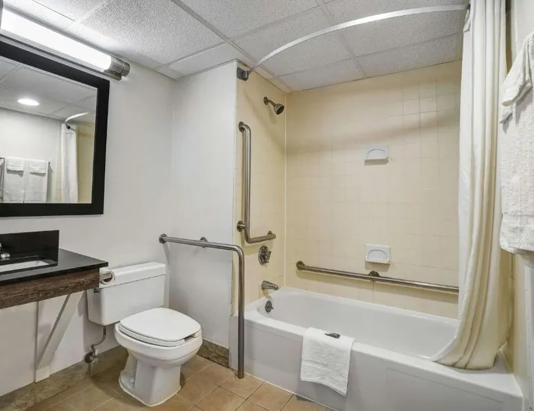 Comfortable Accommodations: Rooms feature air-conditioning, private bathrooms with baths, refrigerators, microwaves, showers, and TVs. Guests appreciate the room cleanliness and comfort. Dining and Leisure: The family-friendly restaurant serves American cuisine with vegetarian options. A bar offers a relaxing atmosphere. Free WiFi is available throughout the property. Convenient Location: Located in Lawrenceville, the hotel is 6.2 mi from Trenton-Mercer Airport. Nearby attractions include Princeton University (9.3 mi), Sesame Place (11 mi), and Six Flags Great Adventure & Wild Safari (22 mi). The spacious air-conditioned quadruple room has private bathroom fitted with a bath and a shower. The unit has 2 beds.