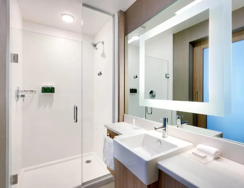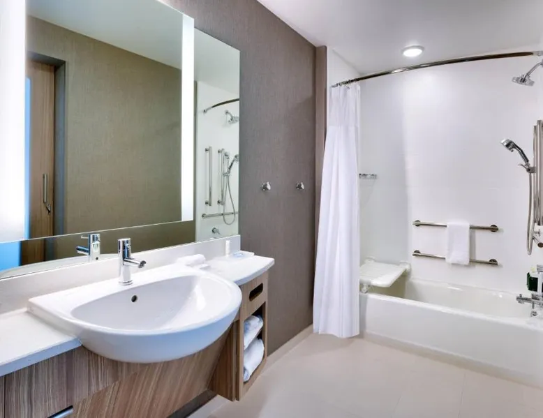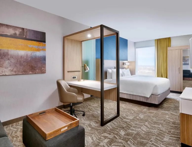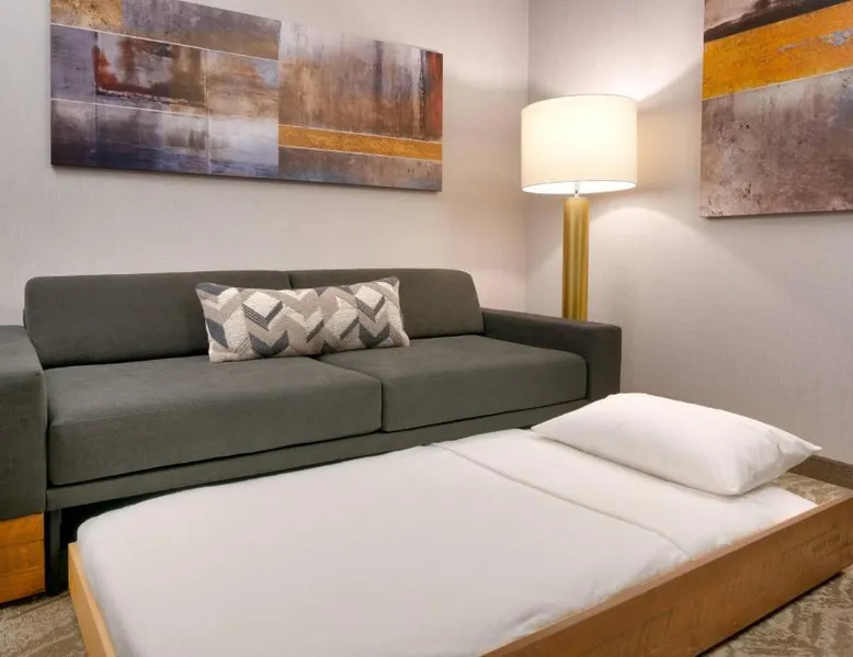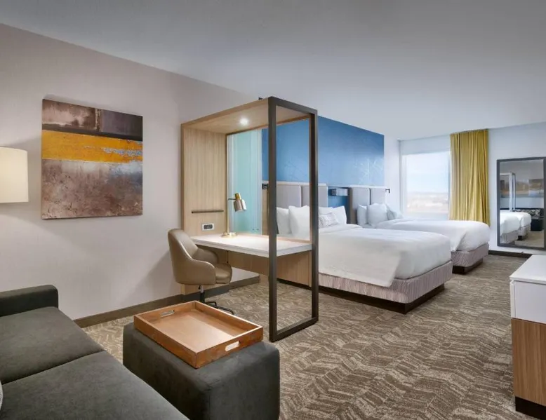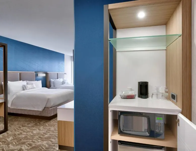 Comfortable Accommodations: Springhill Suites by Marriott Colorado Springs North/Air Force Academy in Colorado Springs offers family rooms with air-conditioning, private bathrooms, and modern amenities. Guests enjoy free WiFi, streaming services, and private entrances. Exceptional Facilities: The hotel features a fitness center, indoor swimming pool, and free bicycles. Additional facilities include a bar, business area, and electric vehicle charging station. Convenient Location: Located 16 mi from Colorado Springs Airport, the hotel is near attractions such as United States Air Force Academy (8.1 mi), Palmer Park (9.9 mi), and Garden of the Gods (12 mi). Guests appreciate the room cleanliness, convenient location, and comfortable rooms. Providing free toiletries, this suite includes a private bathroom with a bath or a shower and a hairdryer. The suite provides air conditioning, a private entrance, a tea and coffee maker, a seating area, as well as a flat-screen TV with streaming services.