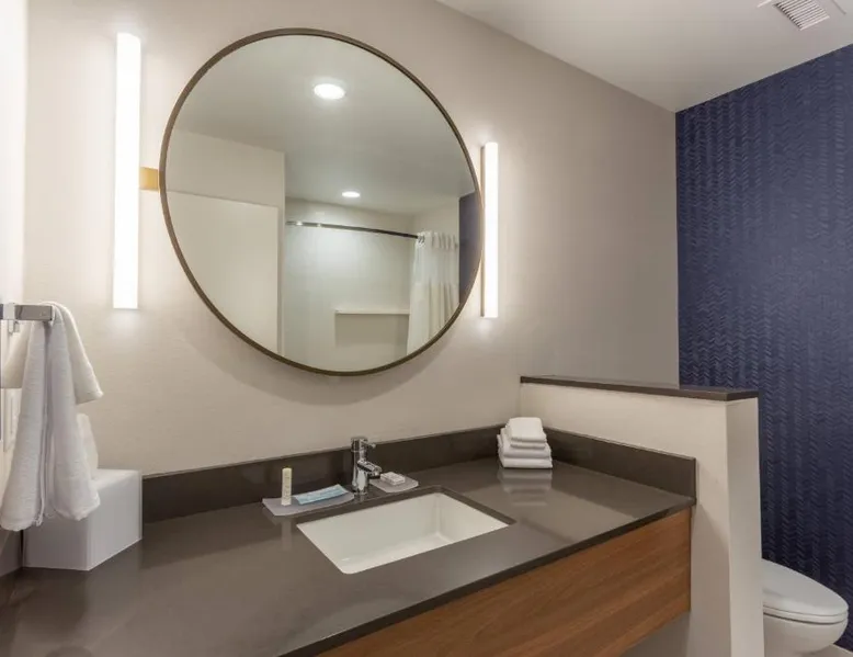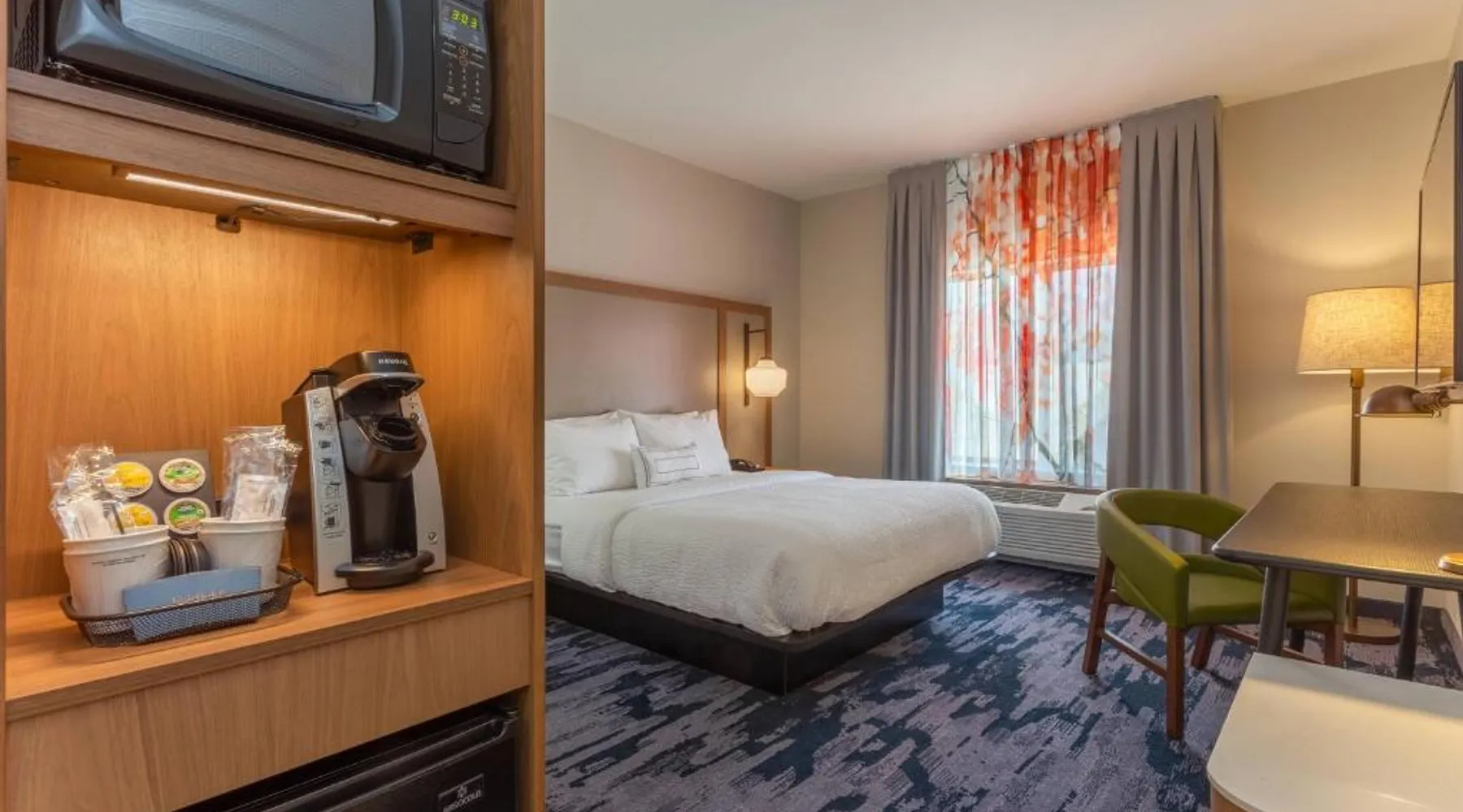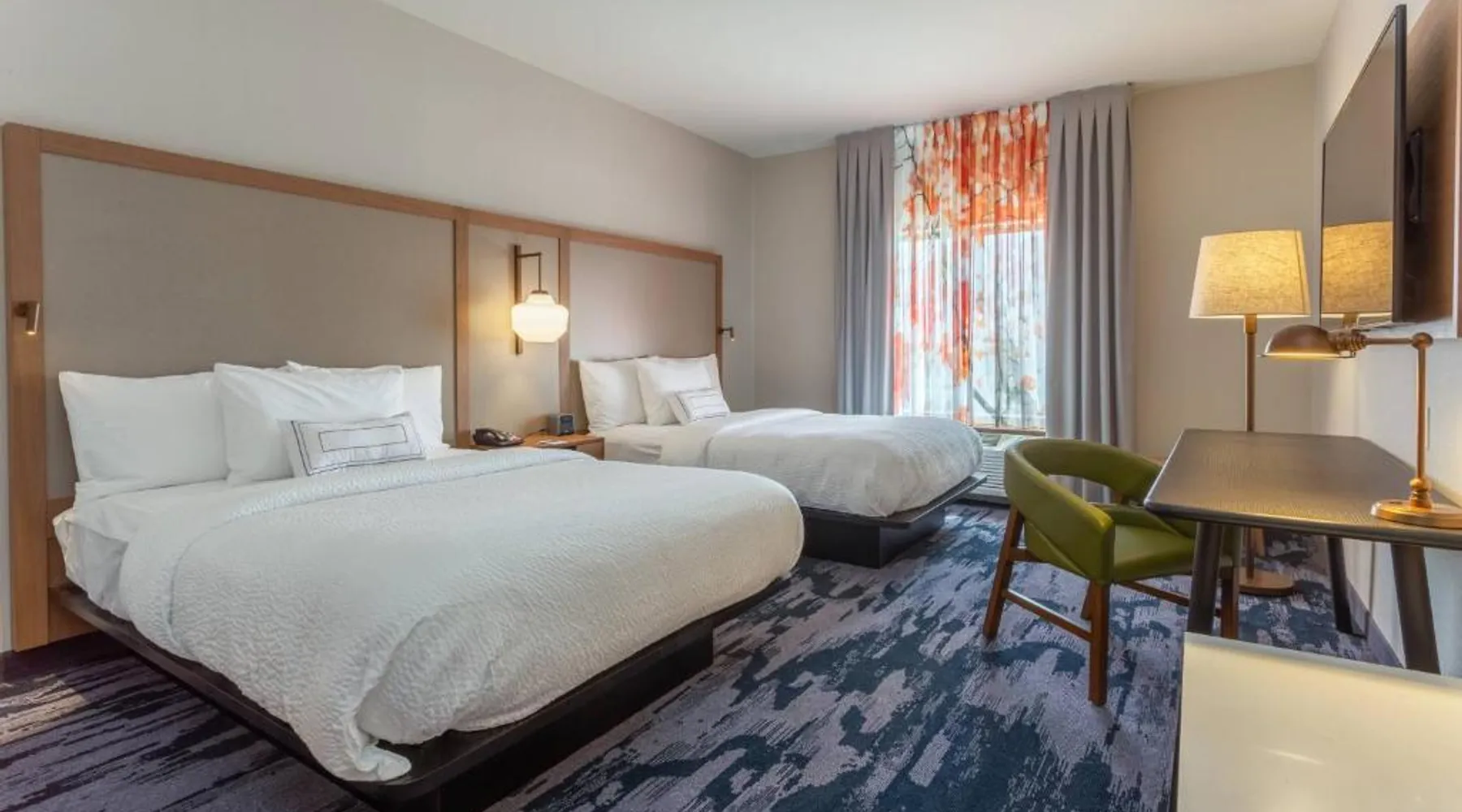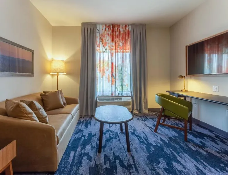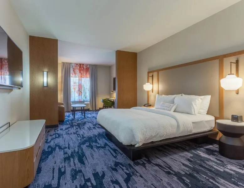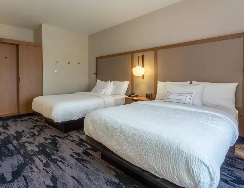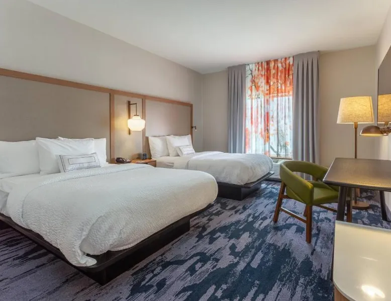 Comfortable Accommodations: Fairfield Inn & Suites Franklin in Franklin offers rooms with air-conditioning, free WiFi, and modern amenities. Guests enjoy amenities such as a fitness center, indoor swimming pool, and a business area. Convenient Facilities: The hotel provides free private parking, a 24-hour front desk, and a minimarket. Additional facilities include a fitness room, elevator, outdoor seating area, and barbecue facilities. Prime Location: Located 27 mi from Indianapolis International Airport, the hotel is near attractions like Lucas Oil Stadium (23 mi) and Indianapolis Motor Speedway (29 mi). Guests appreciate the room cleanliness, breakfast provided by the property, and attentive staff. The unit offers 2 beds.