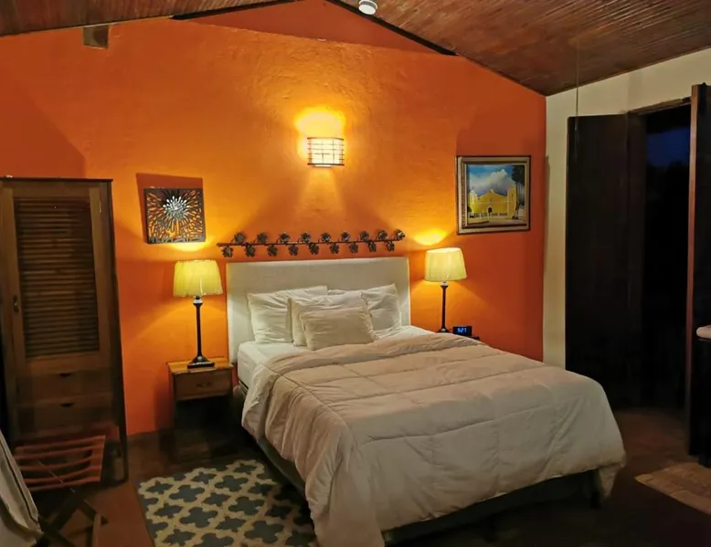 Comfortable Accommodations: Hotel Montecillos in San José offers comfortable rooms with private bathrooms, walk-in showers, and free WiFi. Each room includes a work desk, wardrobe, and free toiletries. Dining and Leisure: Guests can enjoy a restaurant serving American, Mexican, seafood, Spanish, steakhouse, local, Latin American, and Caribbean cuisines. The bar offers cocktails, and live music enhances the dining experience. Amenities and Services: The hotel features a garden, outdoor seating area, picnic spots, and barbecue facilities. Additional services include private check-in and check-out, paid shuttle, lounge, and housekeeping. Location and Attractions: Located 43 mi from Palmerola International Airport, the hotel is near attractions such as Hacienda Rosario and the San José Cathedral. Cycling activities are available nearby. The spacious triple room features a wardrobe, heating, a terrace with mountain views as well as a private bathroom boasting a walk-in shower. The unit has 3 beds.