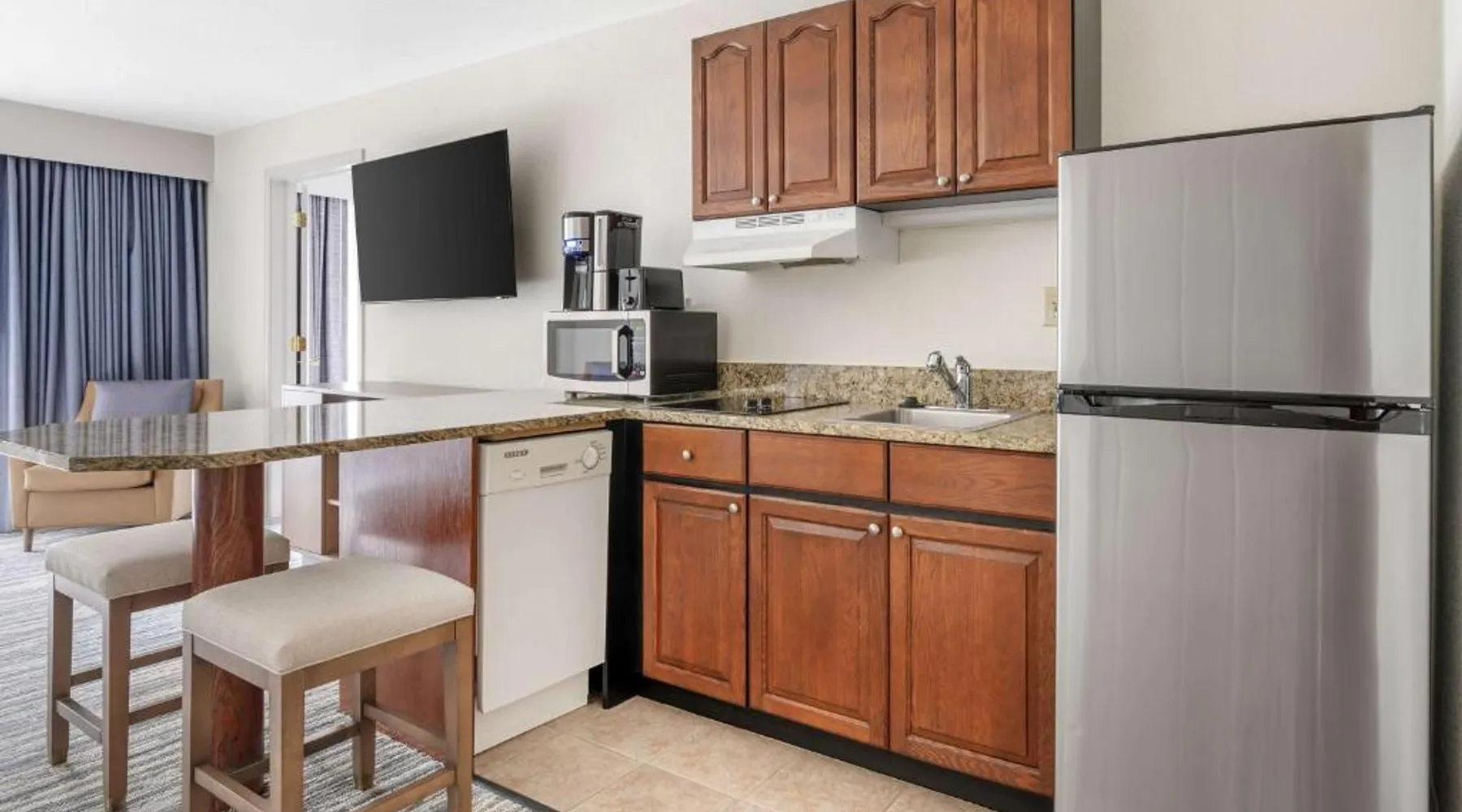 The University of Noter Dame is less than 4 miles from this Mishawaka, Indiana hotel. Varsity Clubs of America - South Bend features outdoor and indoor pools. Free WiFi access is available. The suites at Varsity Clubs of America – South Bend are furnished with a microwave, a mini-fridge and coffee facilities. Each suite includes a seating area with sofa bed. South Bend Varsity Clubs of America features a putting green and billiards. An exercise facility is also on-site. Warren Golf Course is 5 miles away. Varsity Clubs of America South Bend is 4 miles from Interstate 90. The air-conditioned suite features a flat-screen TV with cable channels, a tea and coffee maker, a seating area and a safe deposit box. The unit has 2 beds.