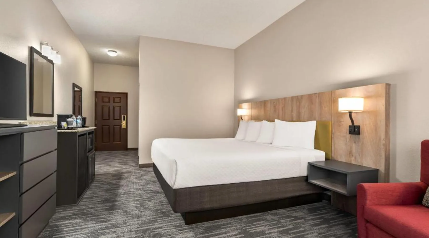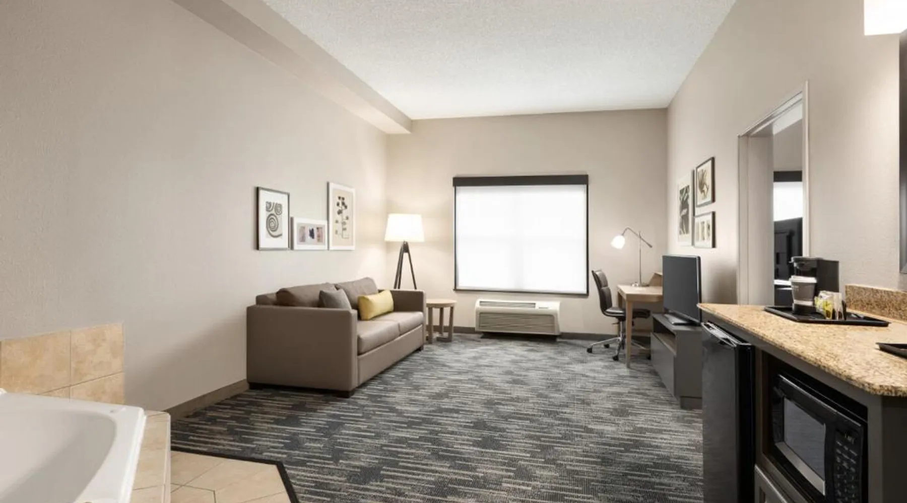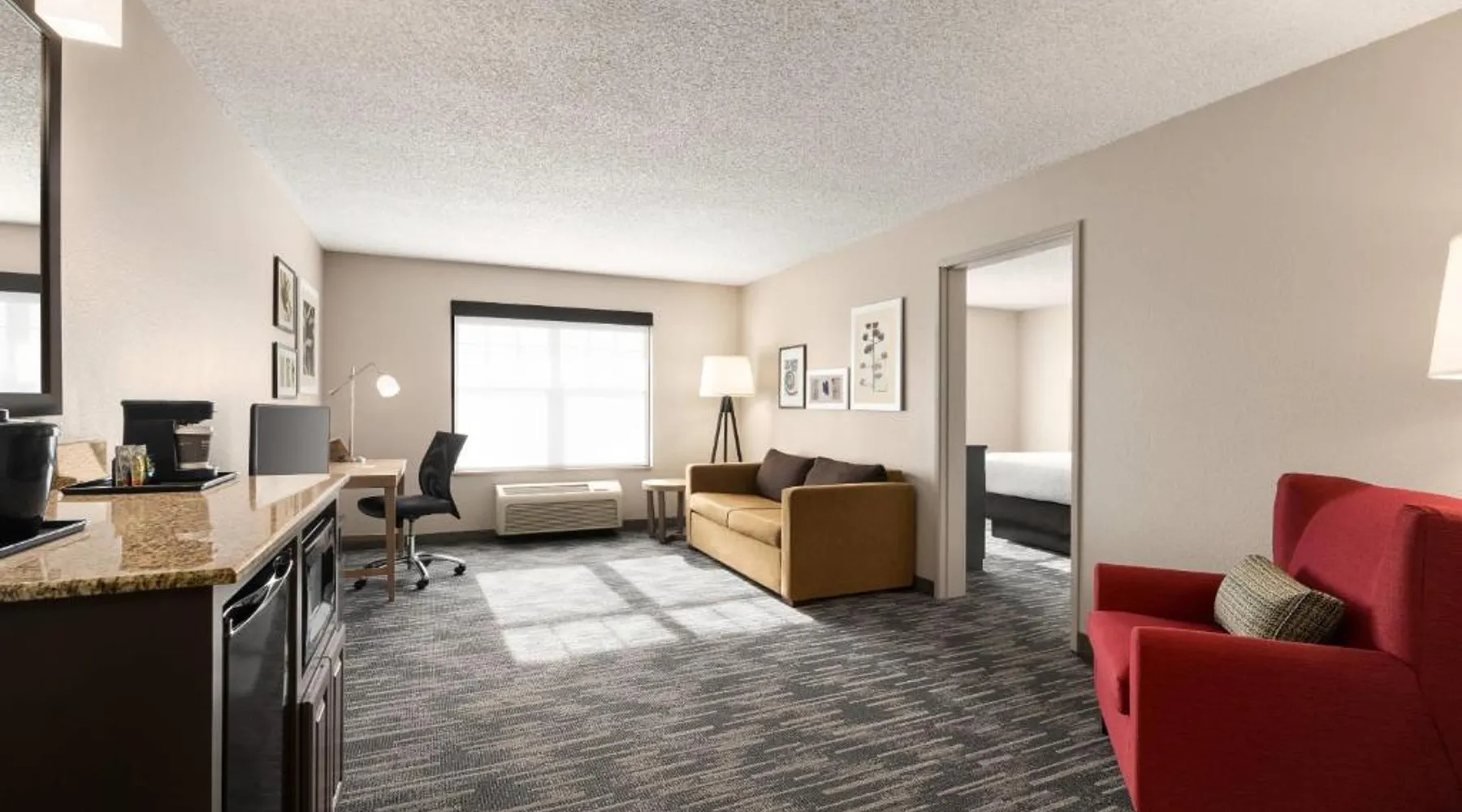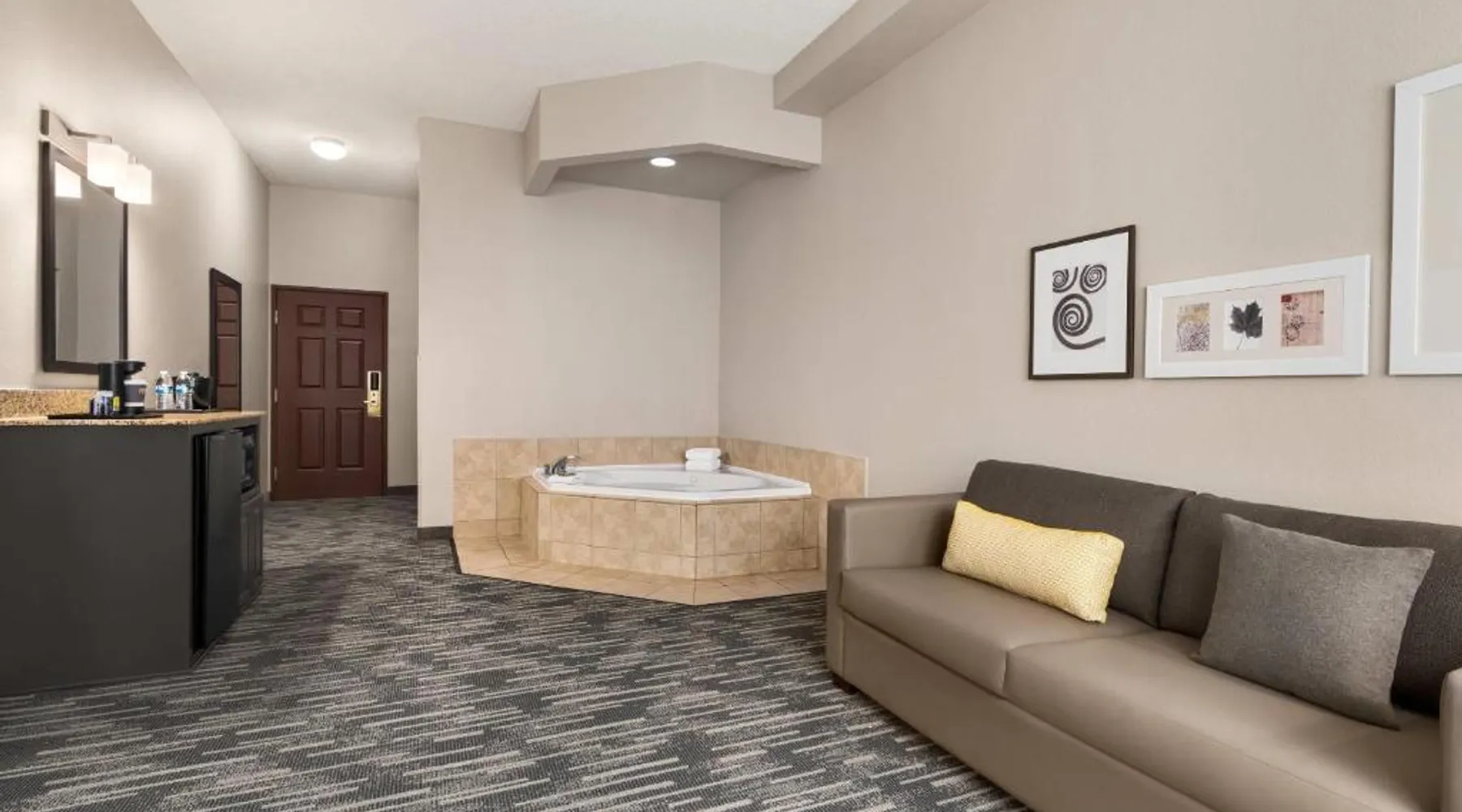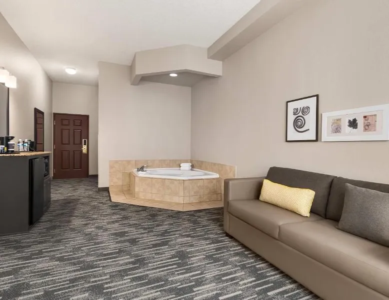 Comfortable Accommodations: Country Inn & Suites by Radisson, Boise West - Meridian in Meridian offers family rooms with air-conditioning, private bathrooms, and free WiFi. Each room includes a work desk, TV, and complimentary toiletries. Leisure Facilities: Guests can enjoy an indoor swimming pool, fitness center, sun terrace, and kids' pool. Additional amenities include a lounge, fitness room, and outdoor seating area. Dining Options: A continental buffet breakfast is served daily, featuring fresh pastries, cheese, fruits, and juice. The hotel also offers a minimarket and a child-friendly buffet. Convenient Location: Located 8.1 mi from Boise Airport, the hotel is near attractions such as Roaring Springs Water Park (3.7 mi) and Boise Art Museum (11 mi). Free on-site parking is available. Providing free toiletries, this suite includes a private bathroom with a bath, a shower and a hairdryer. The air-conditioned suite provides a flat-screen TV with cable channels, a tea and coffee maker, a wardrobe and a carpeted floor.