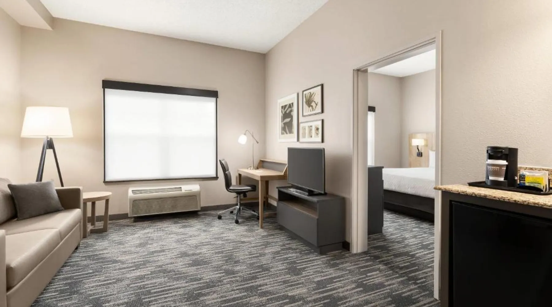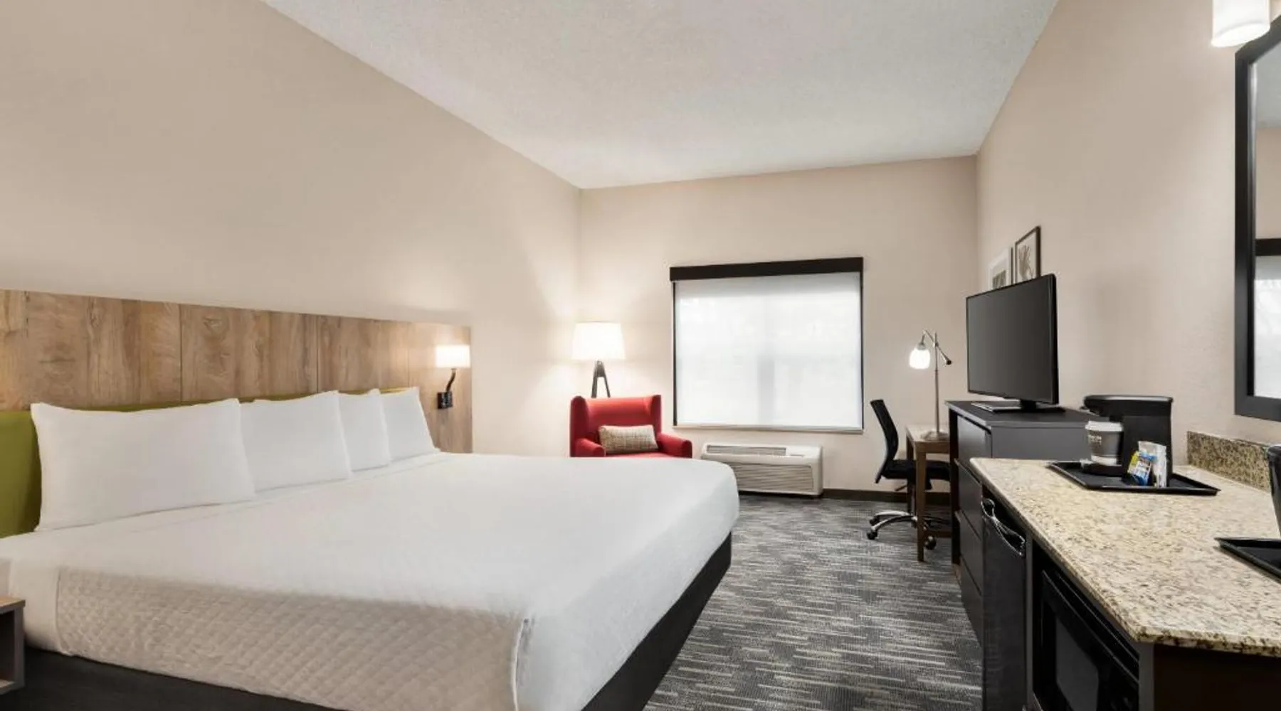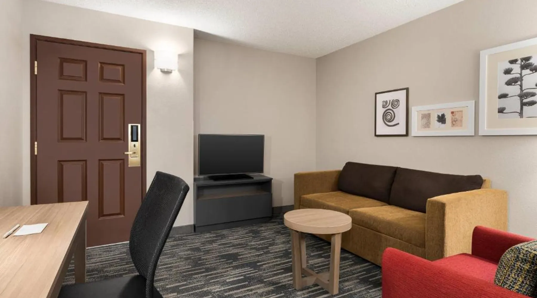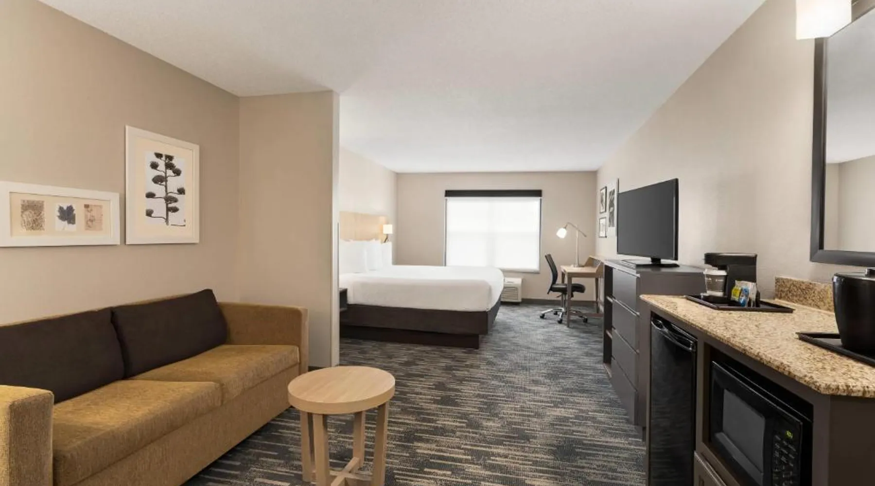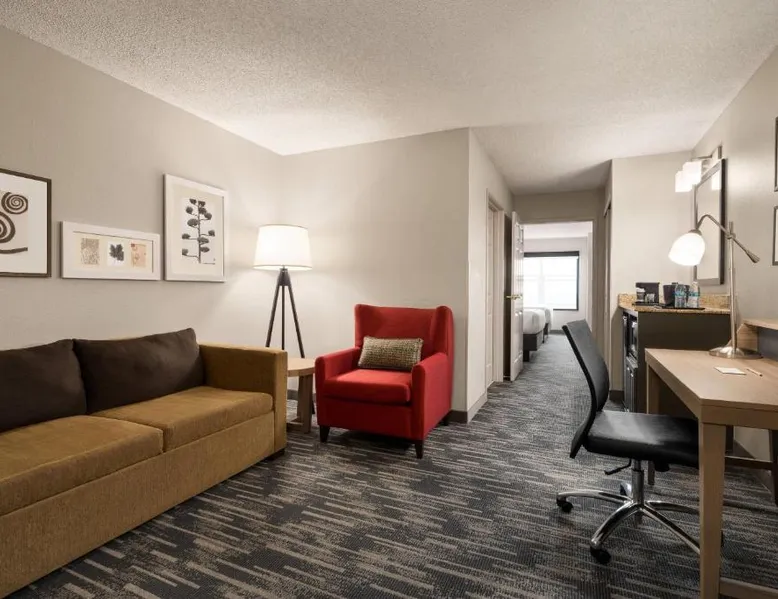 Comfortable Accommodations: Country Inn & Suites by Radisson, Boise West - Meridian in Meridian offers family rooms with air-conditioning, private bathrooms, and free WiFi. Each room includes a work desk, TV, and complimentary toiletries. Leisure Facilities: Guests can enjoy an indoor swimming pool, fitness center, sun terrace, and kids' pool. Additional amenities include a lounge, fitness room, and outdoor seating area. Dining Options: A continental buffet breakfast is served daily, featuring fresh pastries, cheese, fruits, and juice. The hotel also offers a minimarket and a child-friendly buffet. Convenient Location: Located 8.1 mi from Boise Airport, the hotel is near attractions such as Roaring Springs Water Park (3.7 mi) and Boise Art Museum (11 mi). Free on-site parking is available. Providing free toiletries, this suite includes a private bathroom with a bath, a shower and a hairdryer. The air-conditioned suite provides a flat-screen TV with cable channels, a tea and coffee maker, a wardrobe and a carpeted floor.