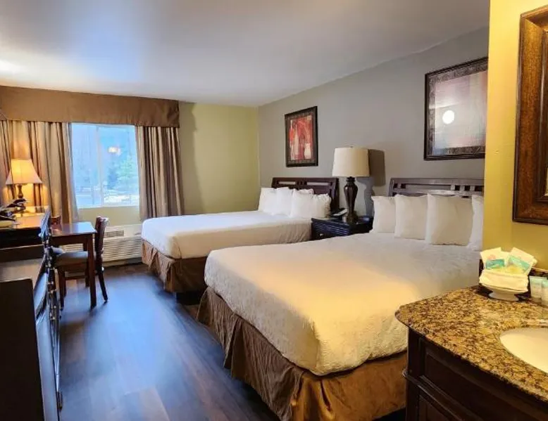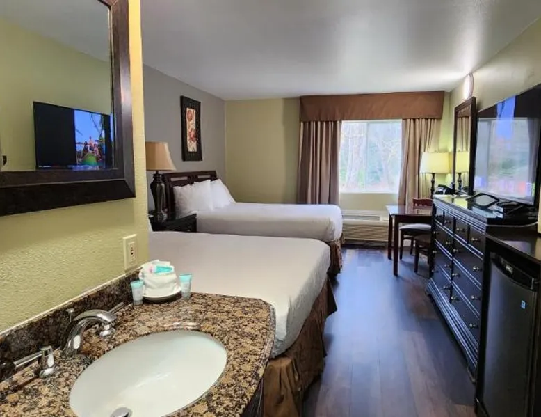 This Packwood, Washington lodge is 25 minutes’ drive from Whitepass Ski Resort. Offering free Wi-Fi, each air-conditioned room provides a flat-screen cable TV and coffee-making facilities at Crest Trail Lodge. All rooms are simply furnished in subtle colored linens. Air conditioning is featured throughout. Mount Rainier National Park is 30 miles away from Crest Trail Lodge. Seattle-Tacoma International Airport is 100 miles away. This spacious suite comes with 1 living room, 2 separate bedrooms and 1 bathroom with a bath and free toiletries. The suite features a tea and coffee maker, a seating area, parquet floors, heating, as well as a flat-screen TV. The unit has 3 beds.