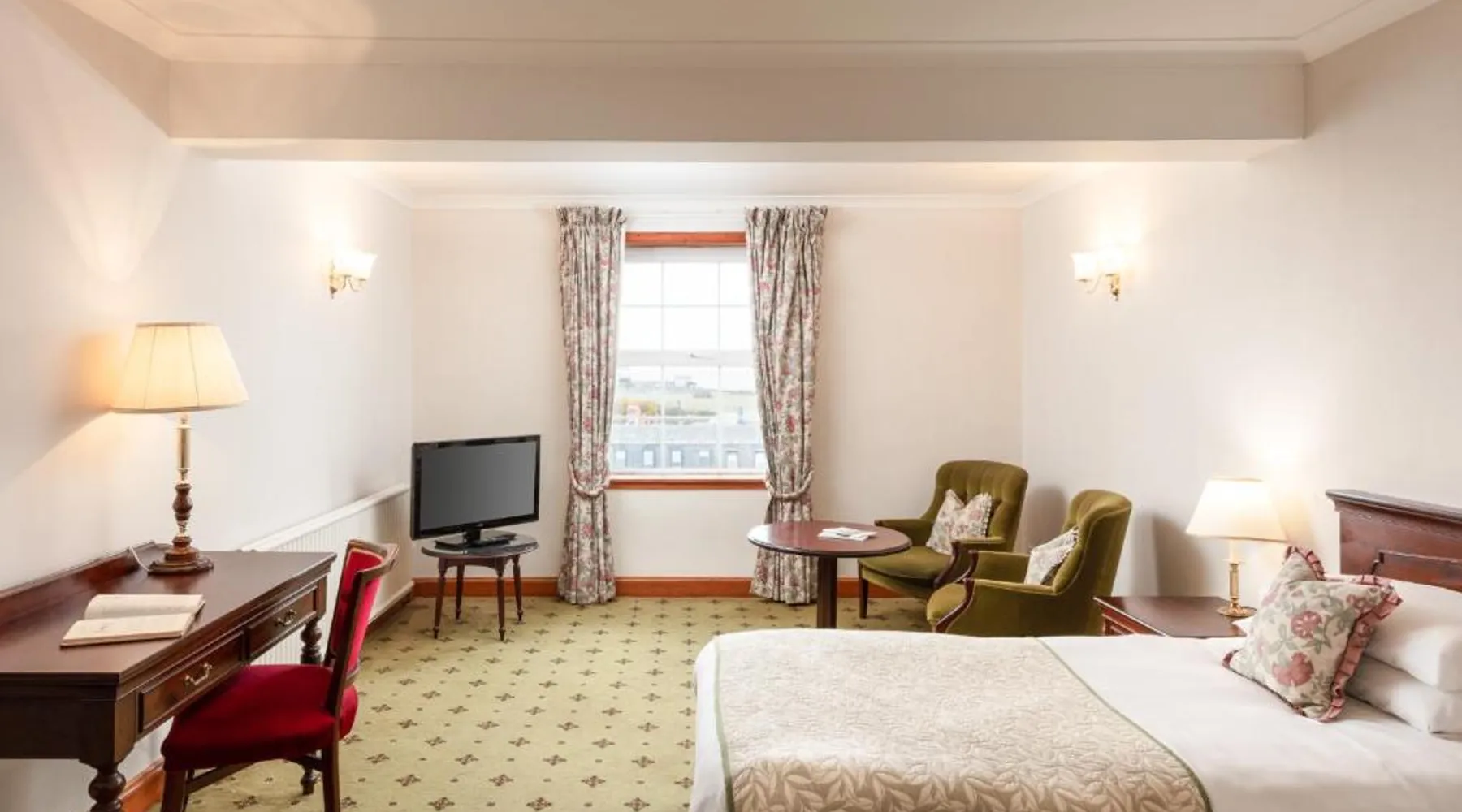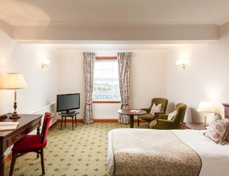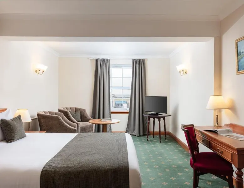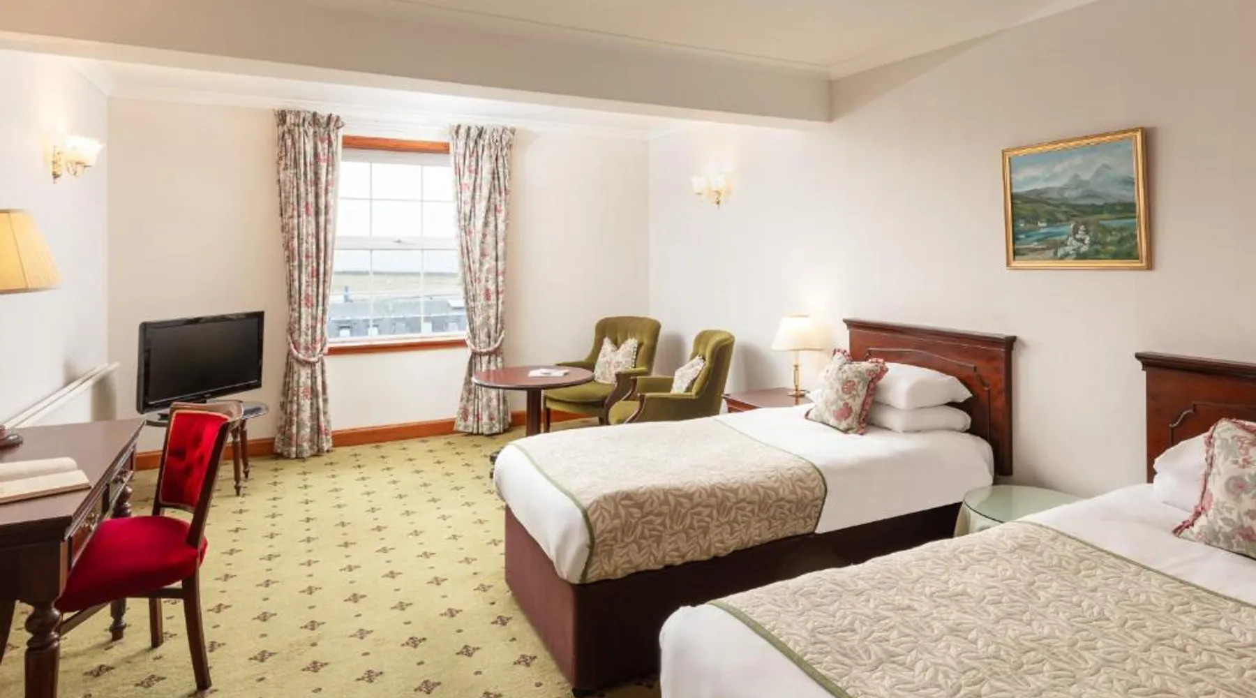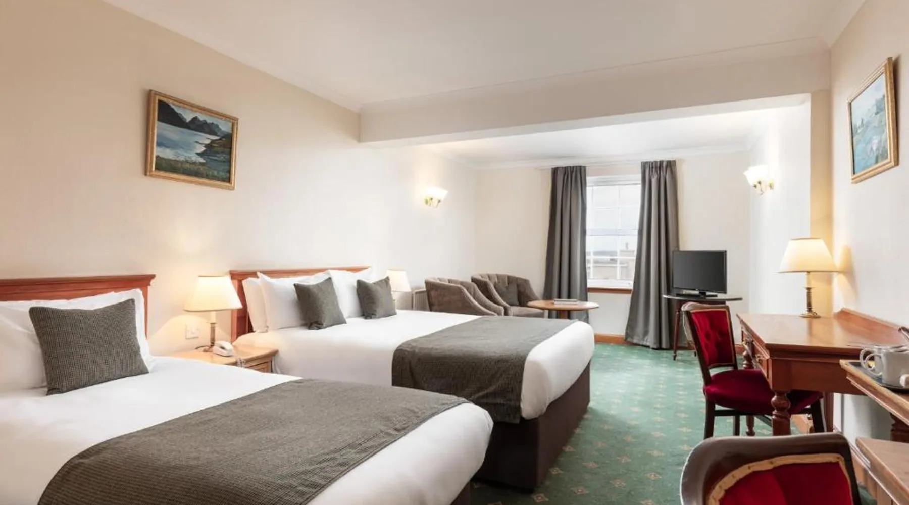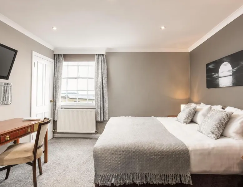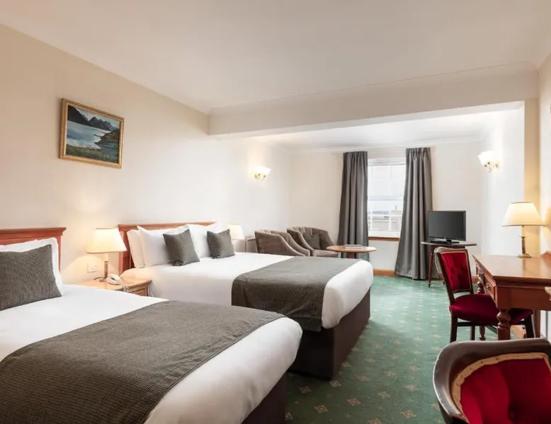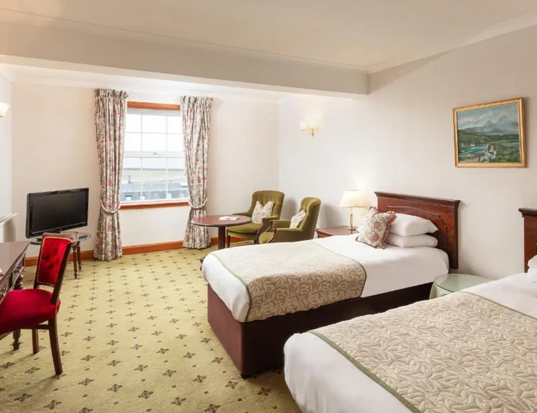 Featuring its own curling ice rink and an indoor pool, North West Castle Hotel is located opposite Stranraer harbor, which serves as the main ferry port between Scotland and Ireland. Other benefits include a sauna, spa bath and a gym. Free WiFi is provided in each room at North West Castle Hotel, as well as an private bathroom, a TV and tea/coffee making facilities. Dishes made with fresh local produce are served in the hotel’s 2 restaurants, and accompanied by an extensive wine list. Musical accompaniment comes in the form of the hotel’s pianist, who will play your song requests. Guests can also relax in The Residents Lounge which features views along the entire length of Loch Ryan. Stranraer town center is just a 5-minute walk from the hotel and features an ancient castle, cafés and shops. Scenic walks can be taken in the local area and day trips to Belfast are made easy by the frequent ferries which sail back and forth. Featuring free toiletries, this quadruple room includes a private bathroom with a bath and a hairdryer. The quadruple room features a wardrobe, an electric kettle, a carpeted floor, heating, as well as a flat-screen TV. The unit has 4 beds.
