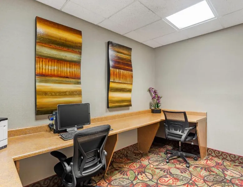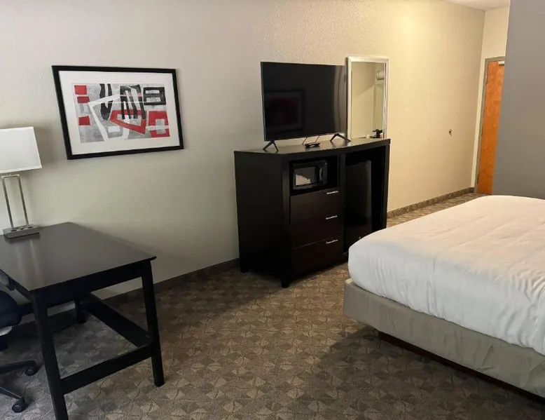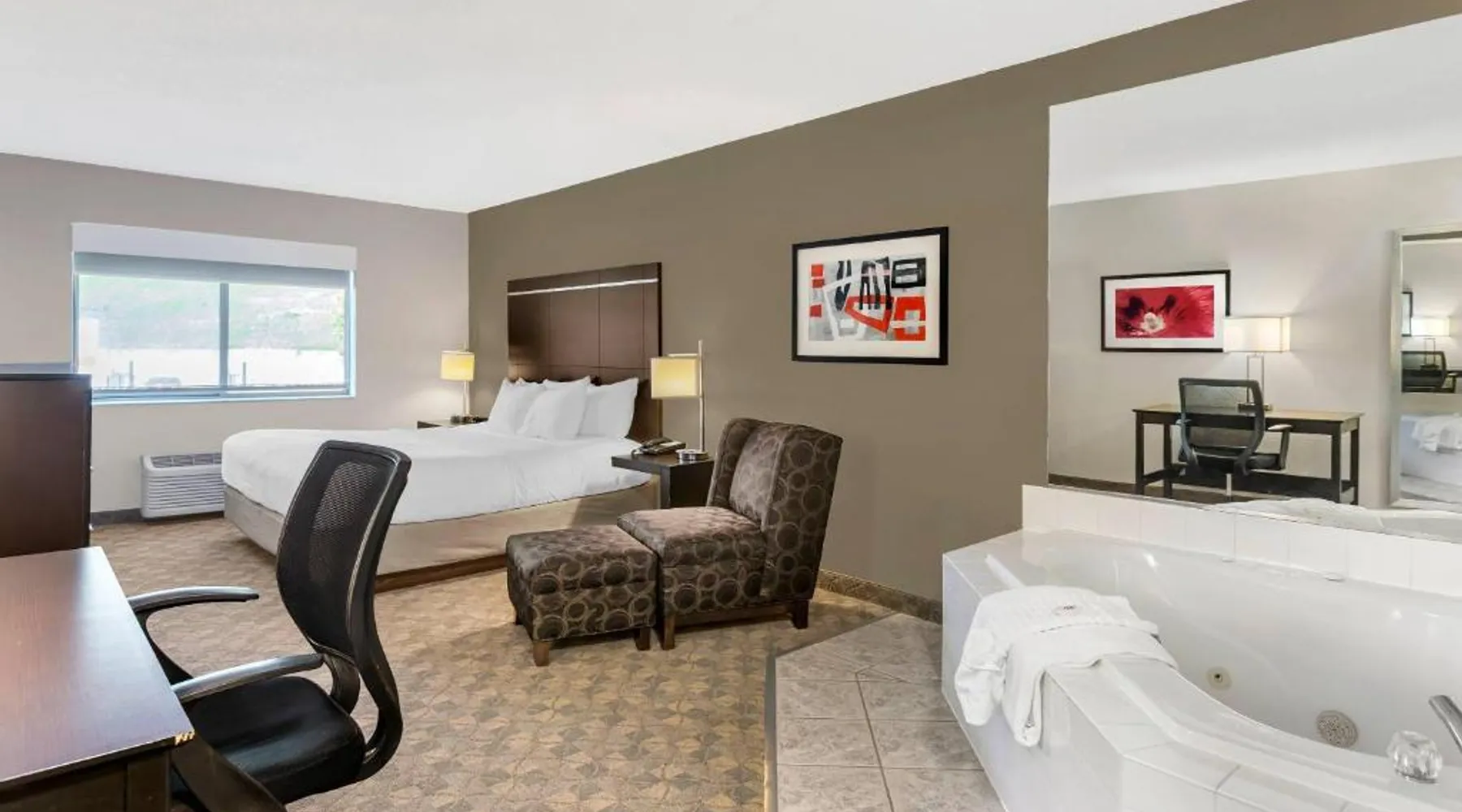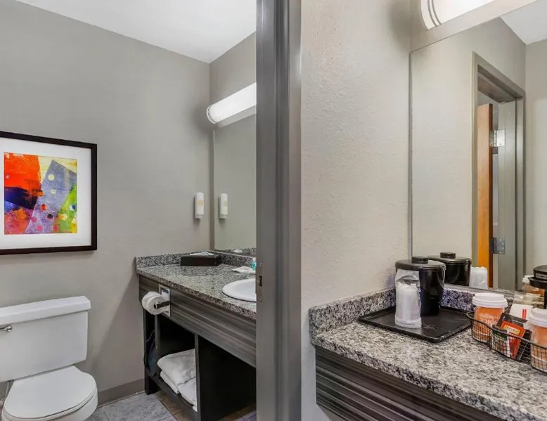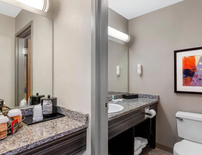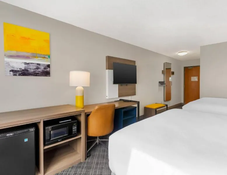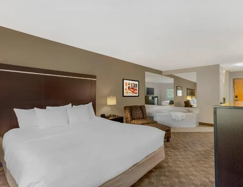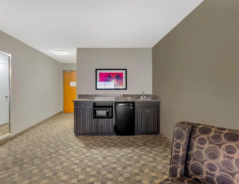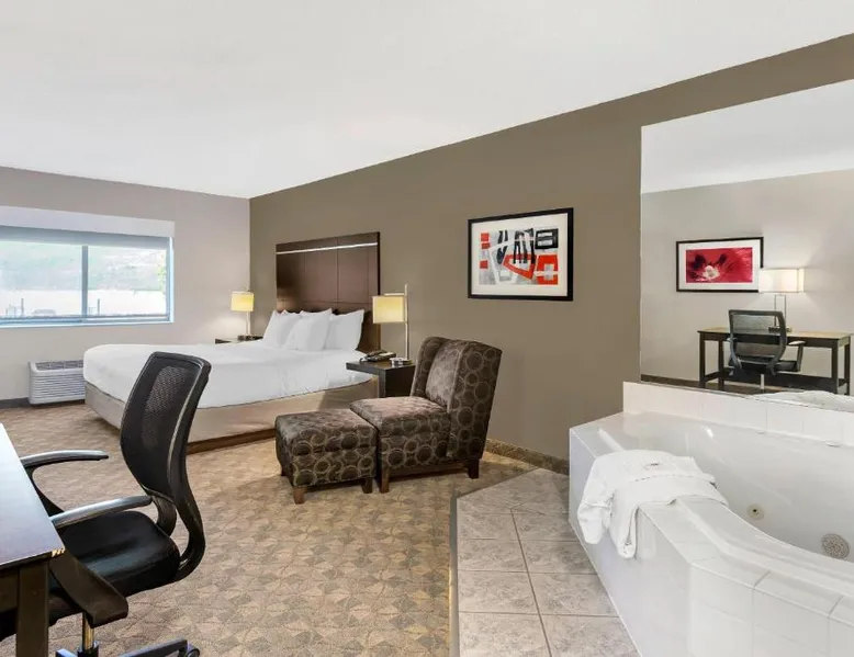 Comfortable Accommodations: Comfort Inn Huntington near University area in Huntington offers family rooms with air-conditioning, private bathrooms, and free WiFi. Each room includes a tea and coffee maker, refrigerator, work desk, and TV. Leisure Facilities: Guests can enjoy a fitness center, sun terrace, indoor swimming pool, and hot tub/jacuzzi. Additional amenities include a lounge, fitness room, elevator, 24-hour front desk, daily housekeeping service, child-friendly buffet, business area, outdoor seating, picnic area, and barbecue facilities. Convenient Location: Located 13 mi from Tri-State Airport, the inn is near Marshall University (2.7 mi), Joan C Edwards Stadium (3 mi), and Huntington Mall (9.9 mi). Other attractions include Highlands Museum and Discovery Center (18 mi) and Big Sandy Superstore Arena (4.3 mi). Guest Satisfaction: Highly rated for its attentive staff and excellent service support, the property provides a continental breakfast and free on-site private parking. The air-conditioned suite features 1 bedroom and 1 bathroom with a bath and a shower. The suite provides a flat-screen TV with cable channels, a tea and coffee maker, a wardrobe and a carpeted floor. The unit offers 1 bed.